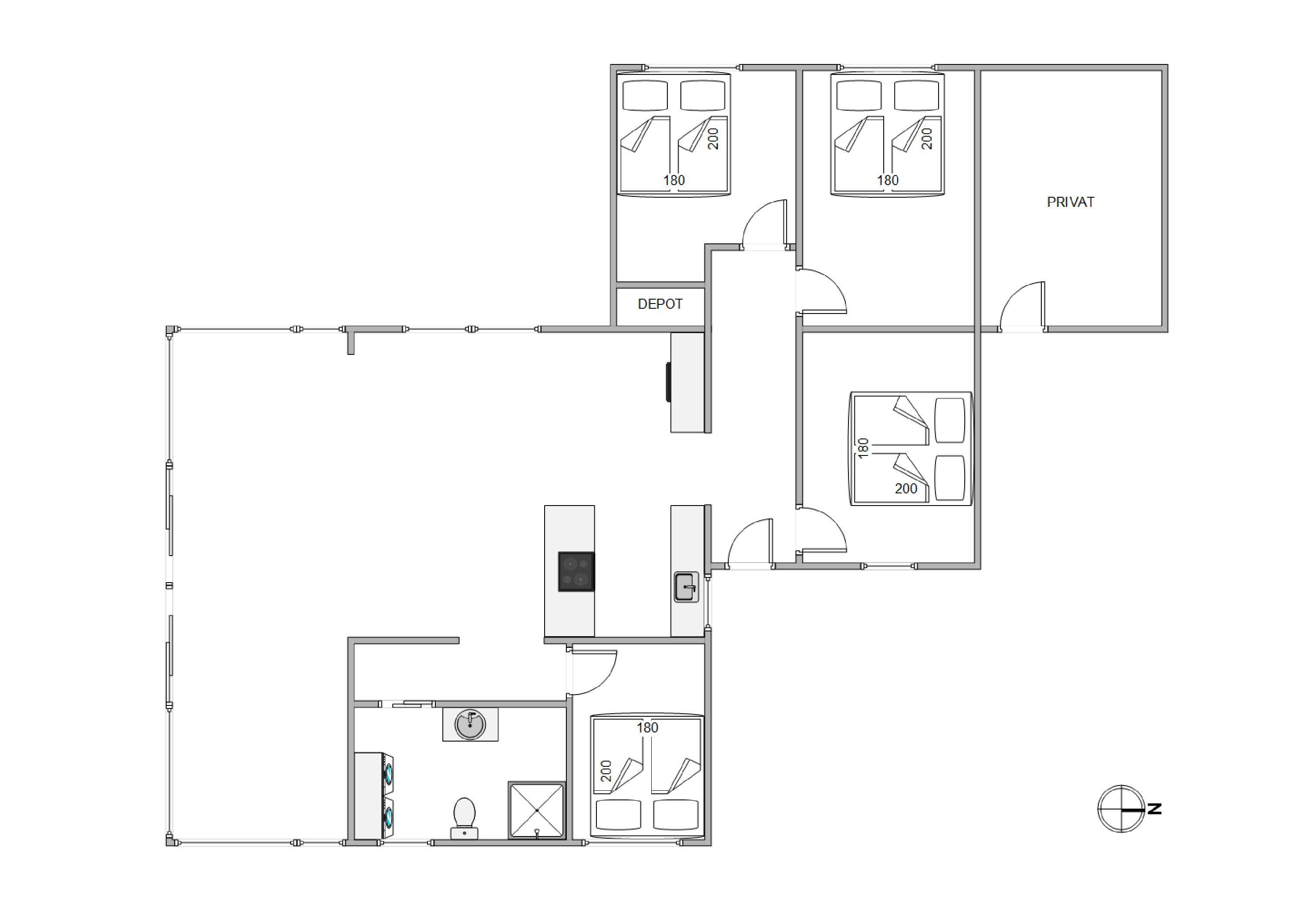Der er 4 soveværelser, hvert med en dobbeltseng, hvor I kan finde et hyggeligt sted at slappe af og drømme. Sommerhusets store og moderne badeværelse er med gulvvarme og sikrer en behagelig start på dagen. Sommerhuset er praktisk udstyret med vaskemaskine og tørretumbler, så I behøver kun at pakke jeres yndlingstøj.