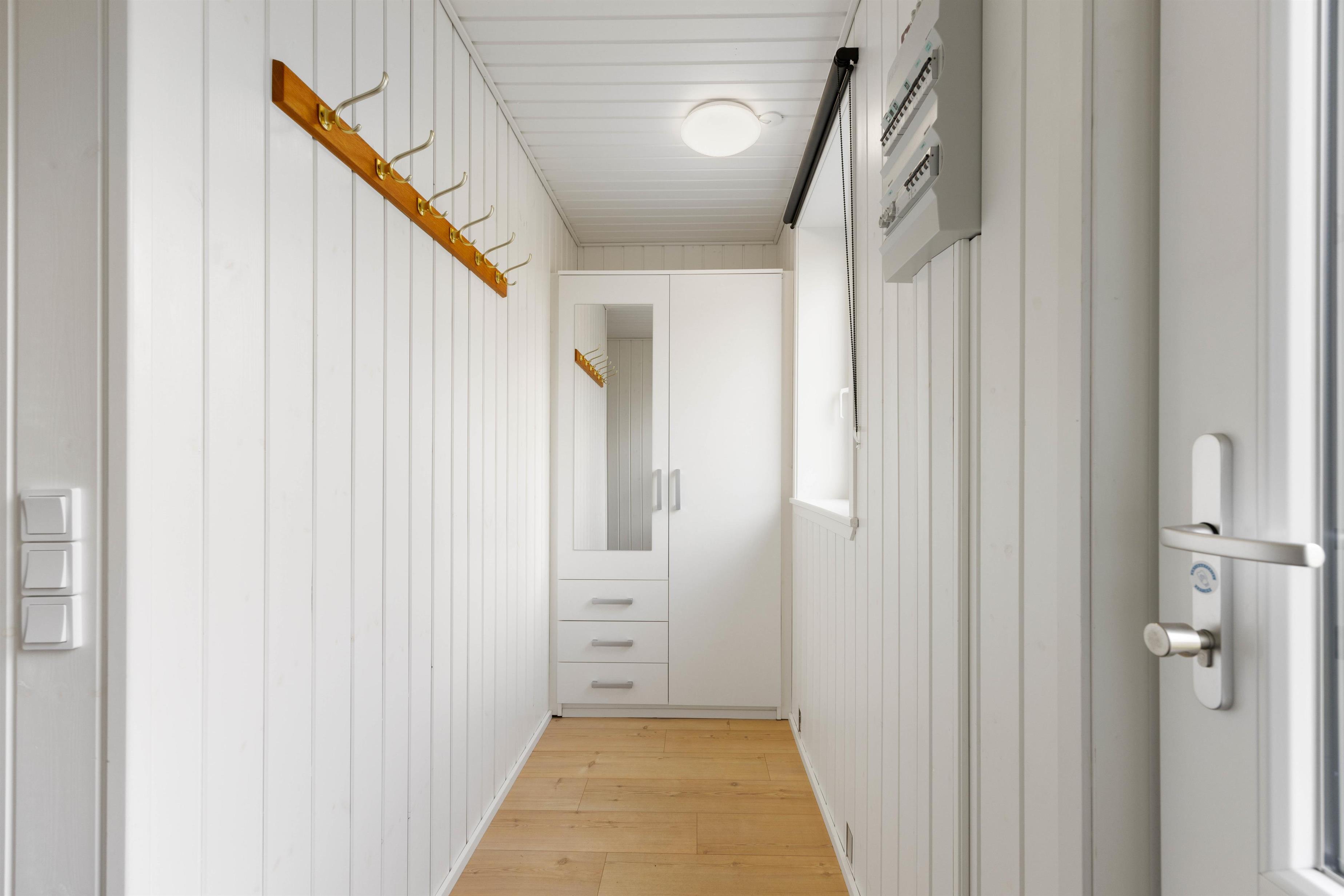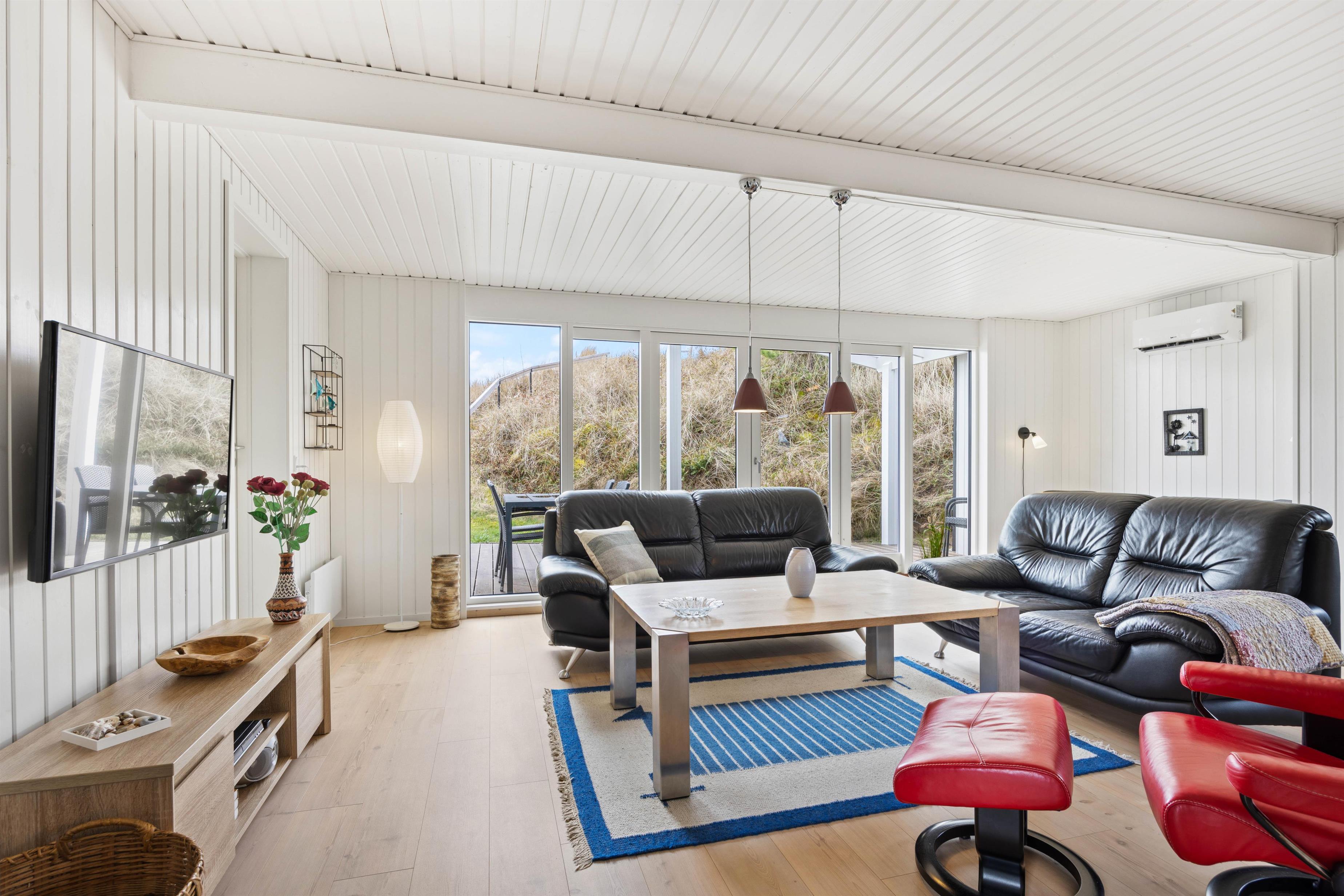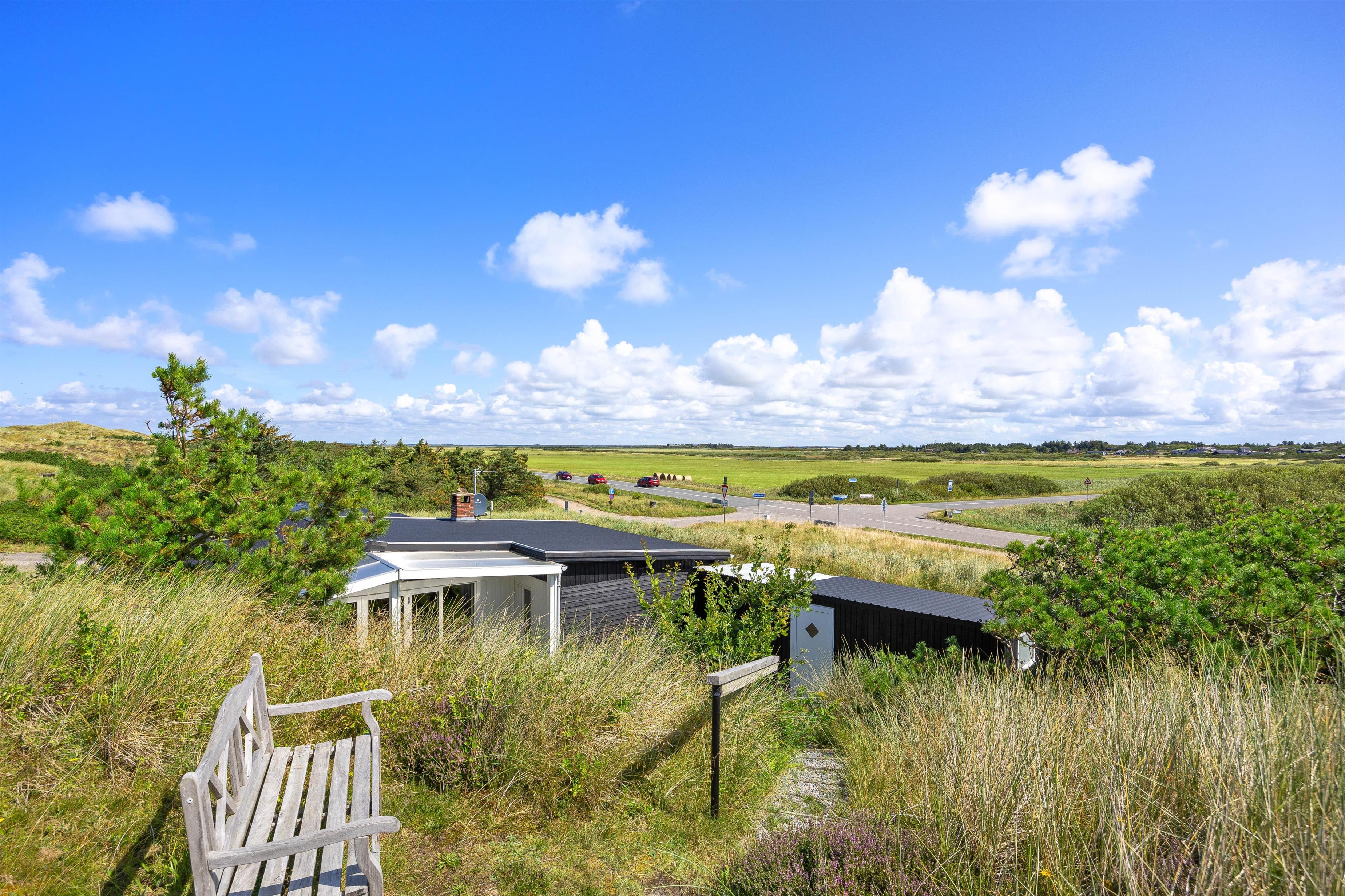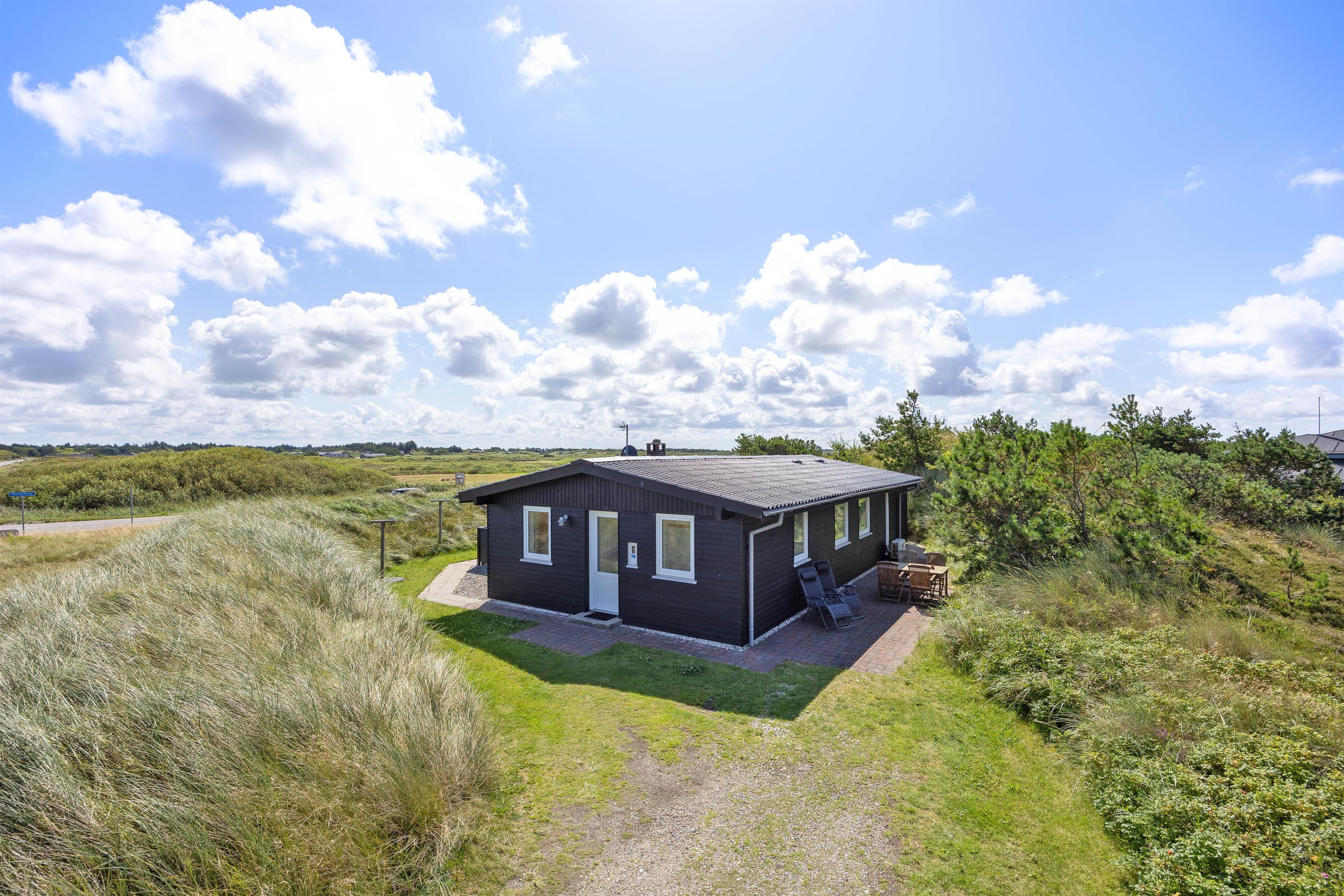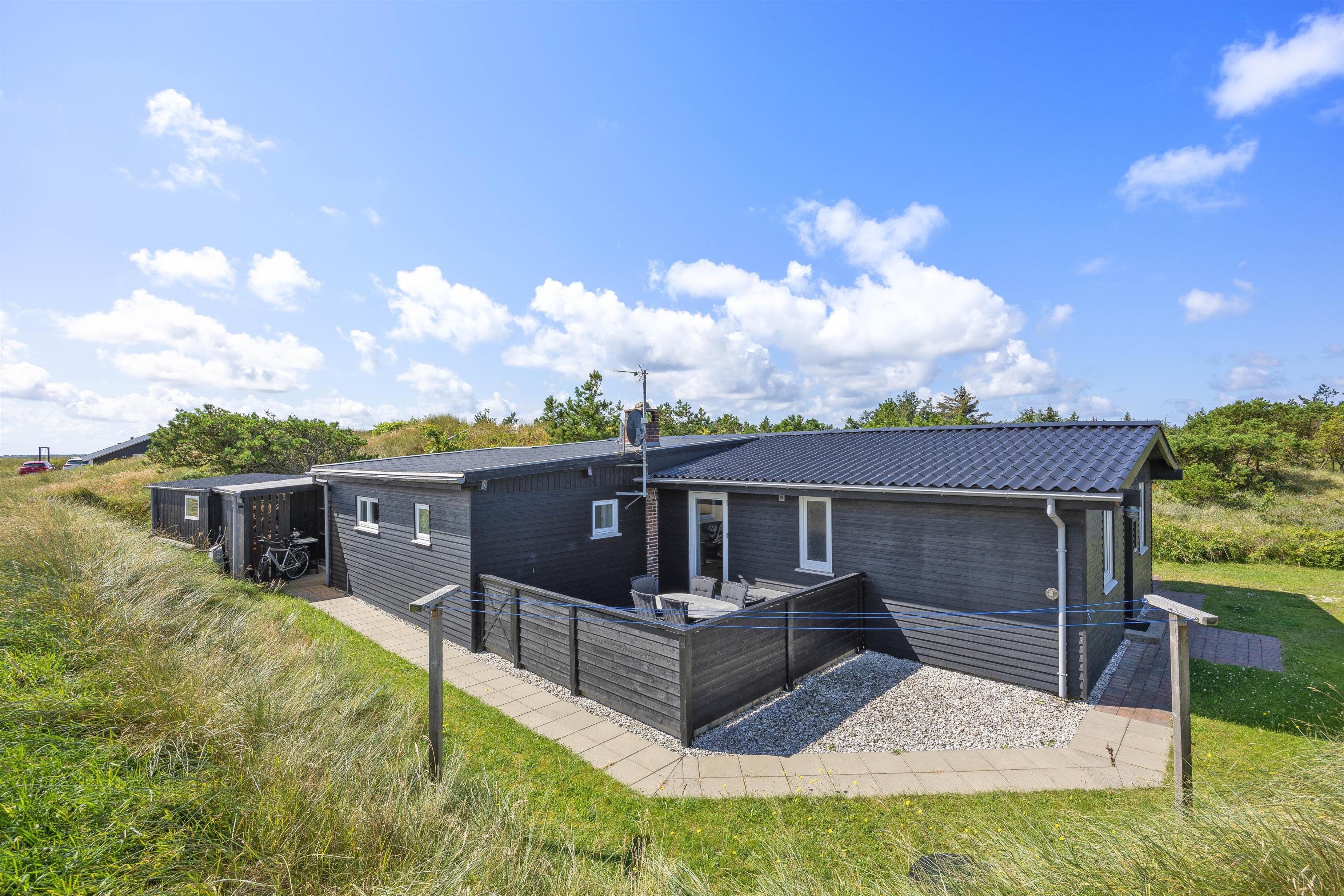 Fra stuen er der direkte adgang til den skønne overdækkede terrasse, hvor I kan nyde den friske og rolige natur helt tæt på - og alt efter vind og vejr, har I mulighed for at søge om på den læfyldte terrasse der vender mod syd, som også egner sig perfekt til morgenkaffen. Her kan I nyde masser af privatliv, da den klitten ved siden af sørger for masser af læ privatliv. Dele af terrassen er overdækket, så I kan nyde udelivet og den friske luft selv hvis det drypper lidt. Der