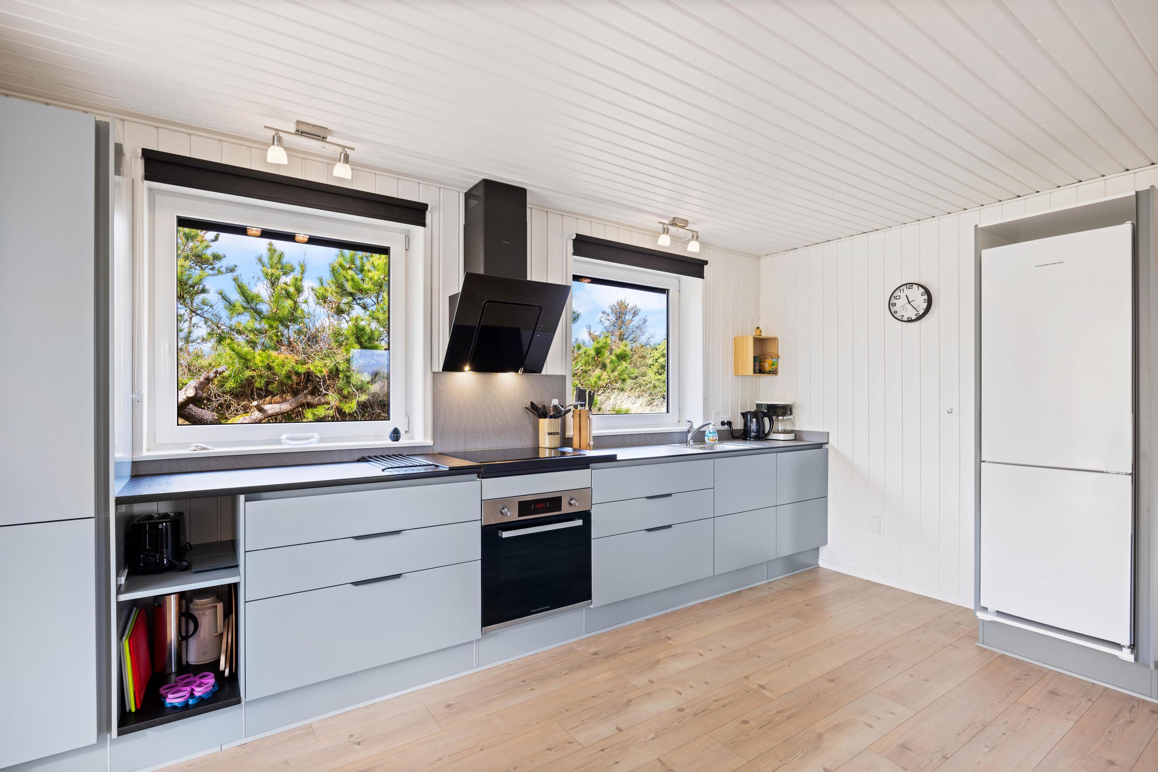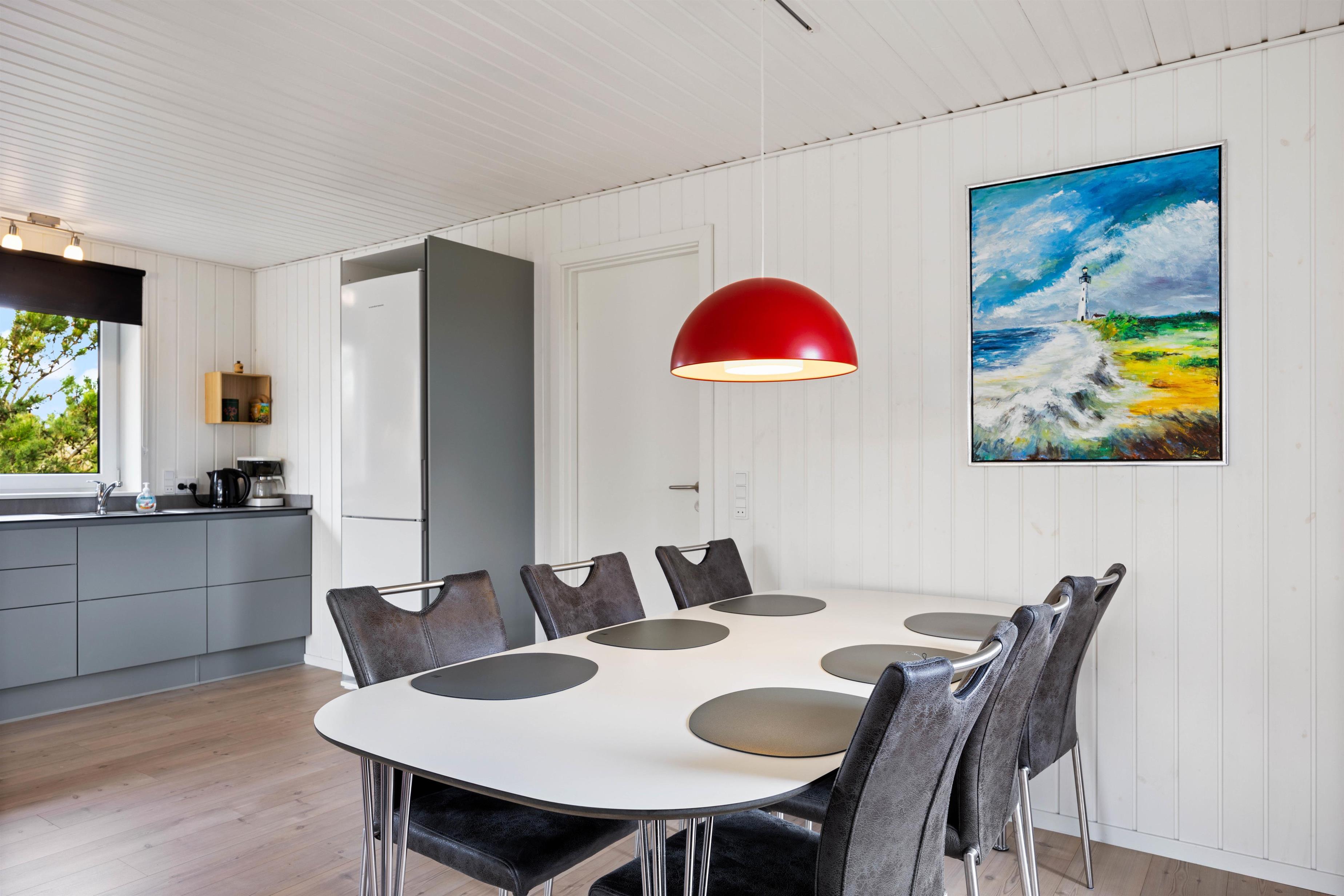 Huset er til 6 personer og er særdeles velindrettet med stort køkken/alrum og stue. Huset har hele 2 badeværelser med gulvvarme, så har I teenageren med på ferie, behøver I ikke at vente. Desuden er huset indrettet med 3 soverum og køkkenet har opvaskemaskine, så lad maskinen gøre arbejdet i mens I kan holde ferie.