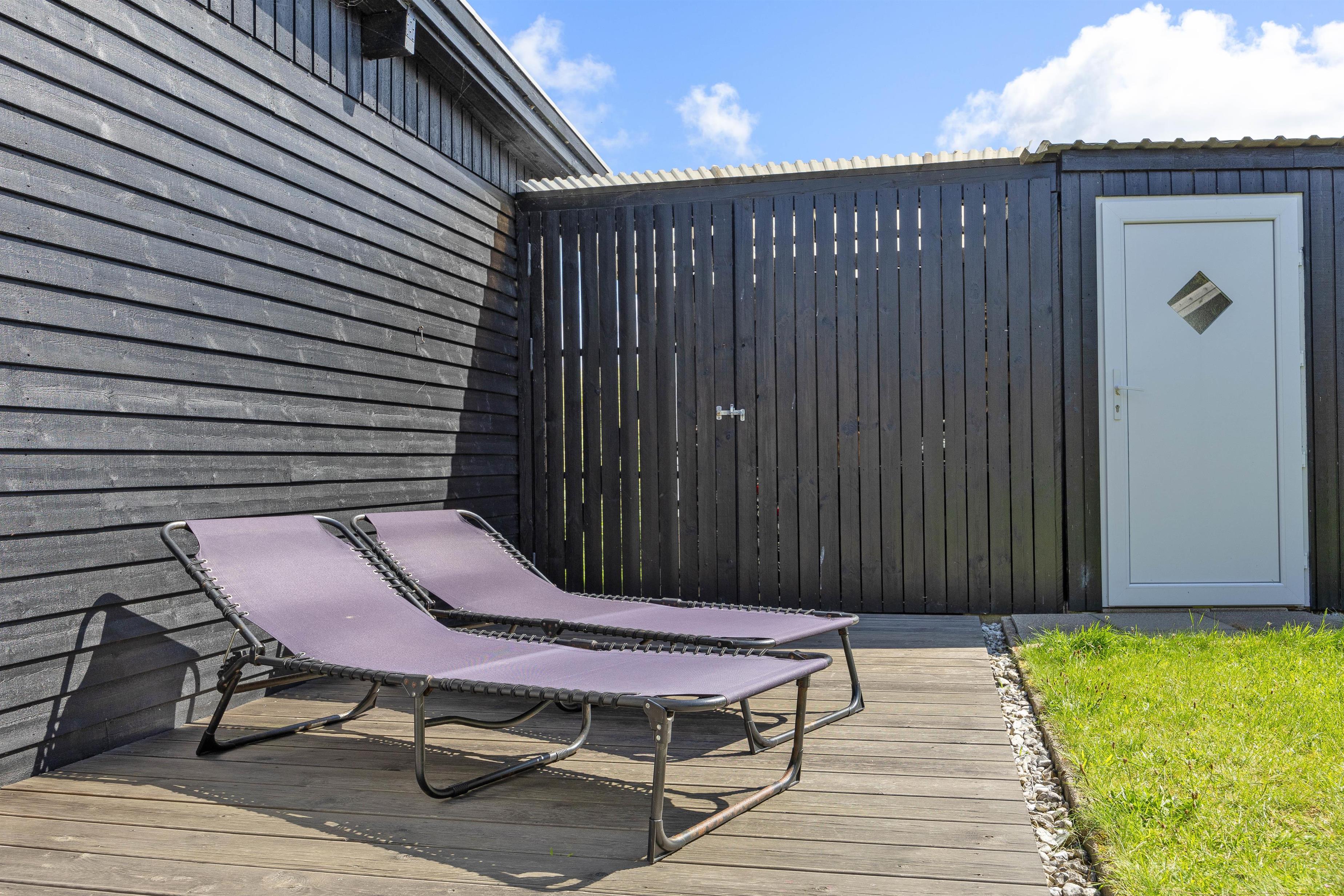 Der er også en indhegnet terrasse mod øst, som er helt perfekt om morgenen og formiddagen. Til sidst finder I også noget havemøblement mod vest, der især egner sig til de sommeraftenerne og en lækker grillmiddag.