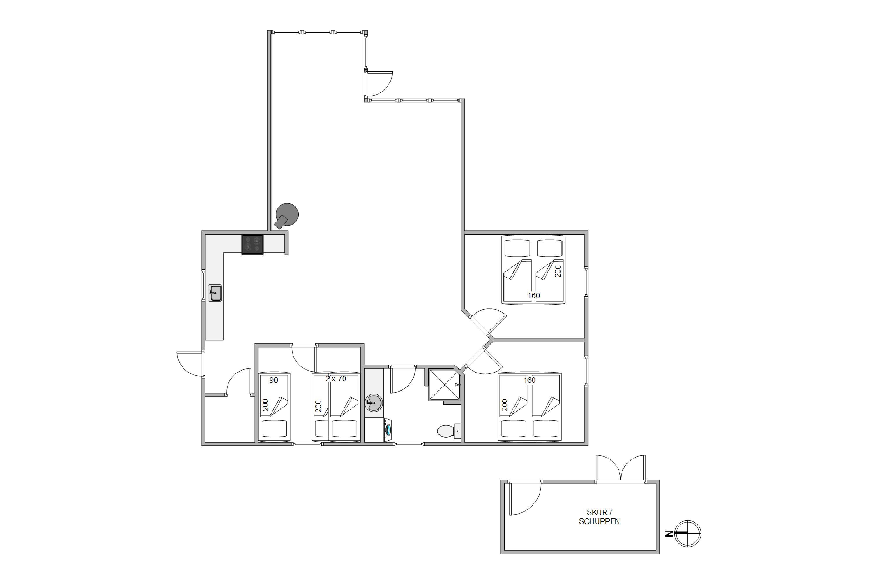 Feriehuset er hyggeligt og velindrettet, og grundet den renoveringen som huset gennemgik i 2016, fremstår det velholdt og klar til at byde jer velkommen. Huset strækker sig over 92 kvadratmeter, og har tre gode soverum, hvoraf to af dem er med komfortable dobbeltsenge. Det sidste soverum er helt ideelt til børn, da det er men en køjeseng og en enkeltseng. Her ville børn med garanti hygge sig og kunne bygge en hule. Huset har et enkelt dejligt og stort badeværelse, der naturligvis er med gulvvarme så I ikke skal bekymre jer om kolde fødder om morgenen. Her er også en vaskemaskine, hvis nu uheldet skulle være ude, og I får beskidt tøj.