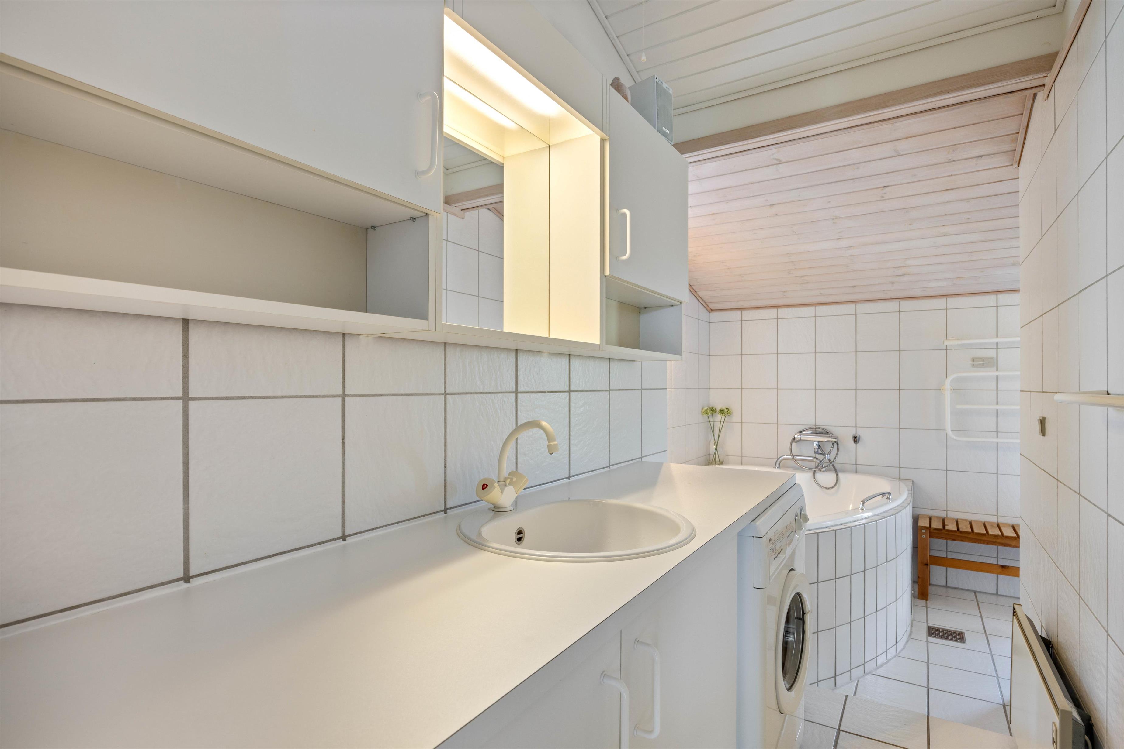Troldedalen 23 fordeler sig på 3 soverum hvoraf det ene er med dobbeltseng, de 2 andre har enkeltsenge. På badeværelset finder I et af husets absolutte højdepunkter nemlig saunaen og spabadet. Her kan I rigtig sidde og slappe af og lade tankerne flyde mens I nyder varmen og får batterierne ladet op på ny. Der er også gulvvarme på badeværelset og en energibesparende varmepumpe som sørger for behagelig rumtemperatur.