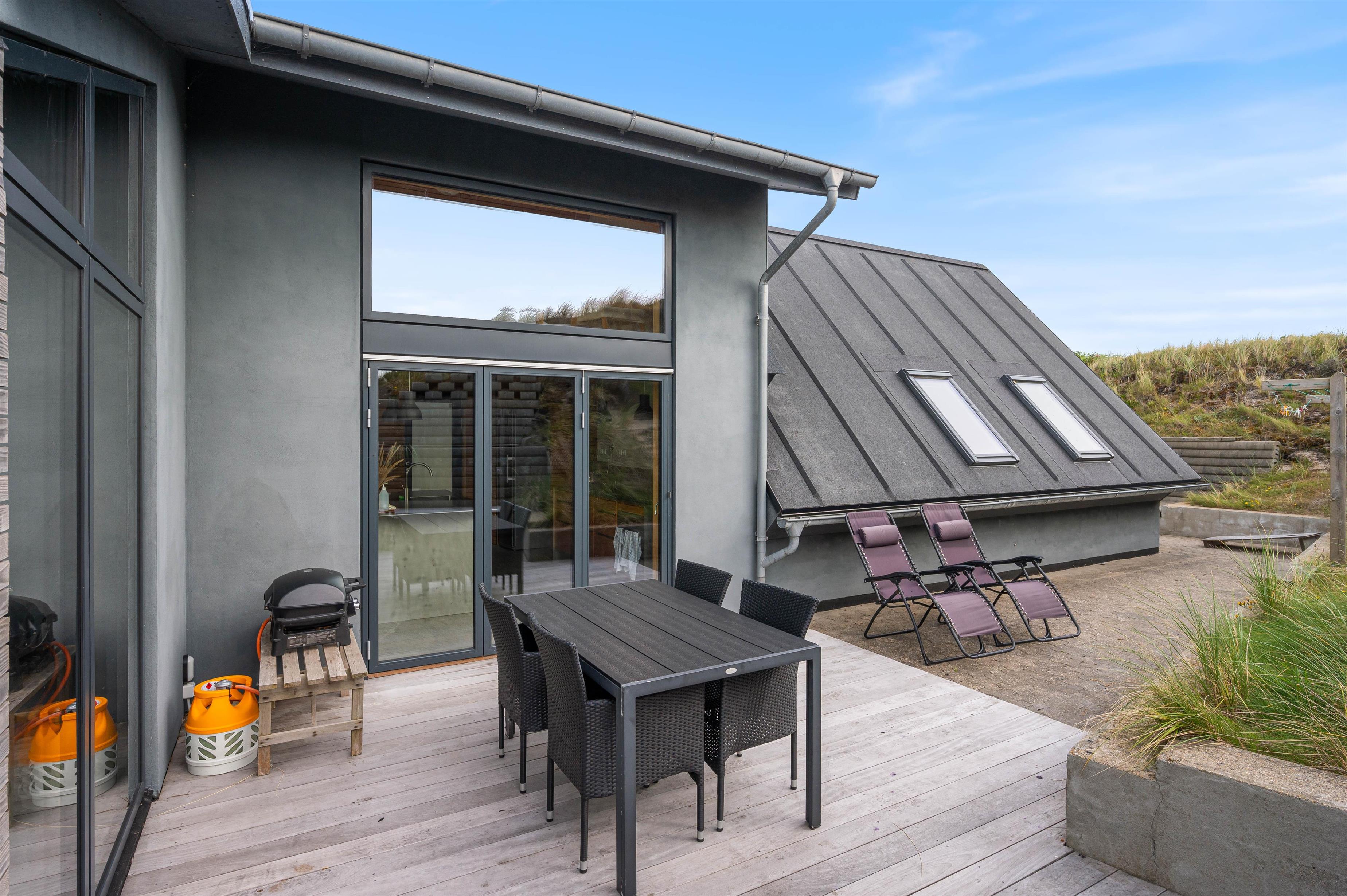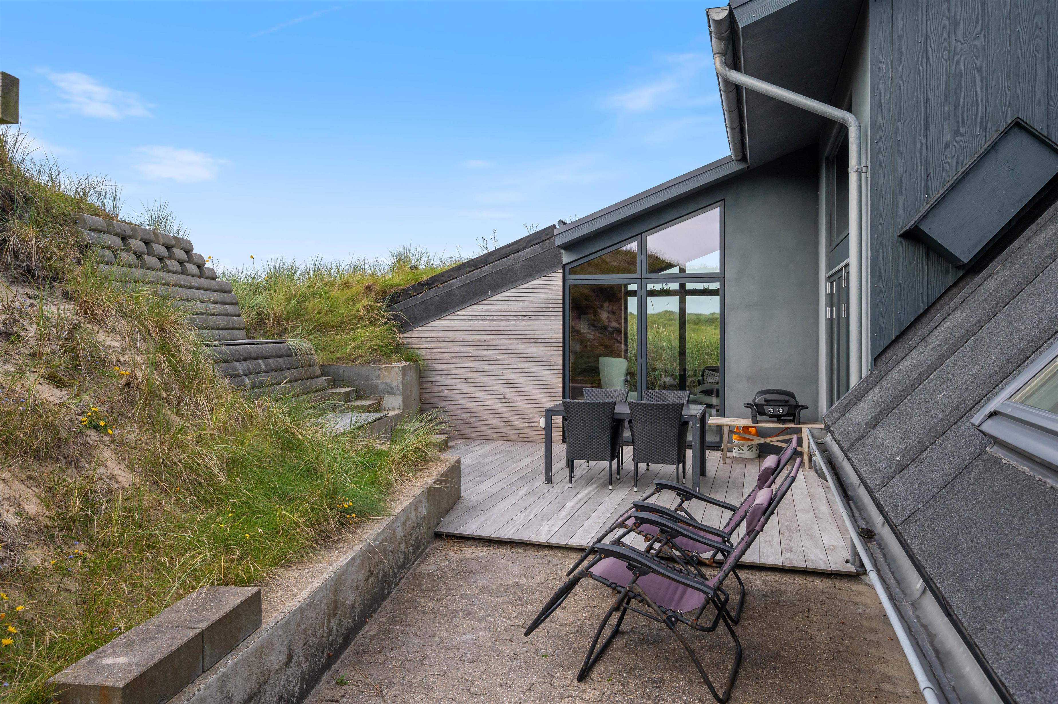 Det dejlige udendørs område byder på hygge og nærvær på skønne sommeraftener. Her har I mulighed for at benytte jer af sommerhusets tilhørende havemøbler og liggestole. Desuden finder I her en gasgrill, hvor I hurtigt og nemt kan tilberede et lækkert aftensmåltid med et velsmagende glas vin eller lignende.