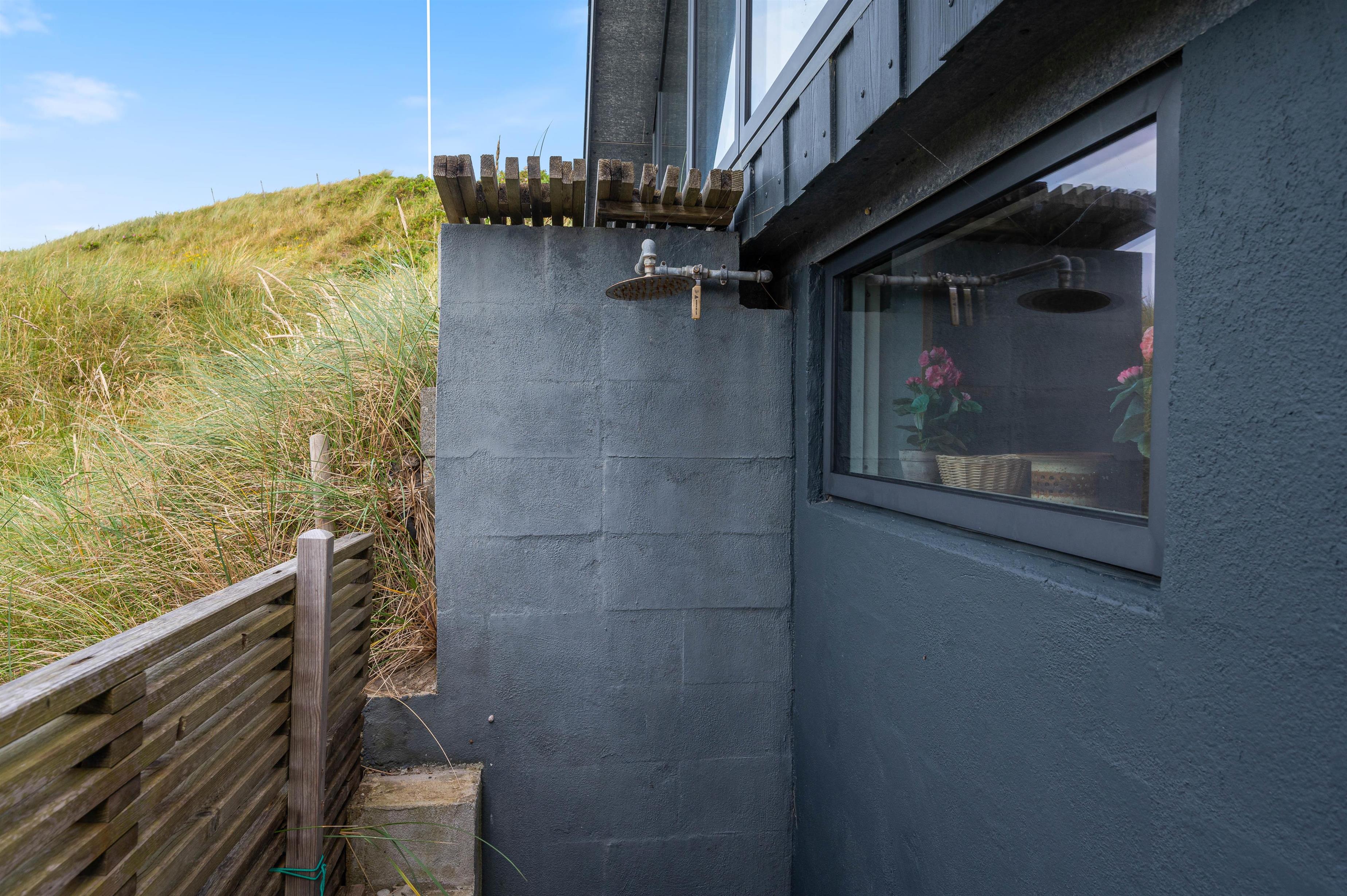 Har I været en tur på stranden, har i mulighed for at skylle det værste sand af kroppen, væk under feriehusets udebruser. OBS. Er åben i perioden april-november.
