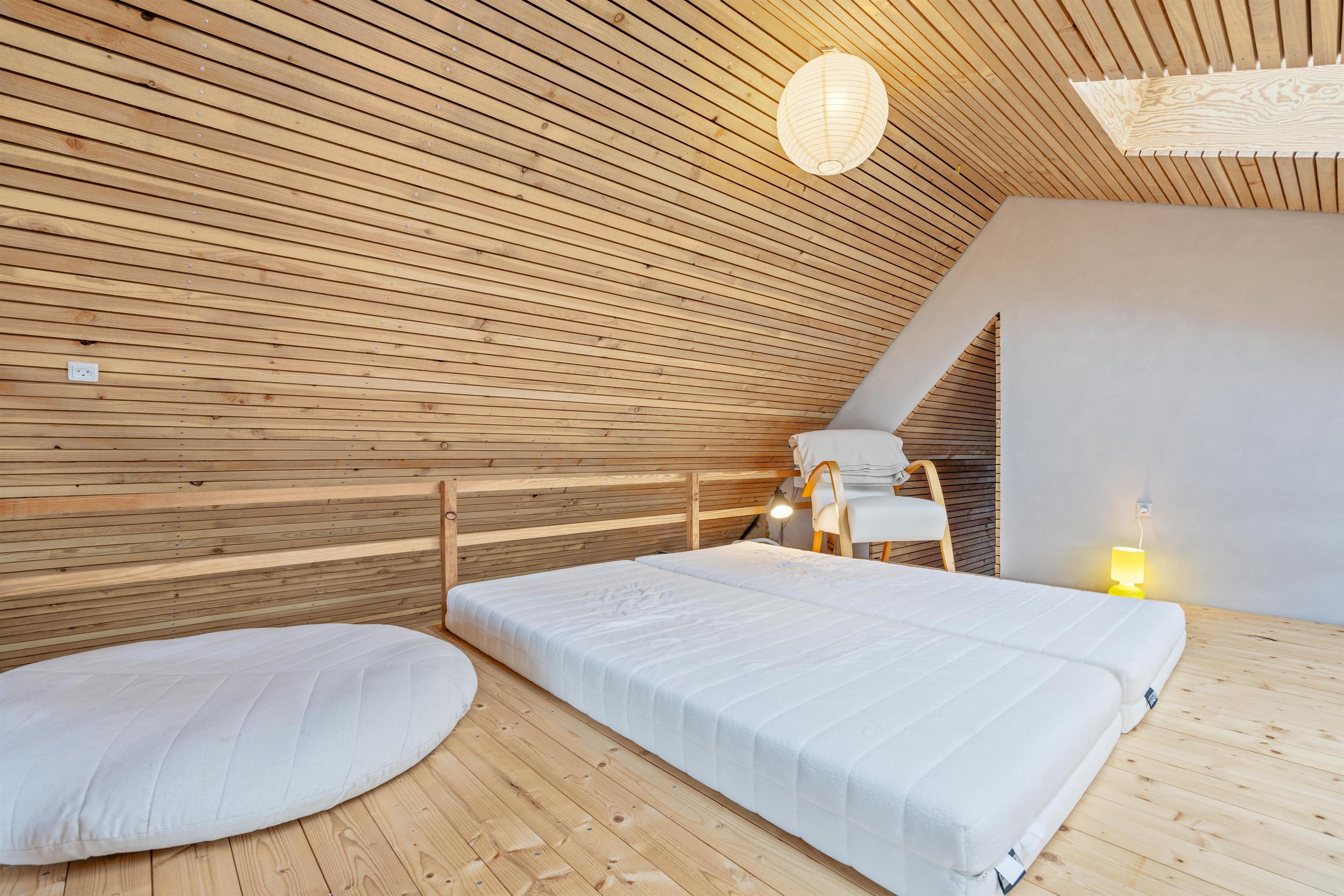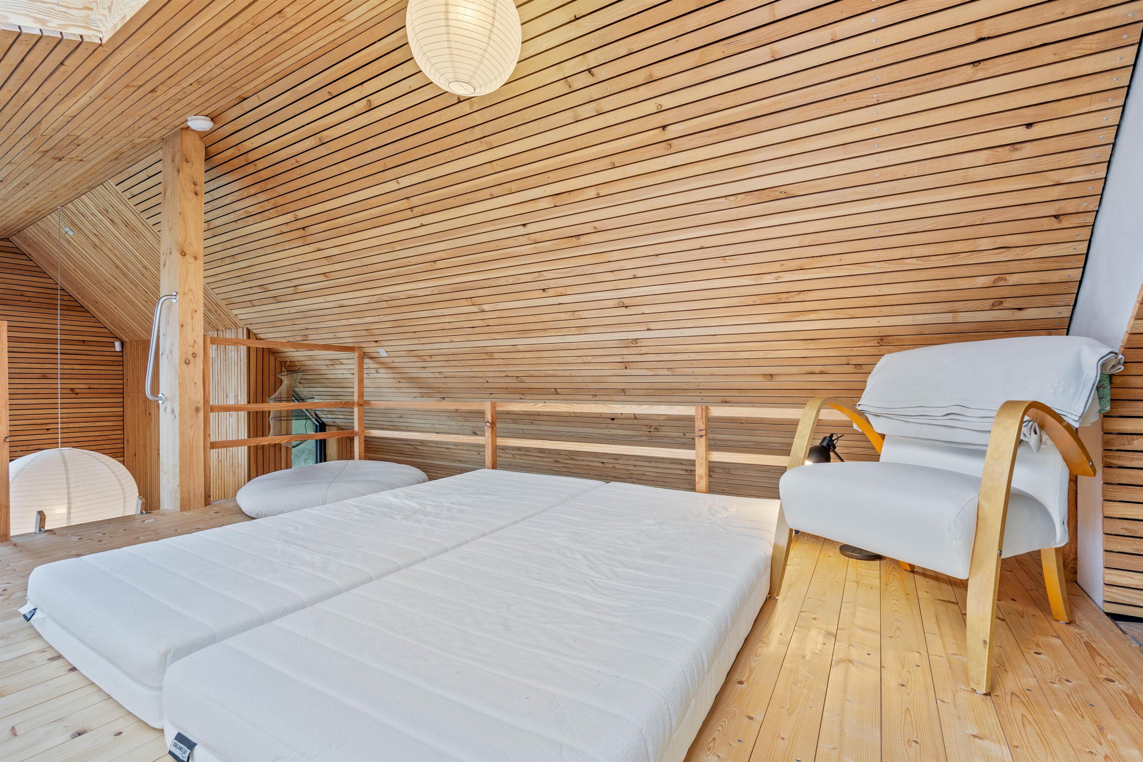 Sommerhuset på Krylen 14 er indrettet med 6 sovepladser der er fordelt på 2 soverum hver med en dobbeltseng. Derudover kan de større børn få stor glæde af at overnatte på feriehusets tilhørende hems. Det stilfulde og veludstyrede køkken indbyder til hygge omkring tilberedning af diverse måltider, hvor I efterfølgende kan samles om måltiderne omkring spisebordet og samtidig nyde naturen lige udenfor.