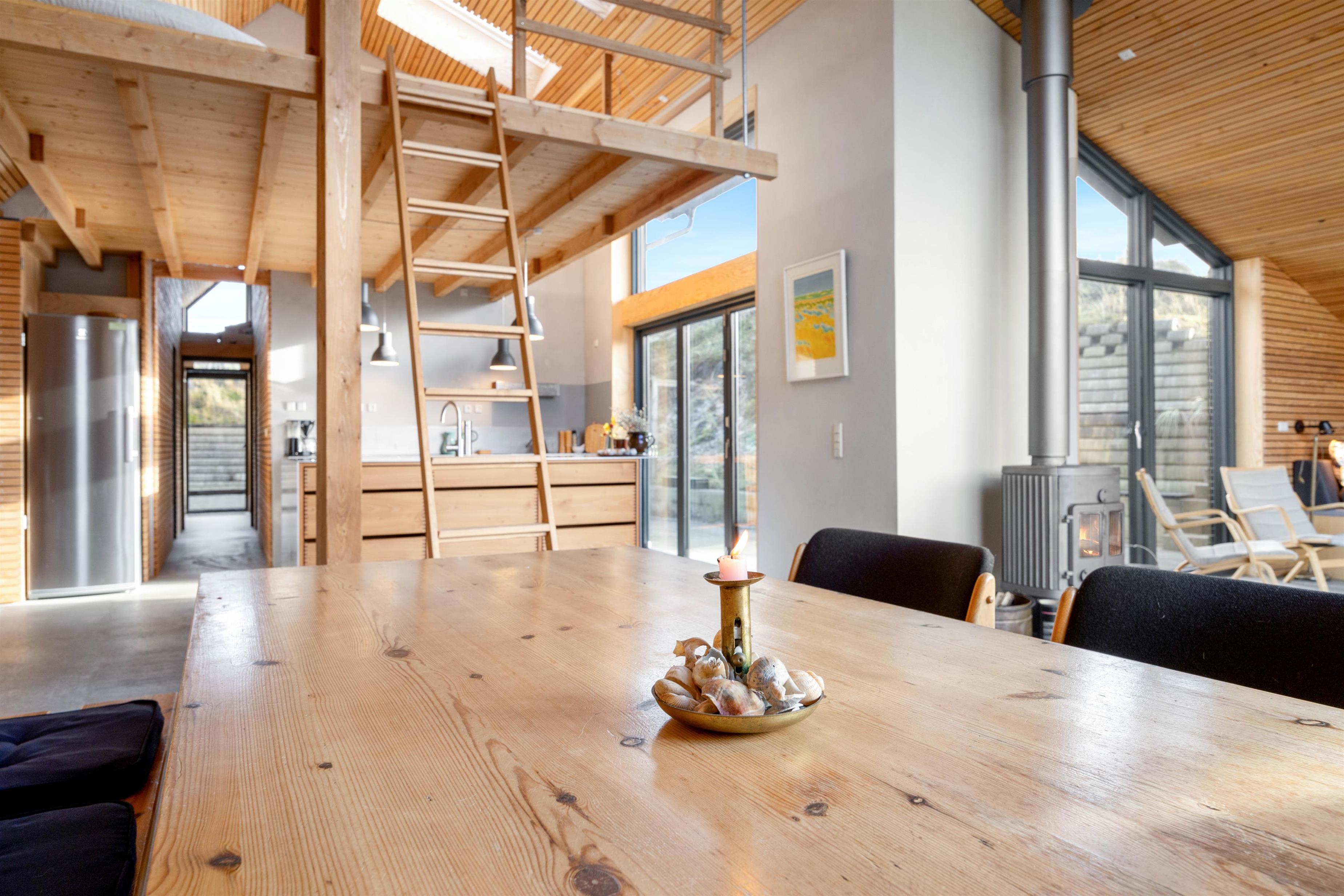 I dette charmerende feriehus kommer I med garanti til at føle jer hjemme med det samme. Med det store og betagende vinduesparti i stuen, har I her mulighed for at sidde og dagdrømme med den storslåede natur i baggrunden.