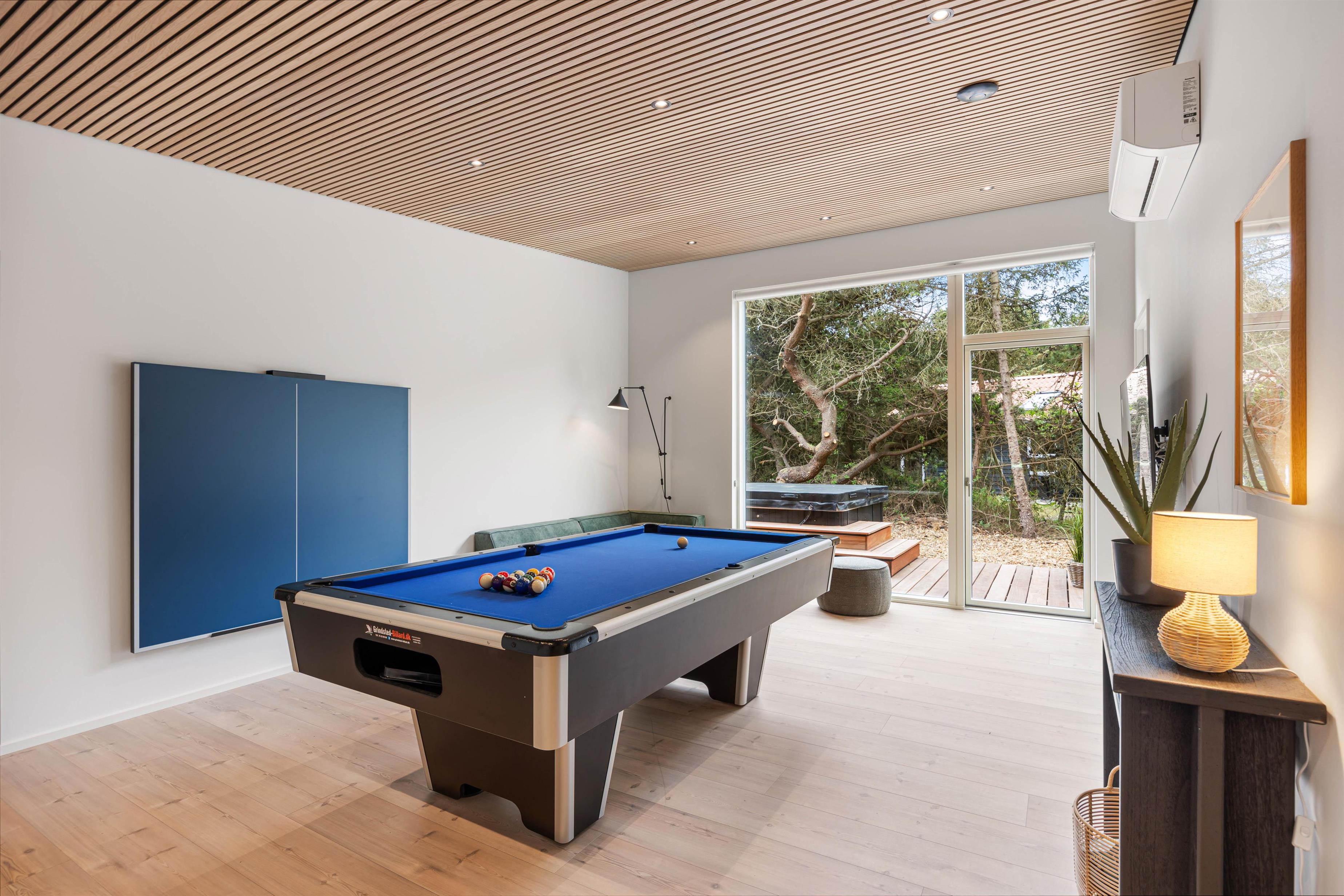 Hvis I godt kan lide at dyste mod hinanden, kan I gøre det både i billard og bordtennis, da dette er tilgængeligt i sommerhusets skønne aktivitetsrum. Her kan I med garanti tilbringe mange timers sjov og hygge sammen.