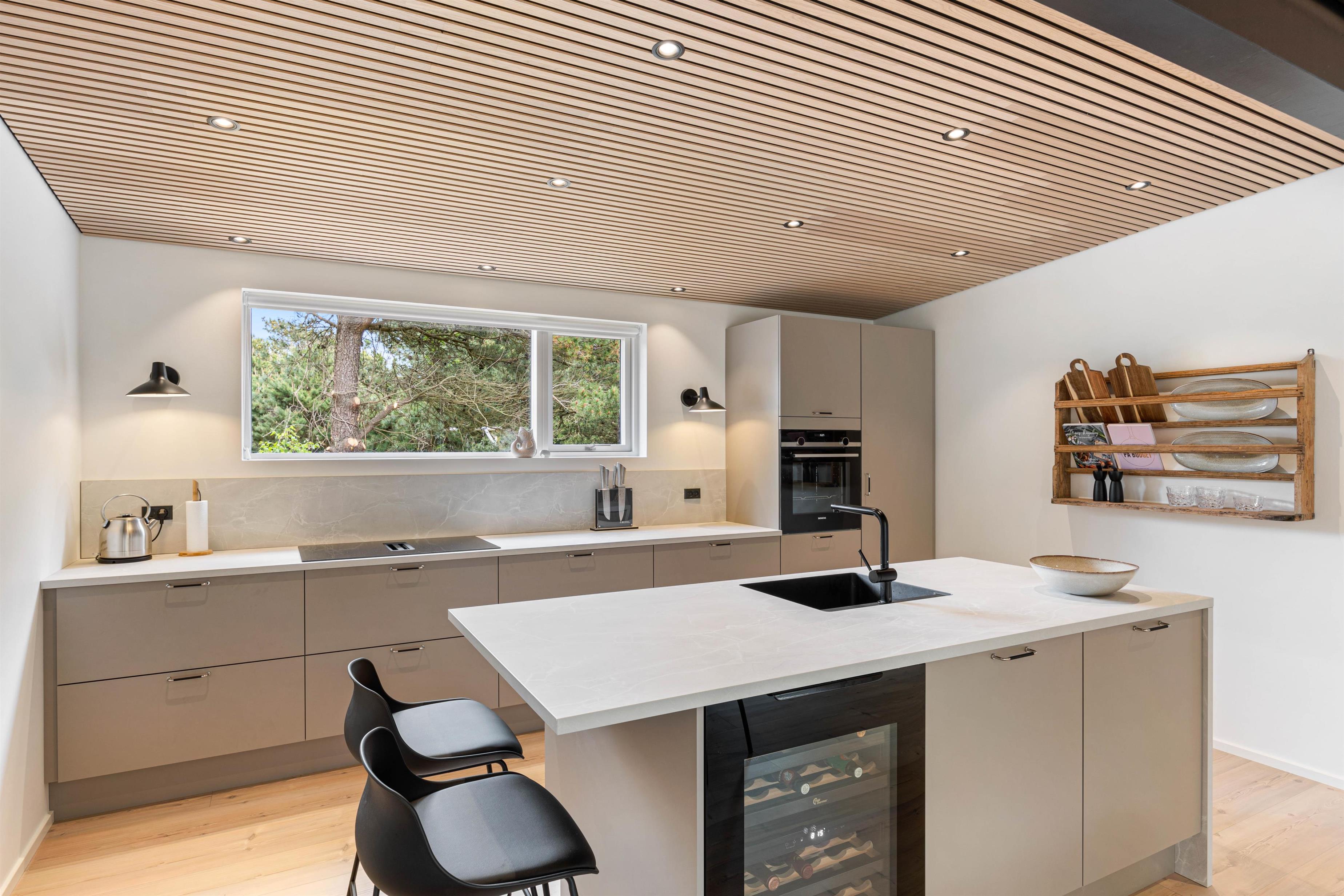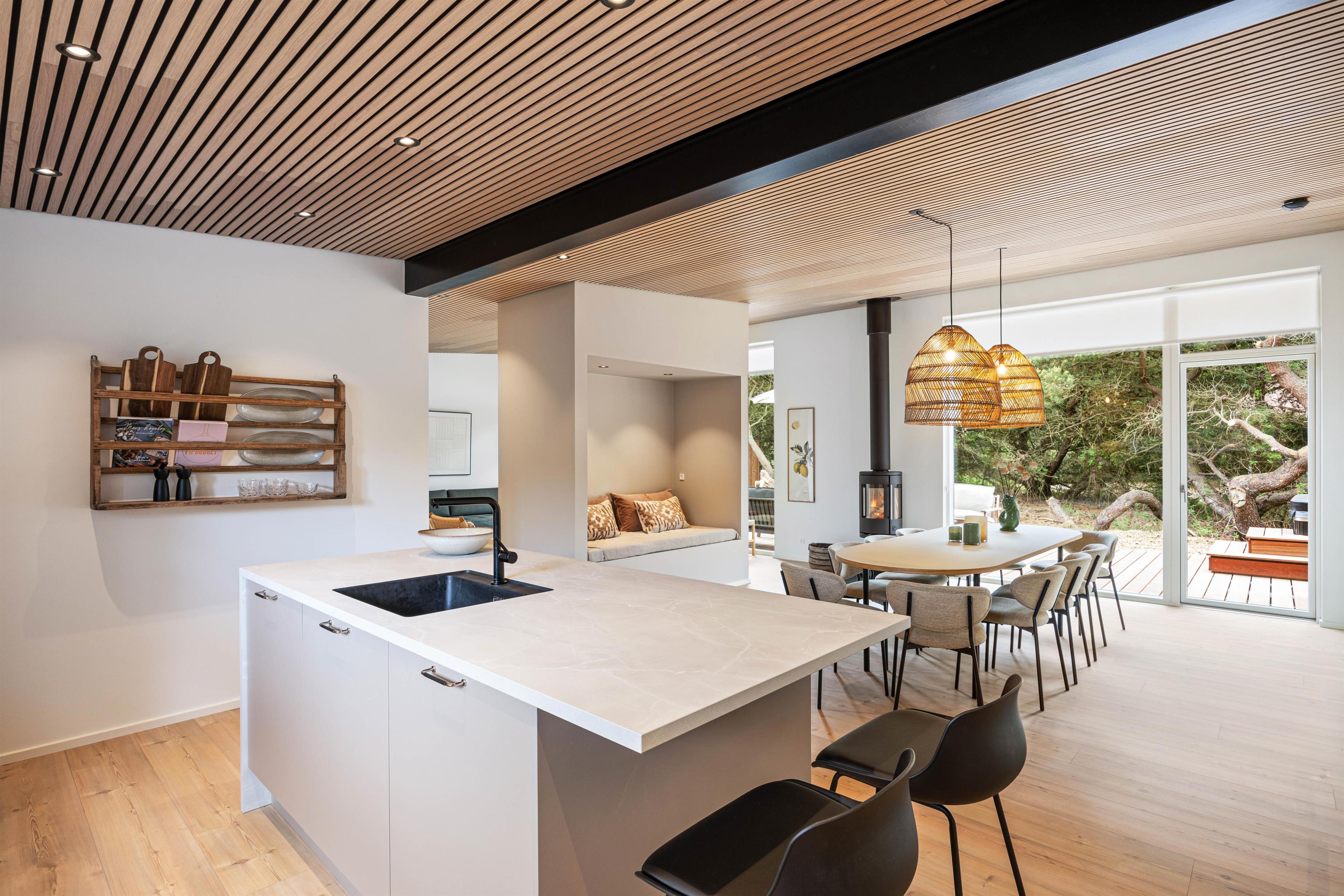 Her er kræset for detaljerne, og med en moderne indretning og planløsning, vil I straks føle et højt komfortniveau, der gør at I kan føle jer godt tilpas og hjemme under jeres ferie. Det skader desuden slet ikke, at sommerhuset er yderst energivenligt og med gulvvarme i hele opholdsrummet og soveværelserne. Hvis det dog skal være lidt hyggeligt, er der også en brændeovn til rådighed der kan stå for opvarmningen og skabe en hyggelig atmosfære.