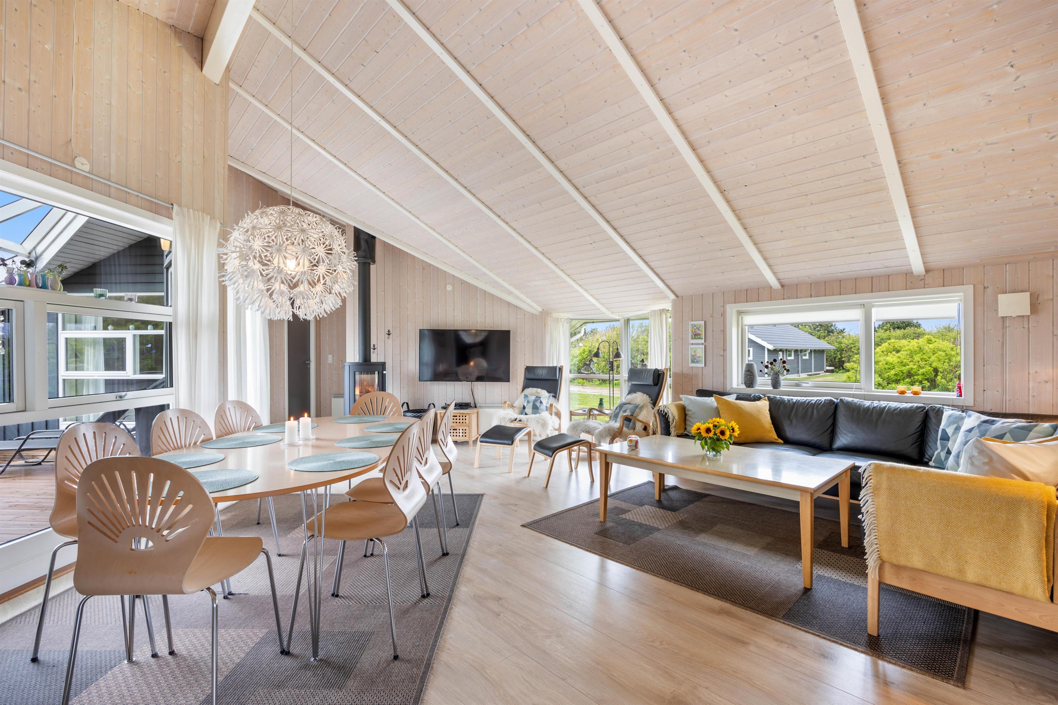 Et dejligt sommerhus med en hyggelig atmosfære, der emmer af sommerhus. Her er klassiske træpaneler på væggene, de rolige nuancer og den gode loftshøjde giver en rummelig fornemmelse. Sommerhuset på 105 m² byder på et stort åbent køkkenalrum, hvor der er god plads til at samles.