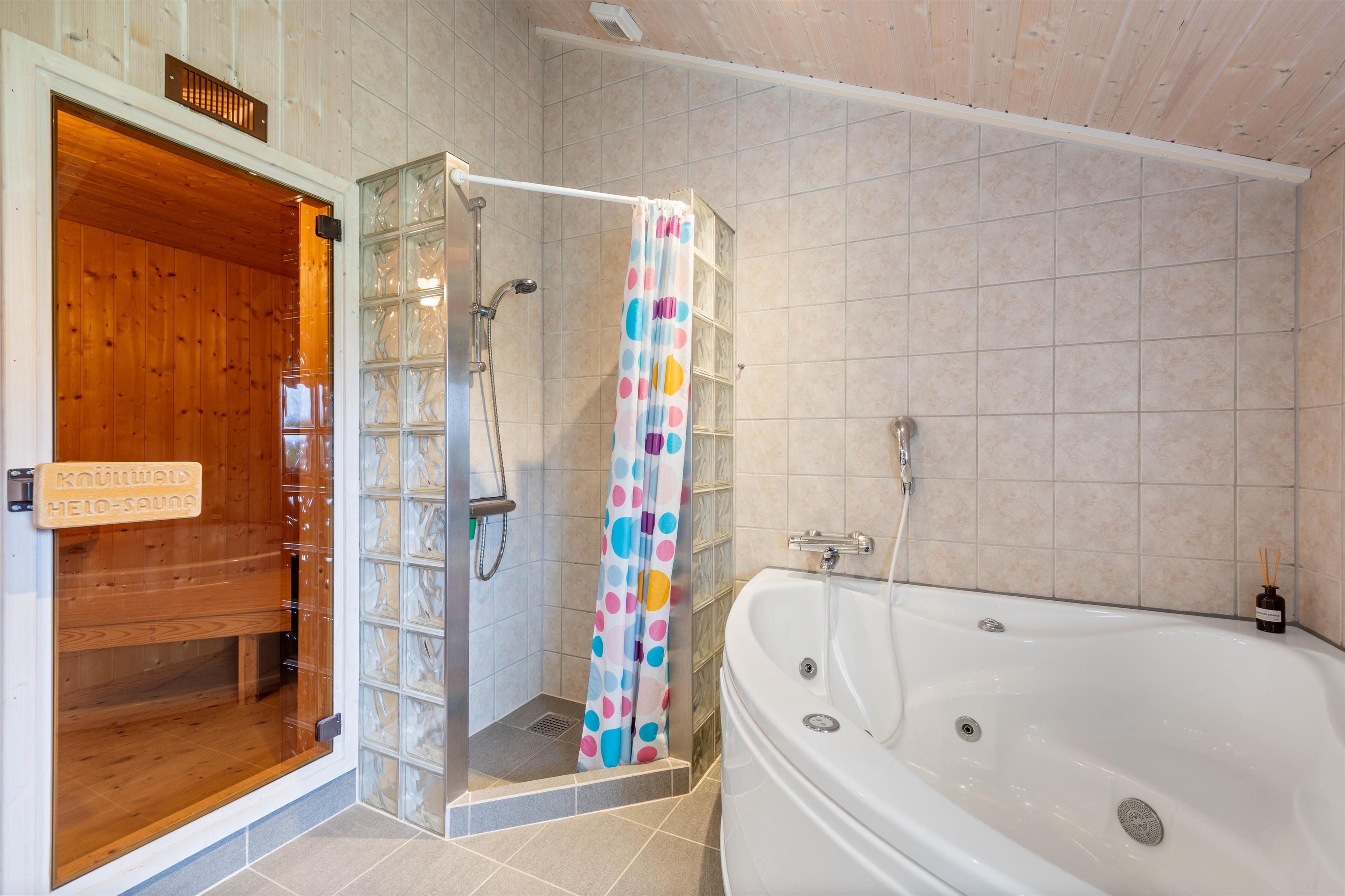 Her er 2 badeværelser, der begge er med gulvvarme. På det ene er der adgang til den varme sauna og tømmespaen, der giver jer alle mulighed for at slappe af og nyde ferien i fulde drag. Efter en dejlig gåtur findes der intet bedre. Derudover finder I 3 fine soveværelser, hvor I er sikret en god nattesøvn.