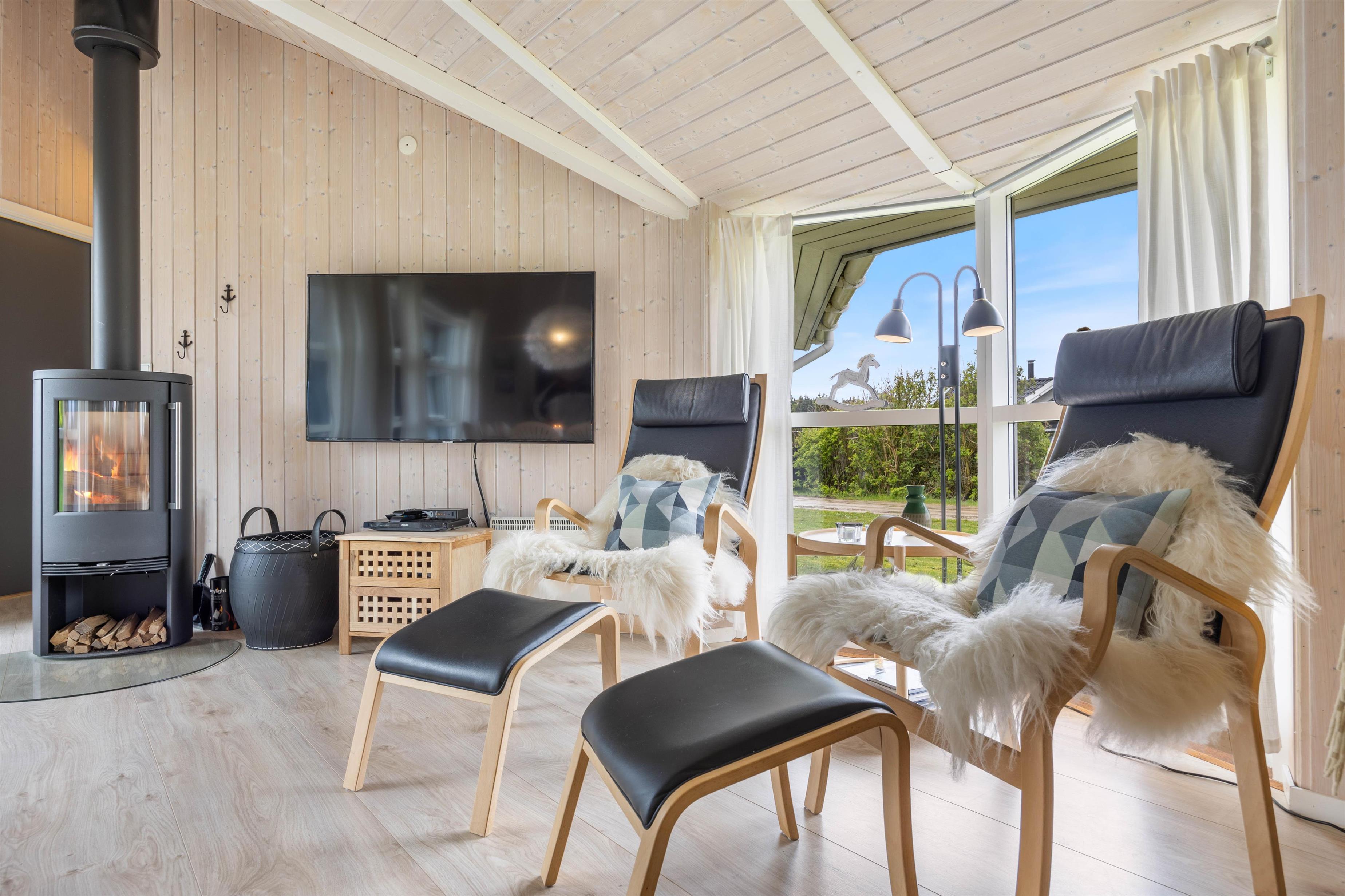 I stuen kan I streame en god film via. feriehusets Chromecast, lave dejlig mad i køkkenet og lave perler med børnene omkring spisebordet – mulighederne er mange! Sæt jer godt til rette med en god bog, en kop kaffe og mærk brændeovnens varme brede sig i rummet. Det fuldender feriestemningen. Også her findes feriehusets energibesparende varmepumpe, som sørger for et behageligt indeklima.