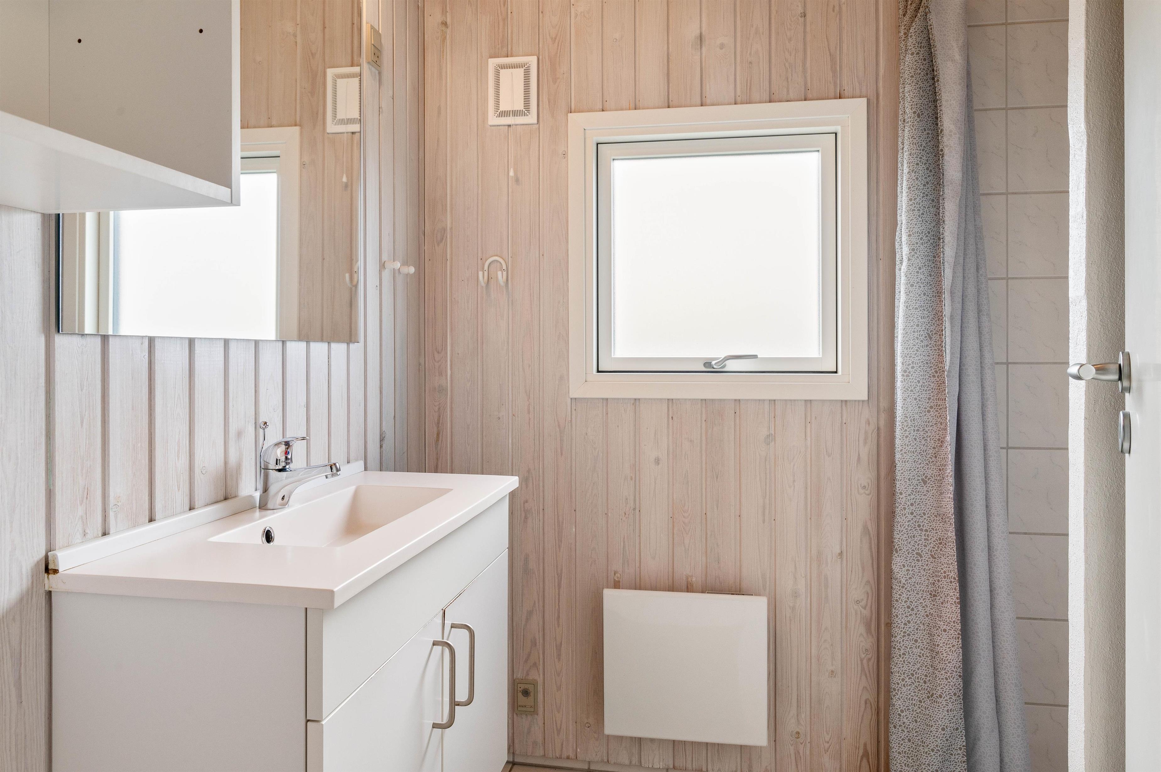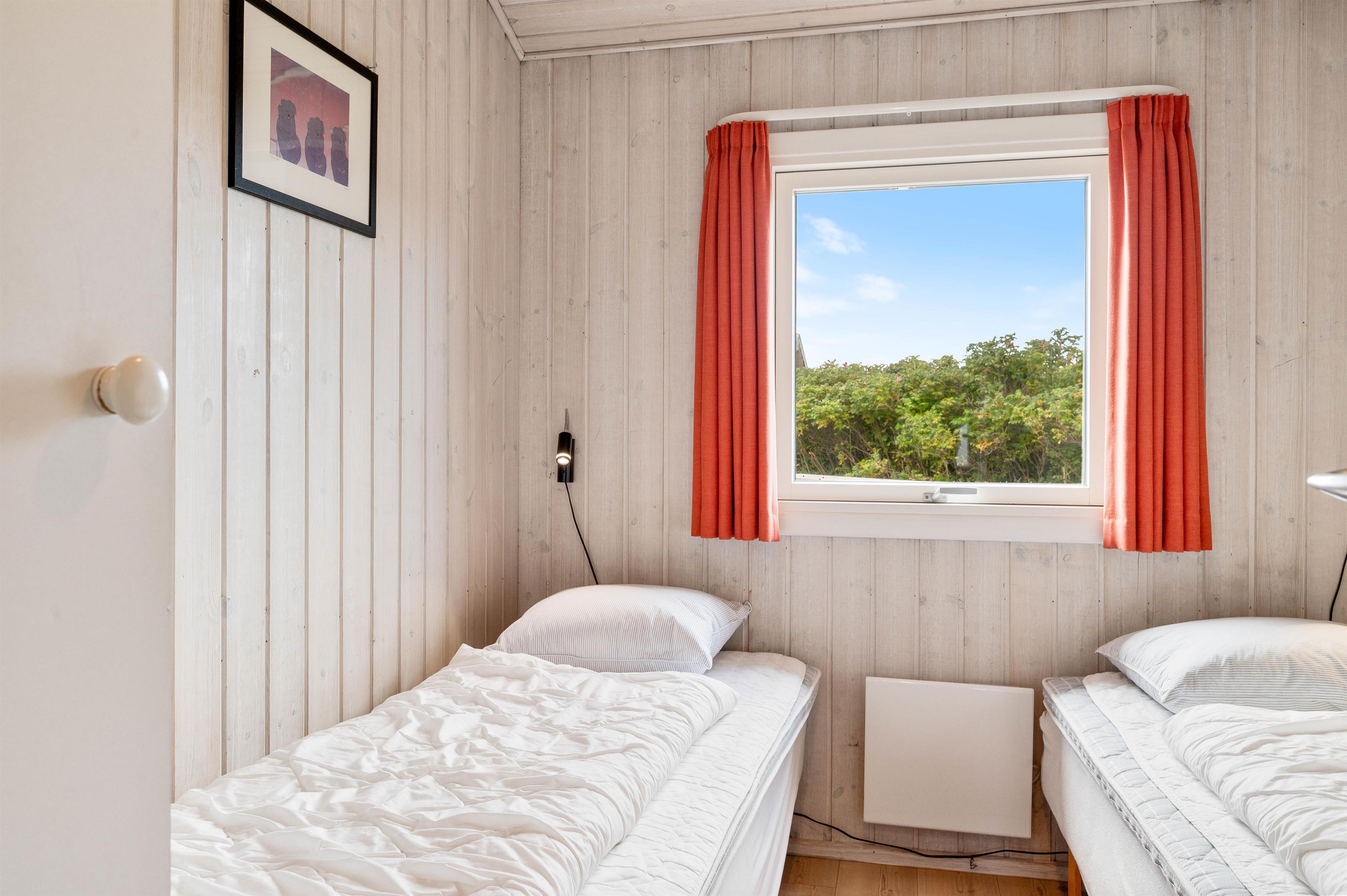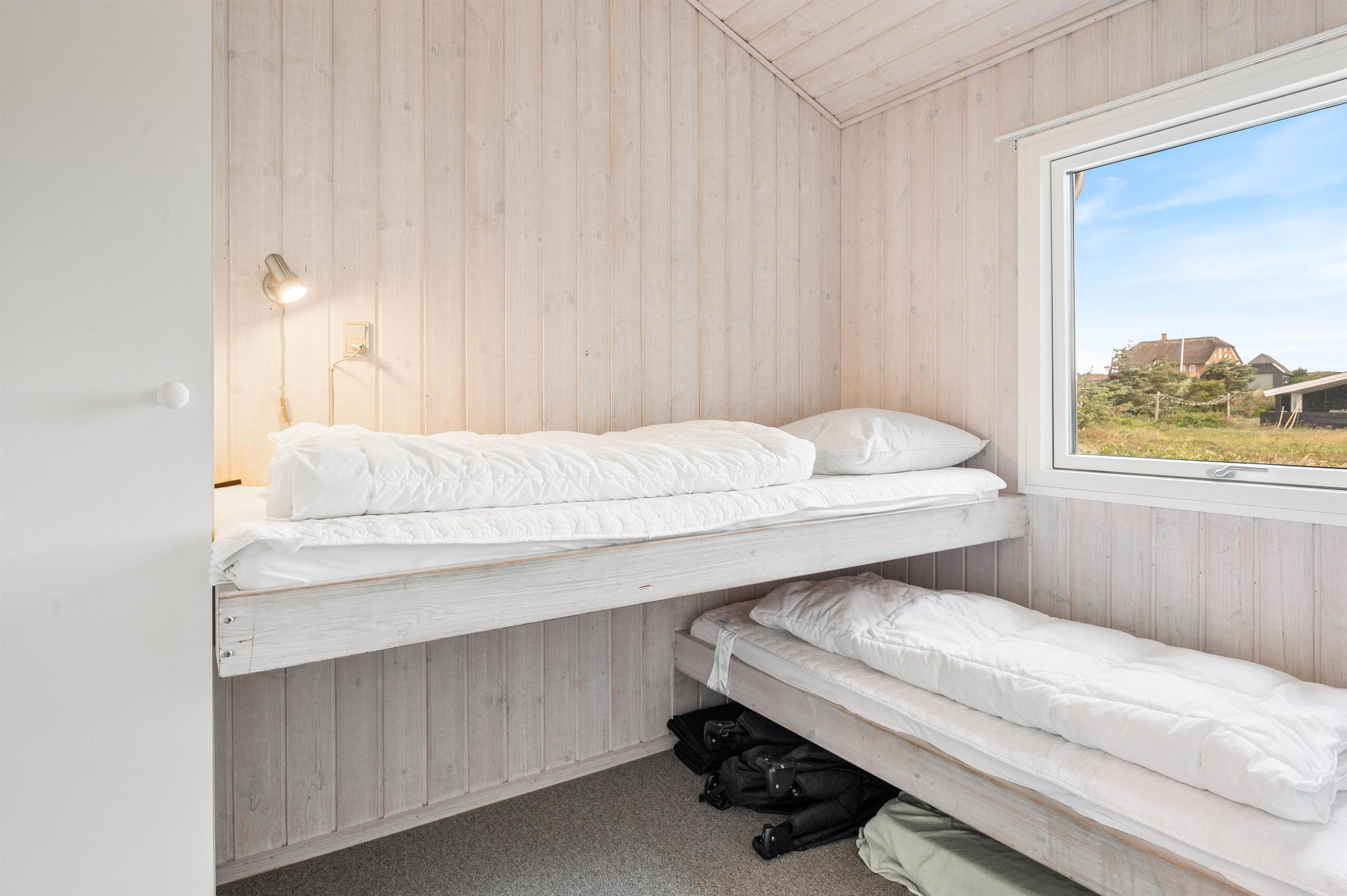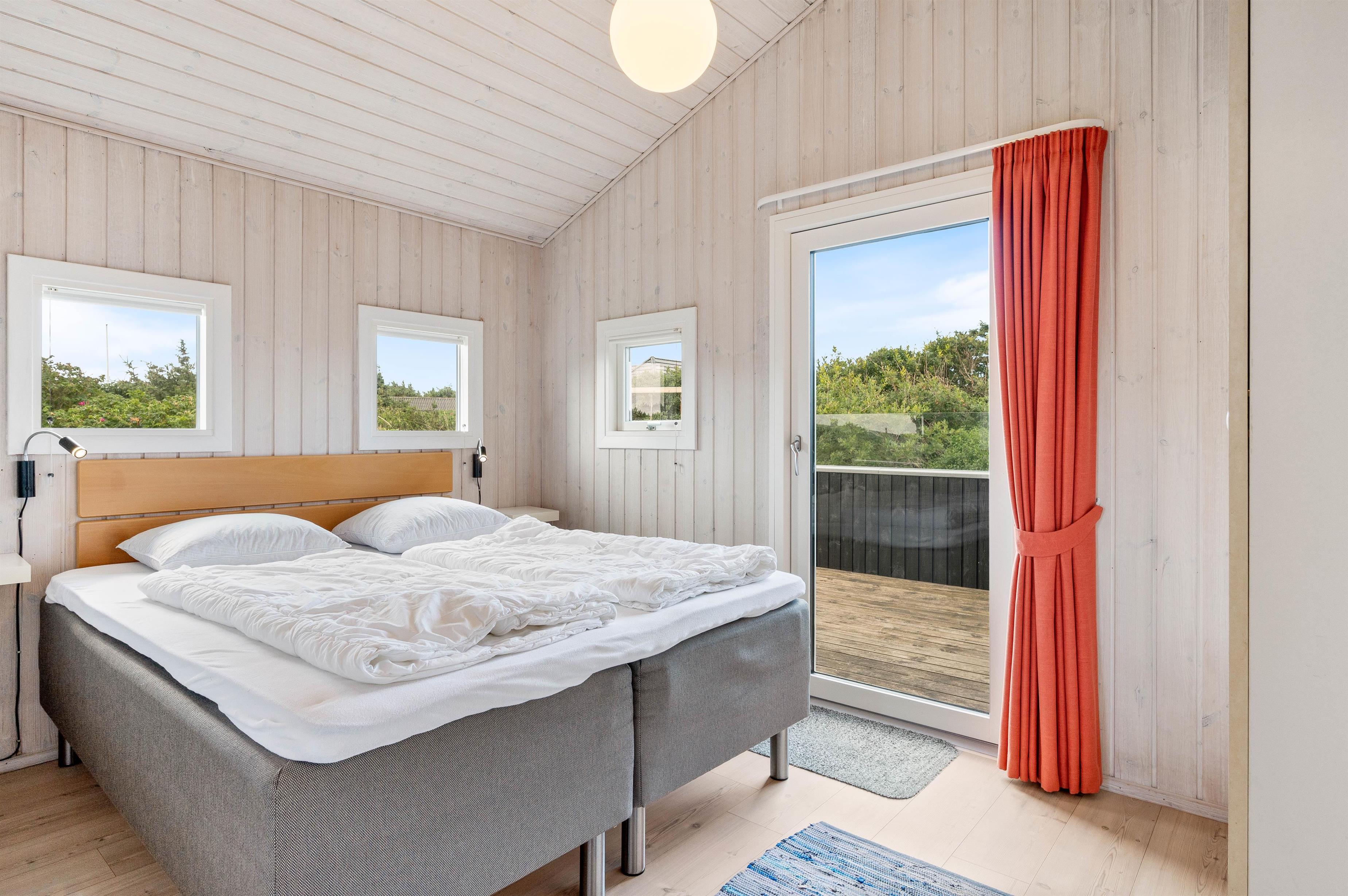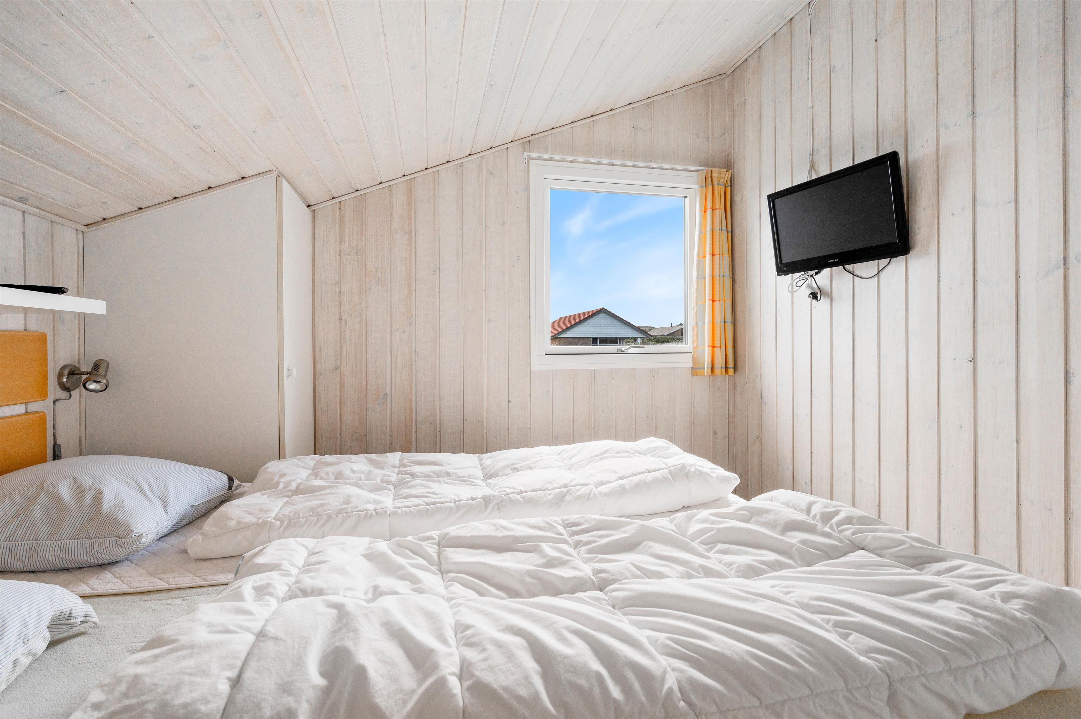 Sommerhuset har i alt 8 sovepladser fordelt på 4 værelser. 2 af værelserne er indrettet dobbeltsenge, mens de sidste 2 værelser er udstyret med hver 2 enkeltsenge. I finder et stort badeværelse i feriehuset, hvor der virkelig er skruet op for wellness-elementerne. Badeværelset er nemlig udstyret med både spabad og sauna, ligesom det også har brusekabine, tørretumbler, vaskemaskine og gulvvarme. Derudover er der desuden et gæstetoilet med brusekabine og gulvvarme.