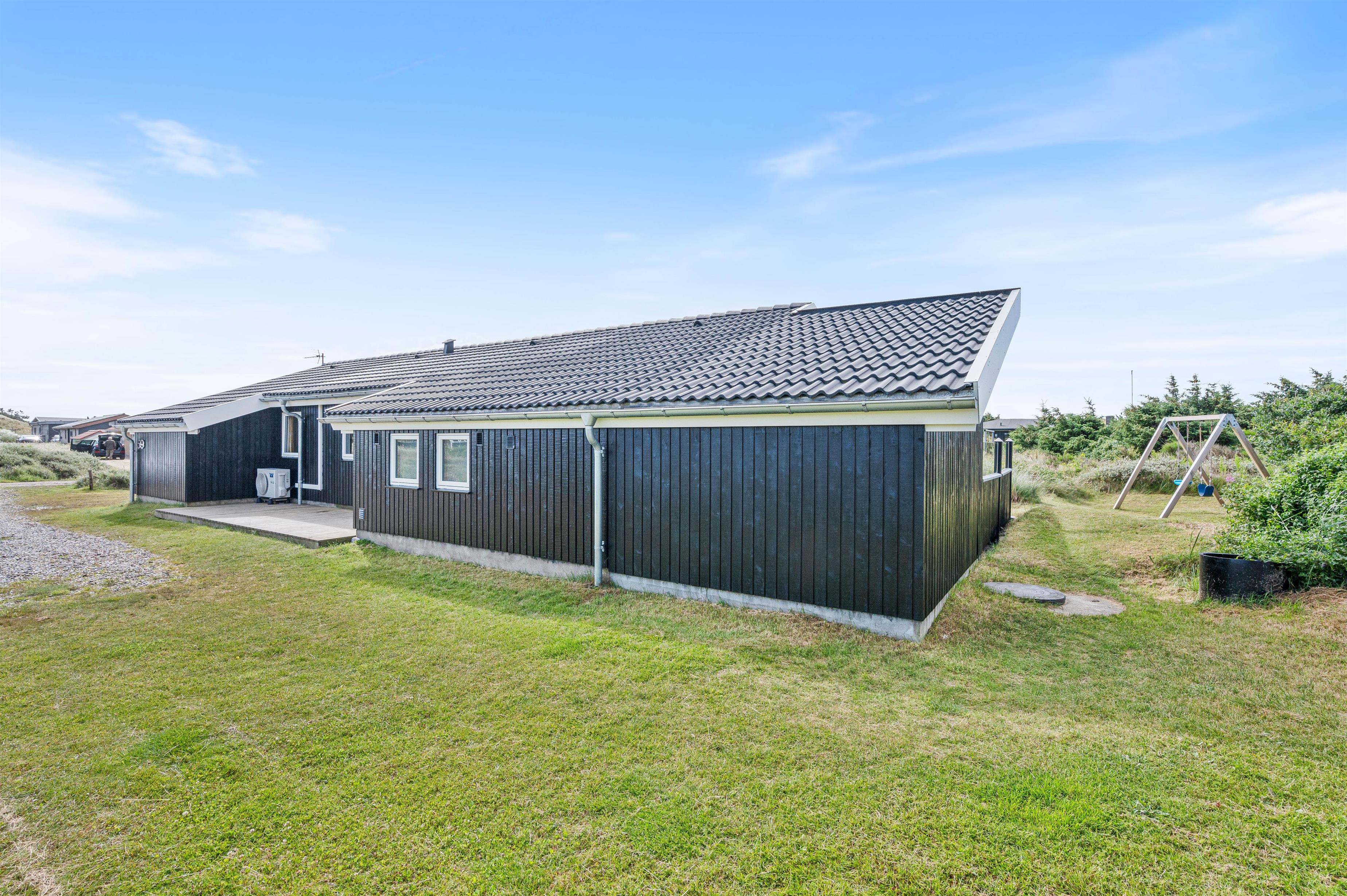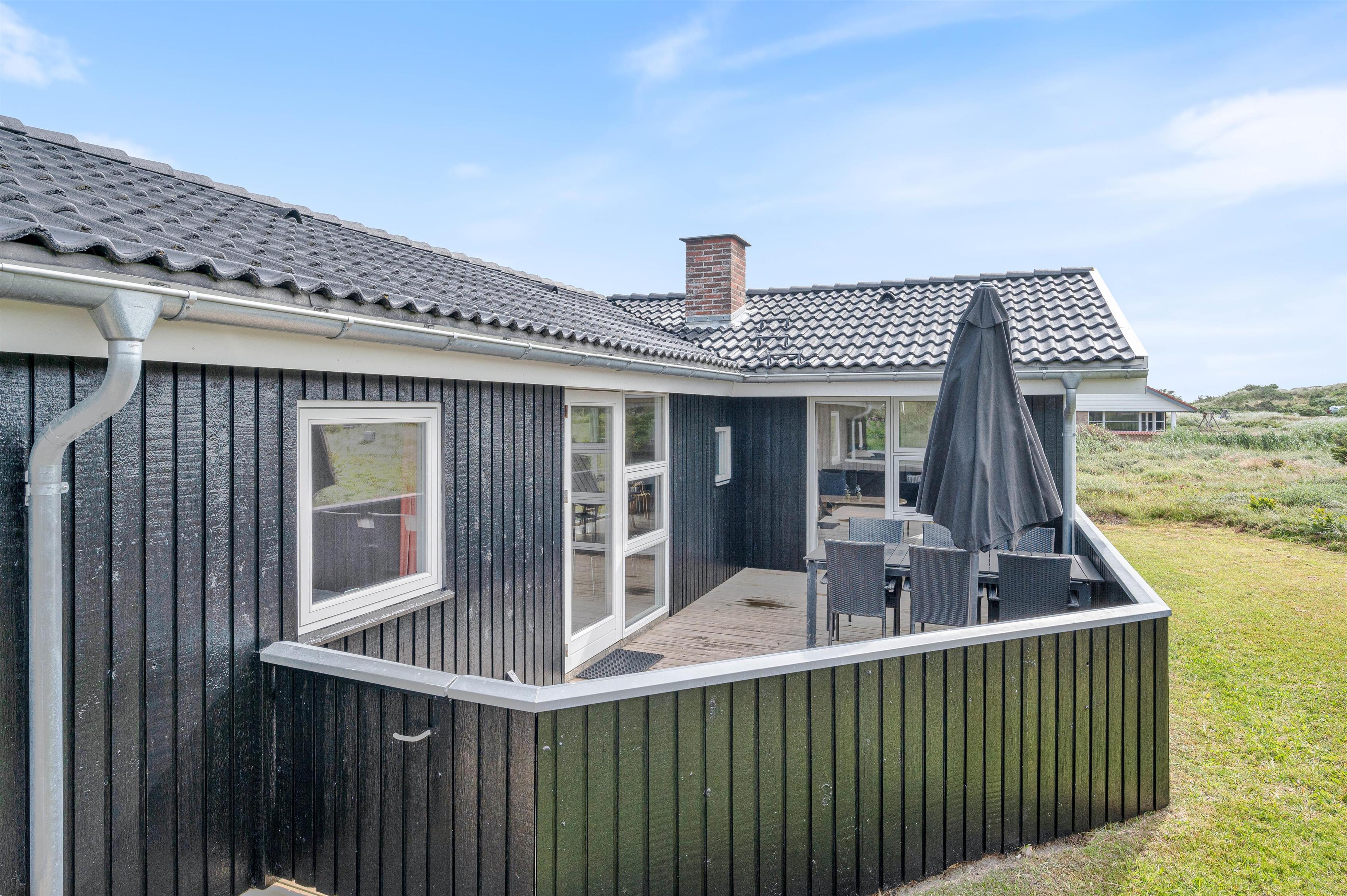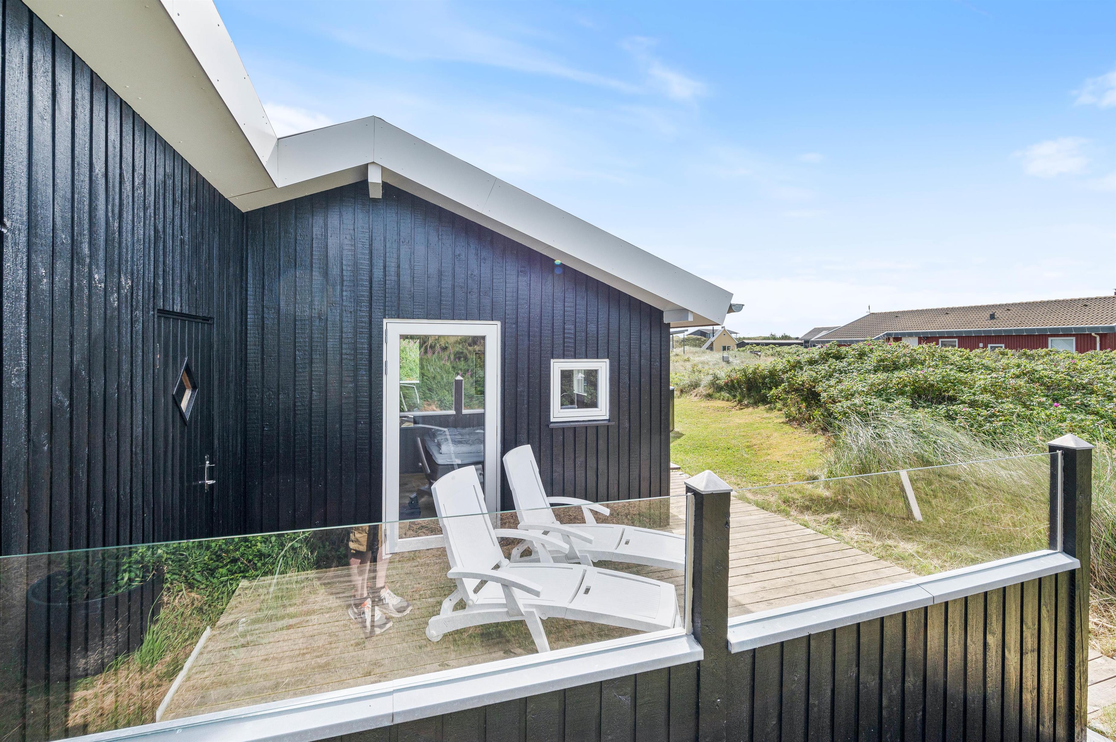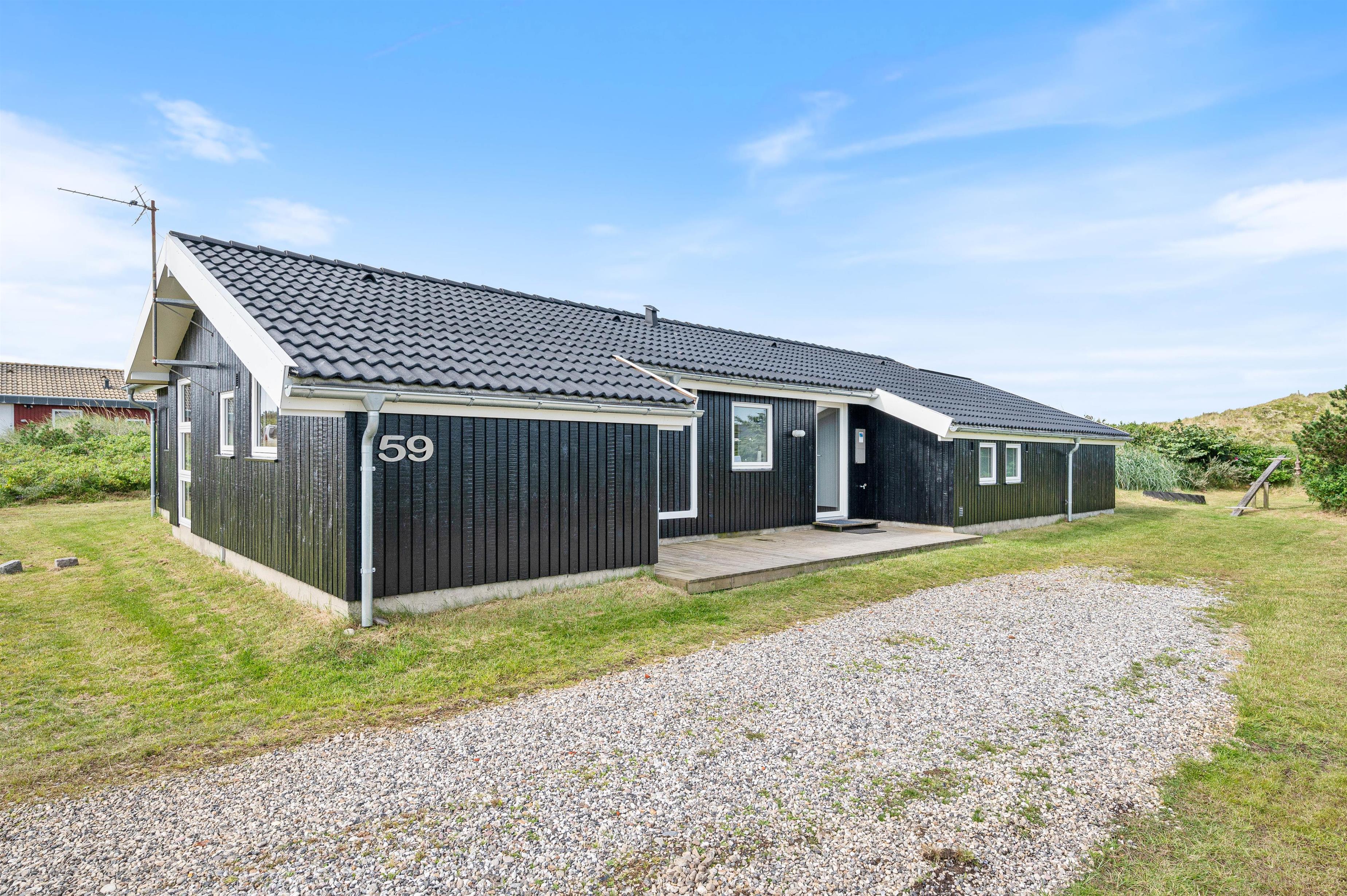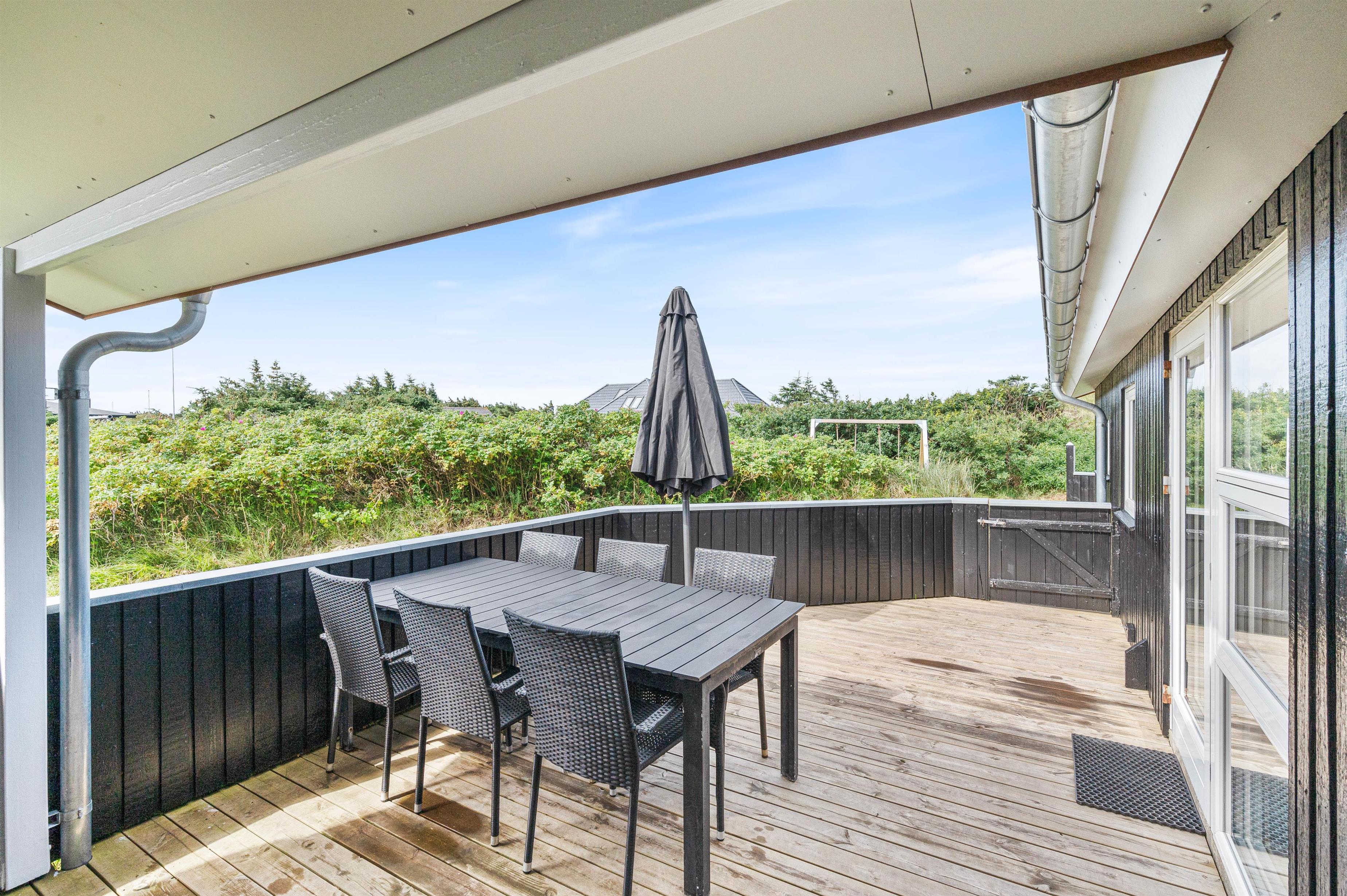 Sommerhuset er beliggende på en dejlig naturgrund, hvor hybenbuske og marehalm snor sig lystigt. Og I vil helt sikkert have lyst til at slå jer ned på en af feriehusets terrasser for at nyde udsigten og den friske havluft fra Vesterhavet.