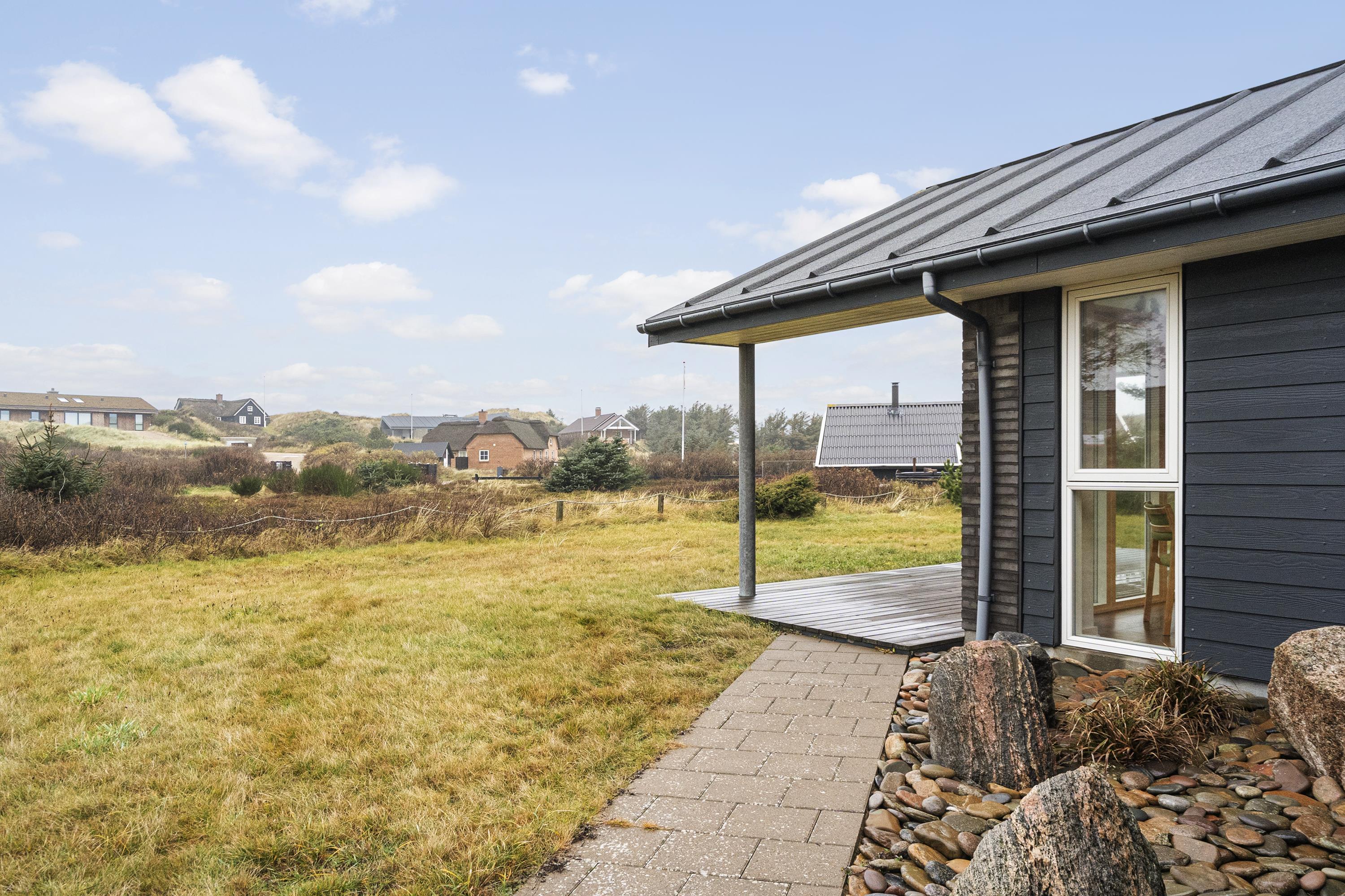 Sommerhuset ligger på en 1.200 kvadratmeter stor natur- og klitgrund, hvor der er rig mulighed for leg og aktiviteter. I kan også tænde op i husets grill og tilberede et lækkert måltid, som kan nydes med et køligt glas vin, mens I samtidig nyder udsigten over de rolige klitter i baghaven.