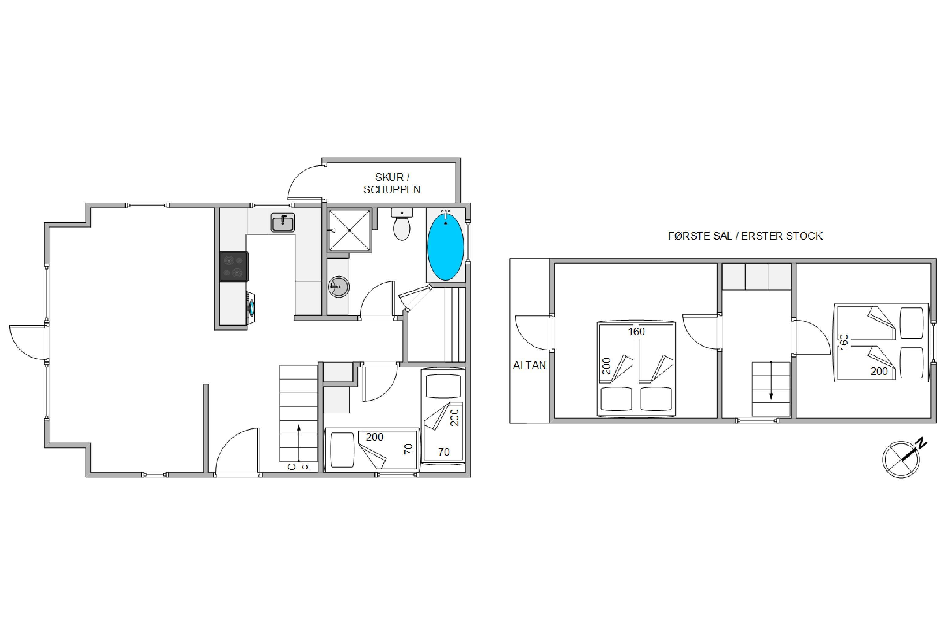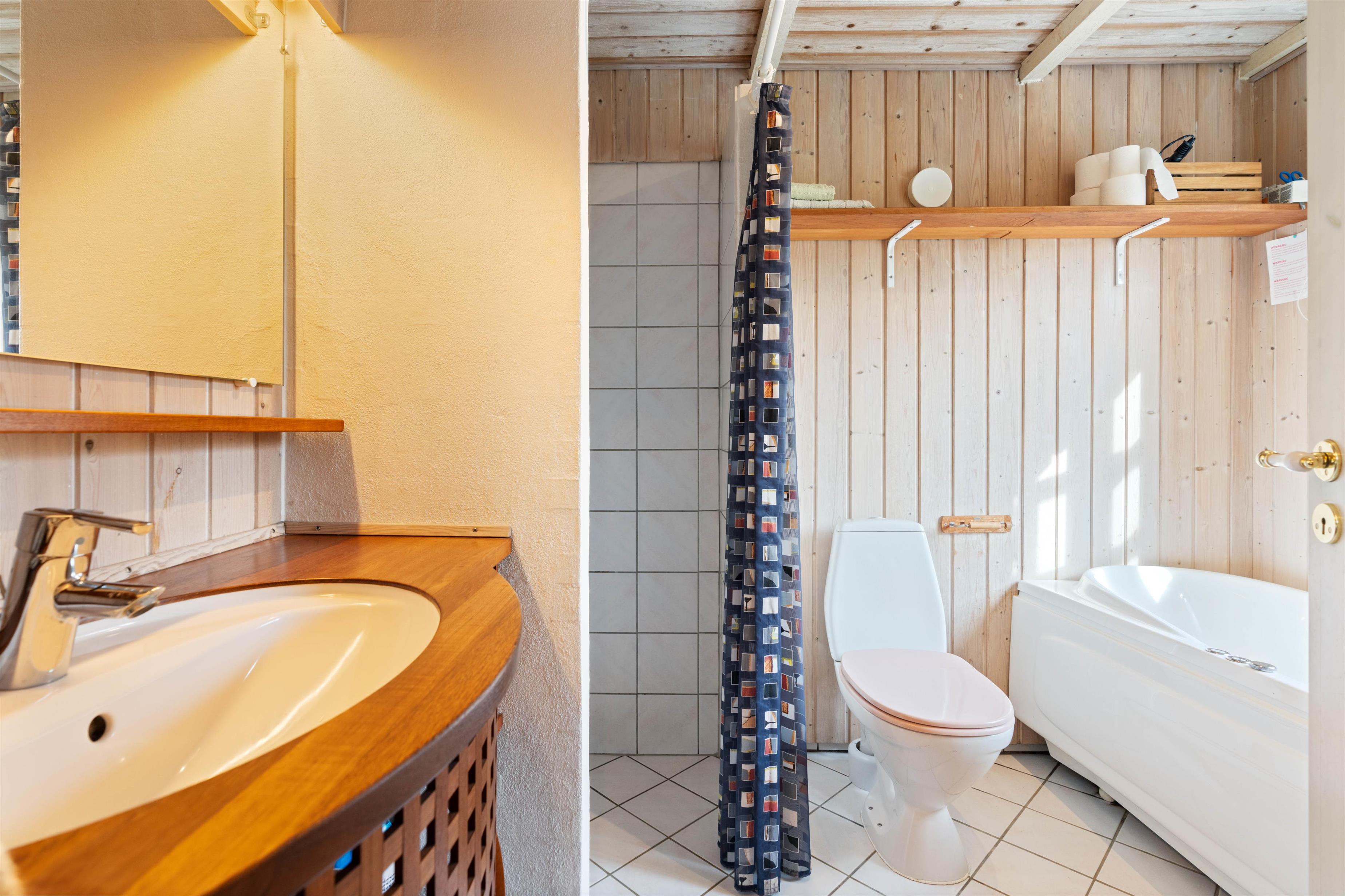 Om aftenen når I bliver trætte, kan I fordele jer i de tre soveværelser. To af soveværelserne er indrettet med dobbeltsenge og det sidste værelse er indrettet med to enkeltsenge. De nydelige møbler i hele feriehuset, skaber en afslappende atmosfære, hvor I kan slappe af efter en aktiv feriedag.