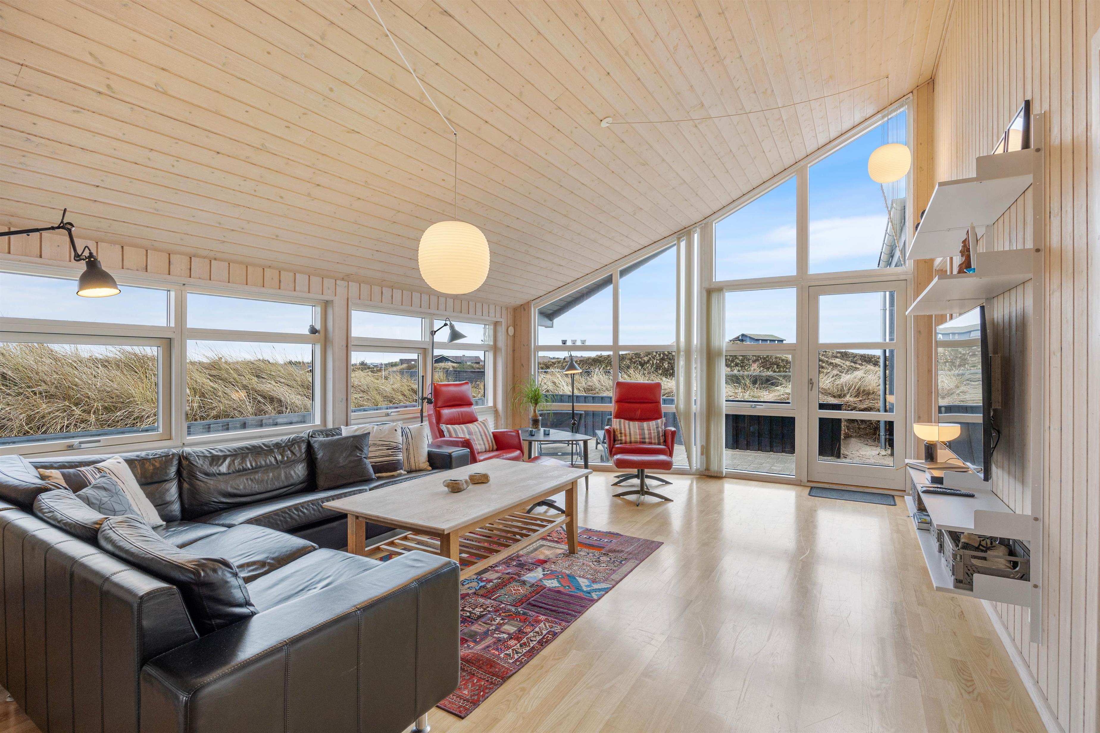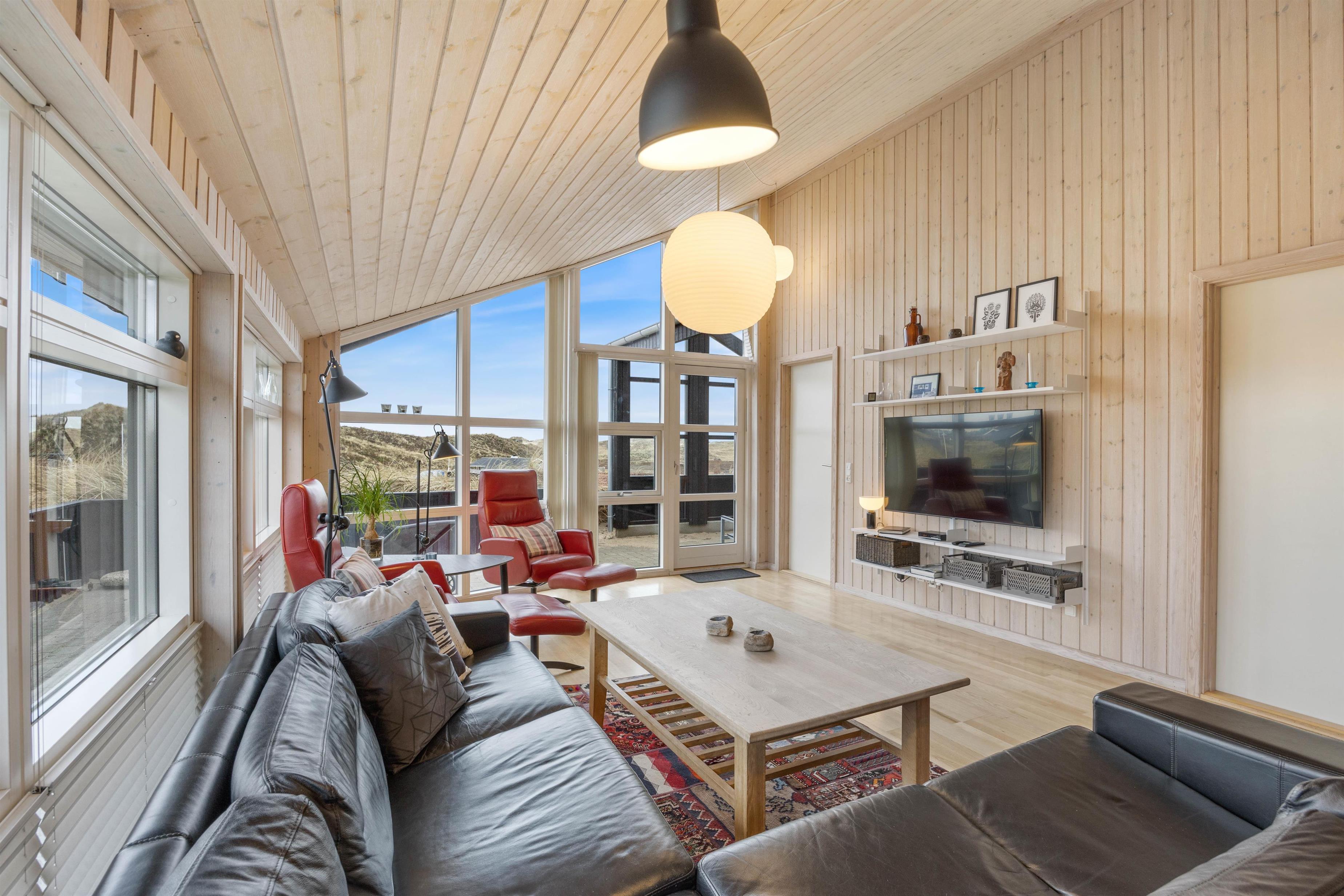 I tv-stuen kan du slappe af på sofaerne eller i de komfortable lænestole. Her kan du se dine yndlingsfilm eller serier på det store faldskærms-tv, eller bare slappe af og nyde en god bog. Alrummet har et loft til kip, som giver en følelse af rummelighed og åbenhed sammen med de store vinduer, der giver masser af naturligt lysindfald, hvilket skaber en lys og luft til rummet.