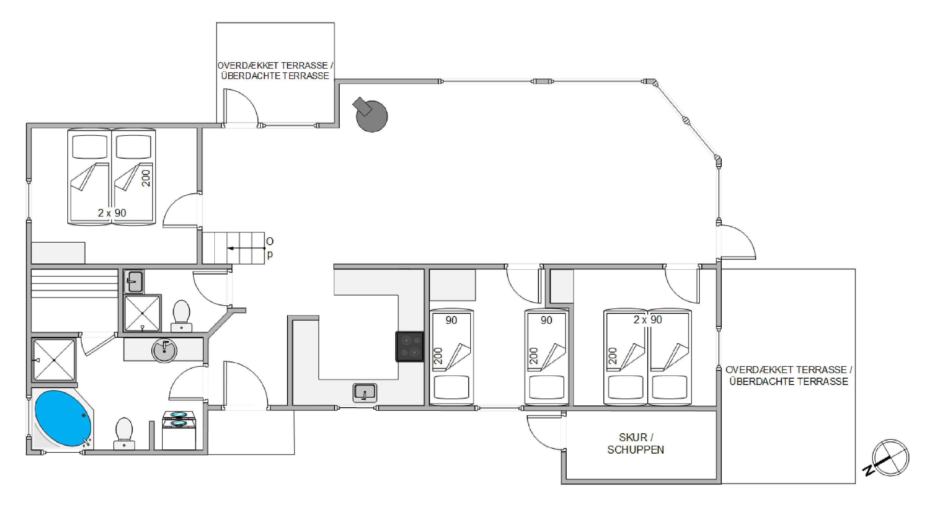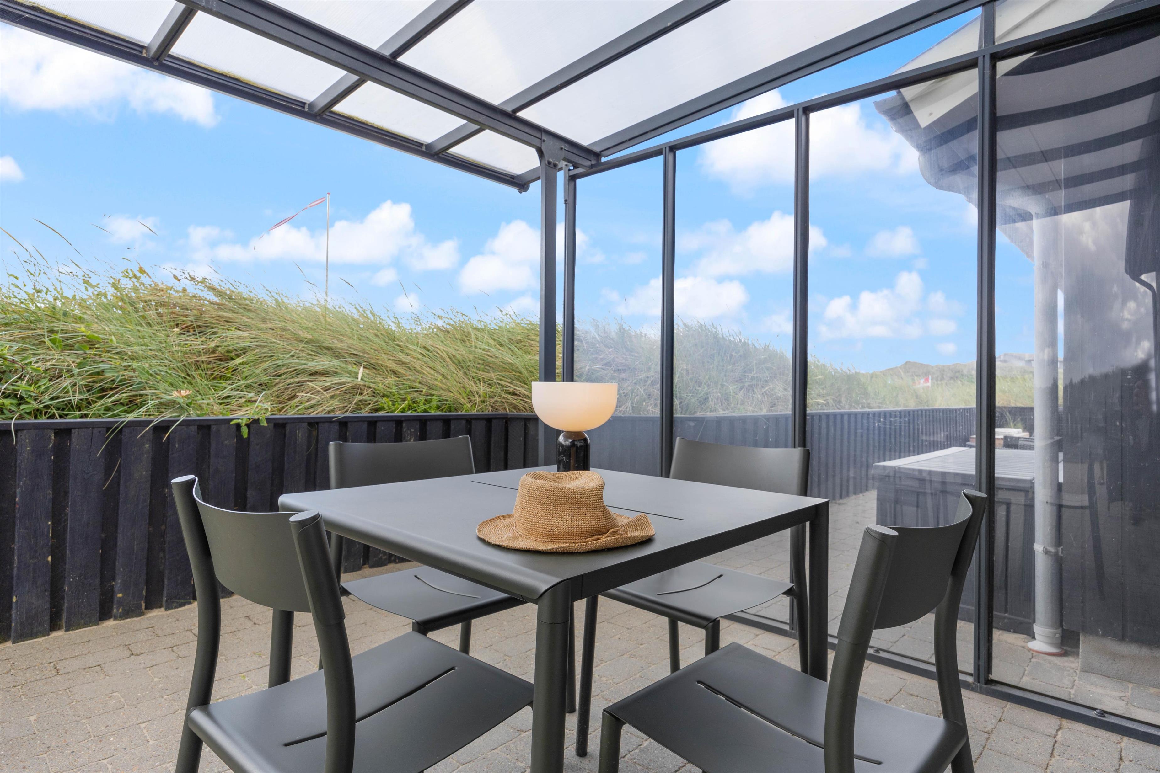 Ternedalen 37 er beliggende på en dejlig naturgrund, med klitlandskabet omkring sig. Der er en fantastisk afskærmet del samt en overdækket, så du kan slappe af og nyde din tid udendørs, uanset om det regner, blæser eller solen skinner. Terrassen er udstyret med solvogne, så du kan tage en lur eller nyde en god bog i solen. Der er også en spiseplads, hvor du kan nyde måltiderne i det fri og nyde den friske luft og naturens lyde.