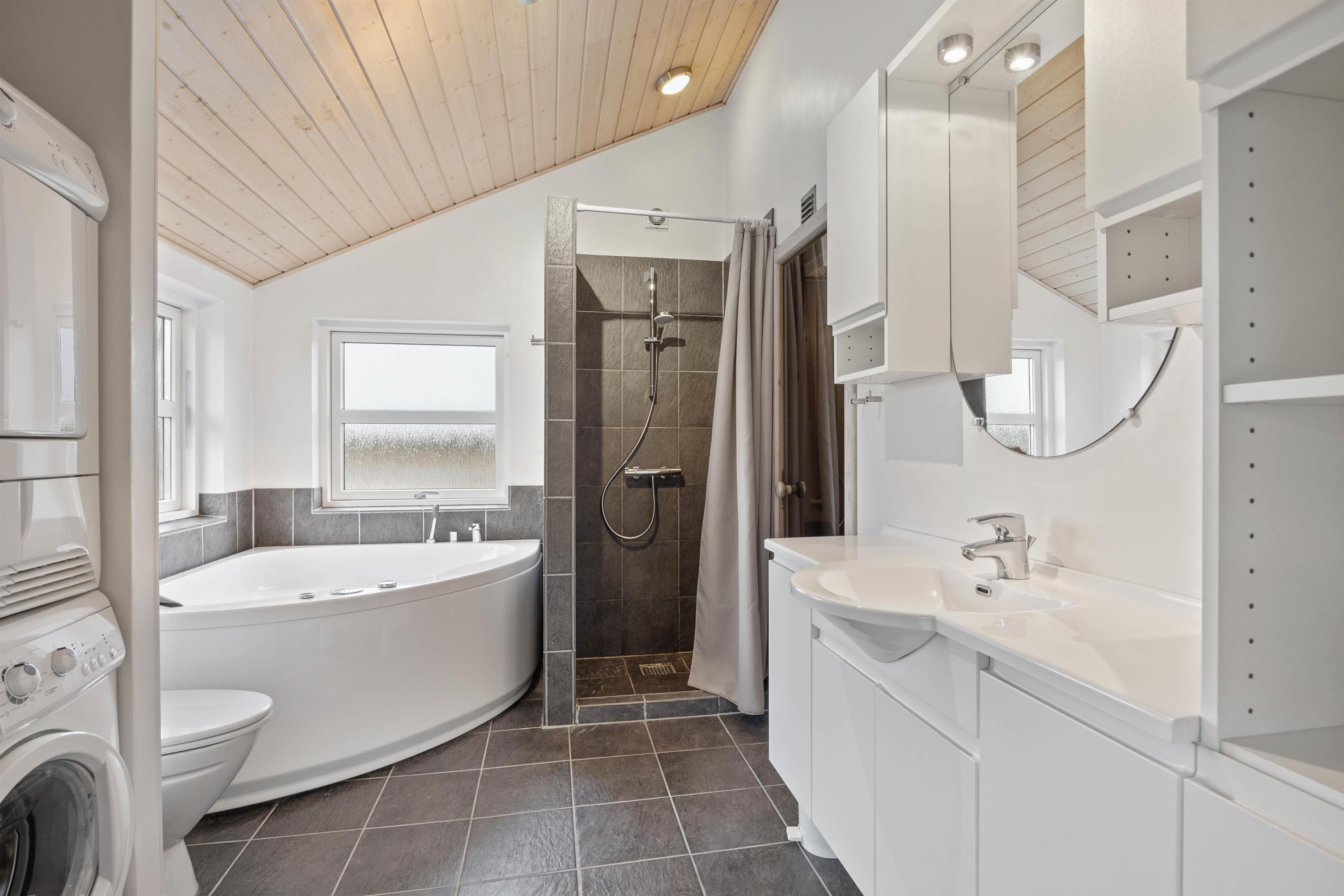 Dette feriehus har et lækkert badeværelse, der er perfekt til afslapning og forkælelse. Badeværelset er udstyret med en sauna, hvor du kan blive varmet godt igennem og finde ro og velvære. Derudover er der også et separat toilet, som er praktisk, når der er flere mennesker i huset.