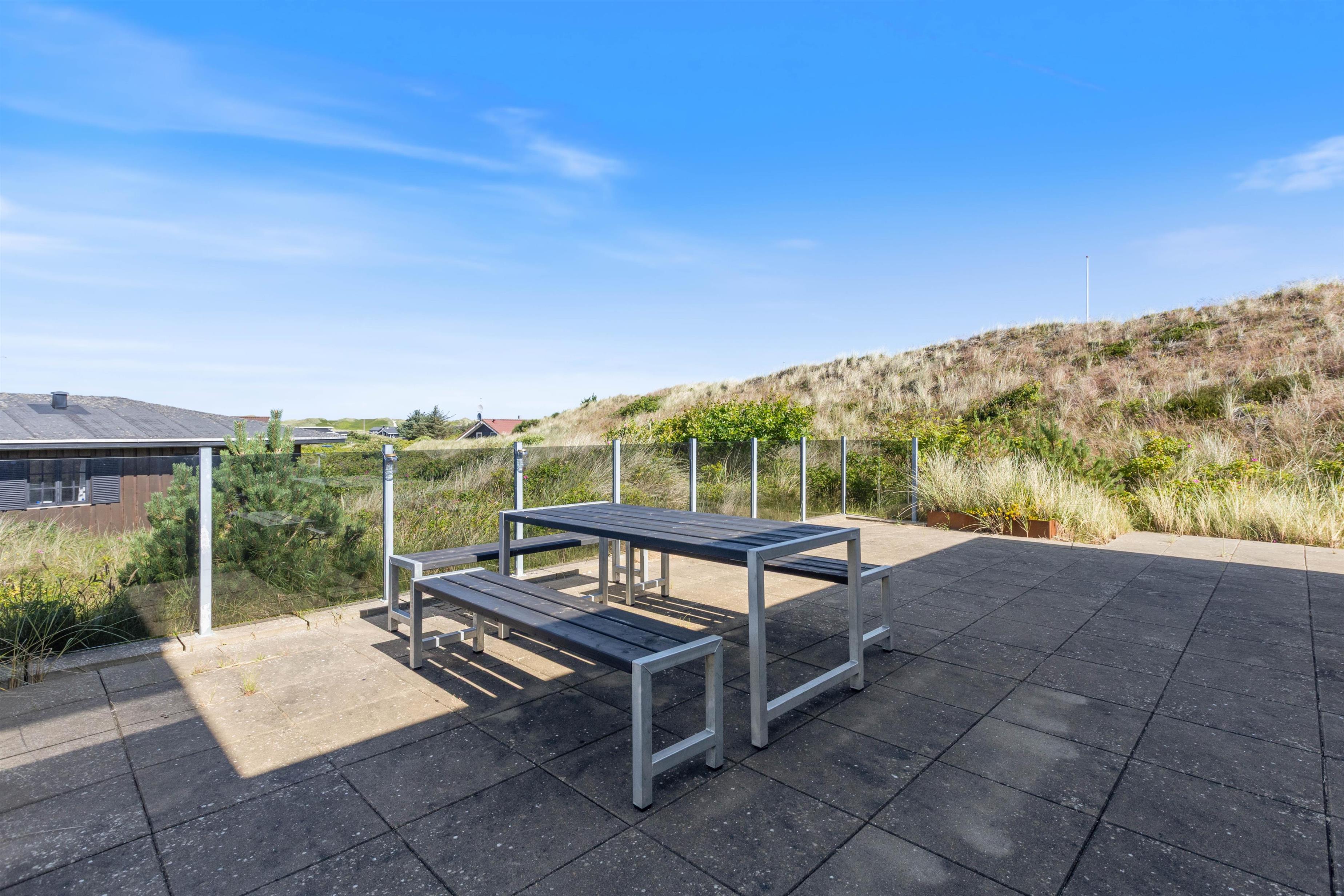 Dette moderne feriehus ligger på en skøn naturgrund i Houvig, og fra terrassen har I en helt fantastisk udsigt ud over ferieområdet med lyngklædt klitlandskab så langt, øjet rækker. Nyd solen i liggestolene og rund dagen godt af med en lækker feriemiddag på grillen i den lune aftensol.