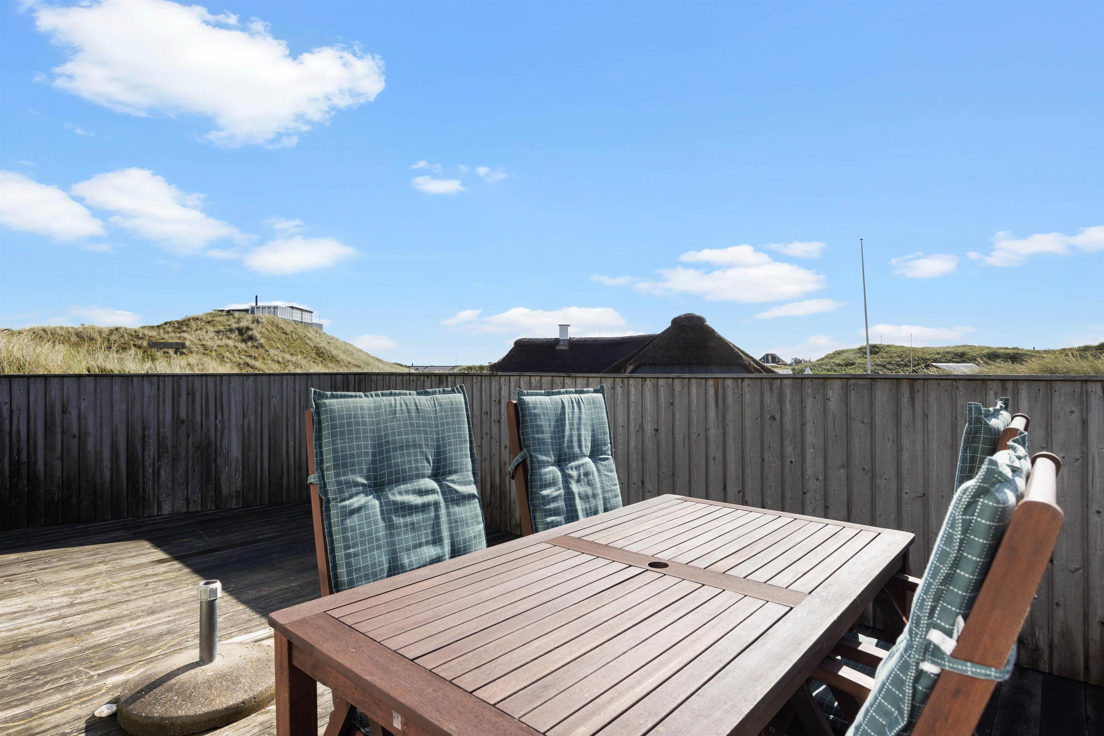 Feriedagene bliver altid lidt skønnere med badestrande. Og her har I endnu engang heldet med jer. Grunden er nemlig beliggende 400 meter fra Vesterhavet, så sandstranden på et par minutter let kan nås. Det kuperede klitlandskab mellem hus og hav er også optimalt område for hundeejere med snuselystne hunde.