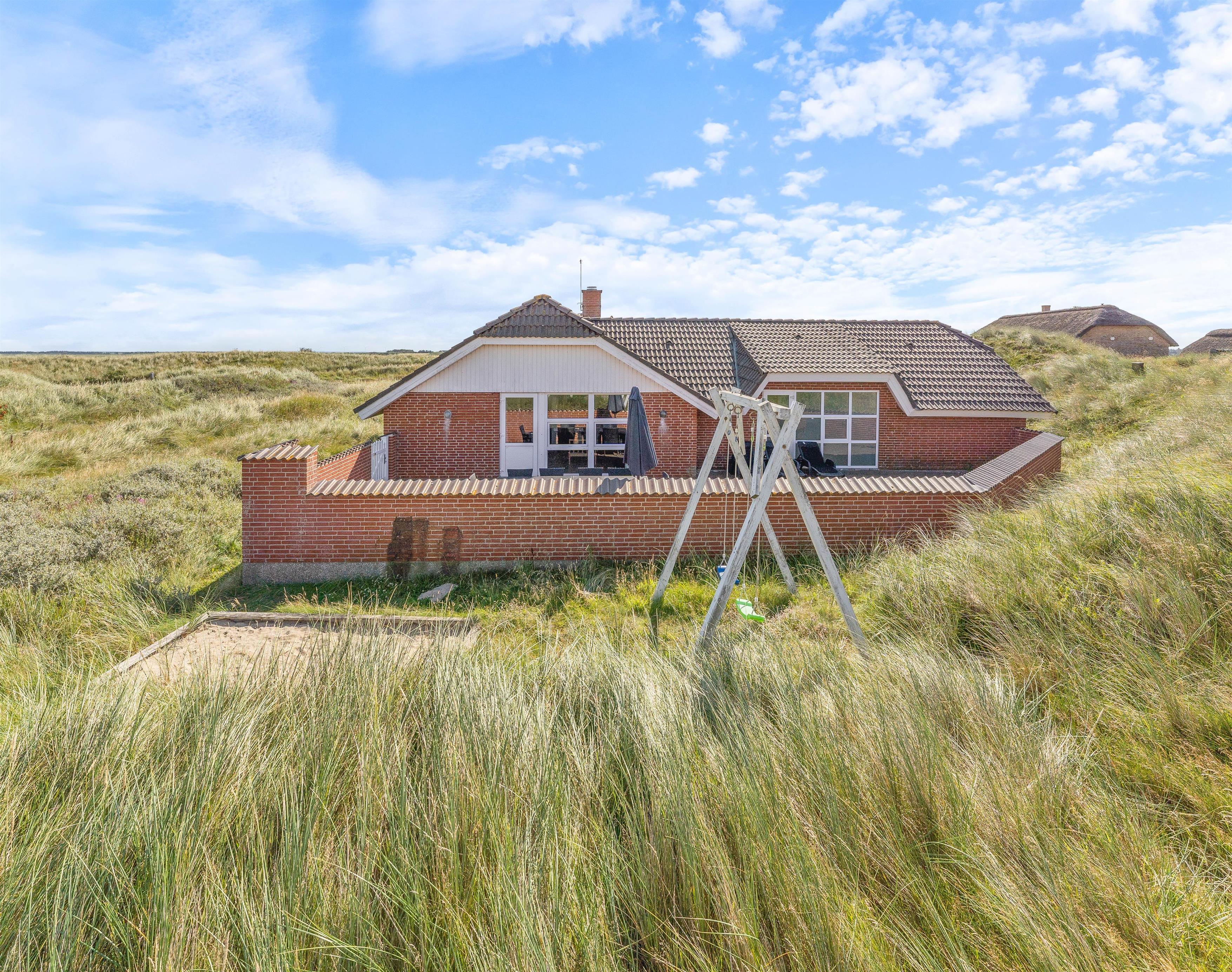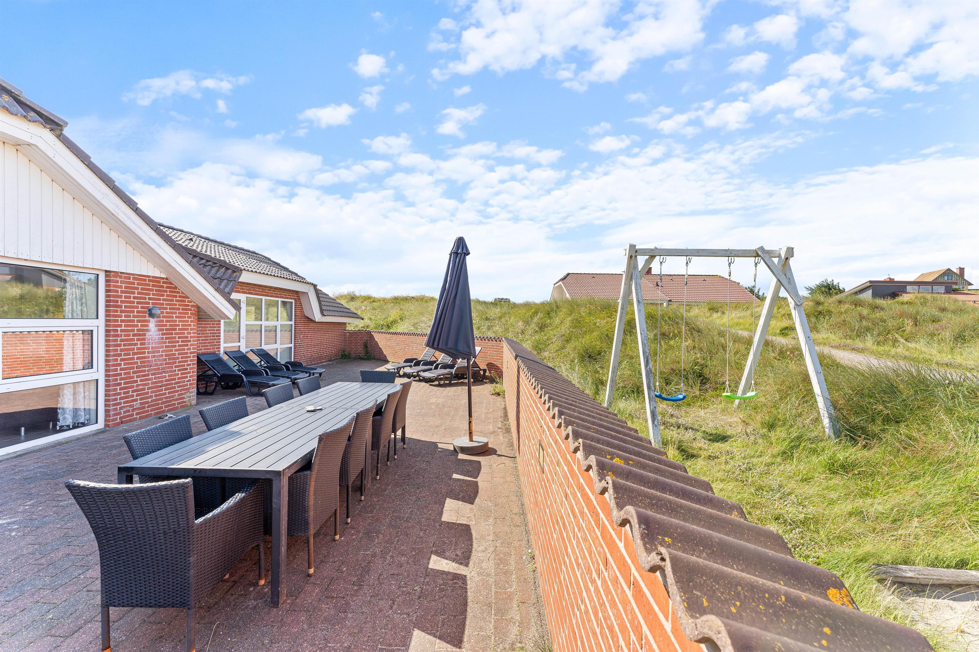 Lukket terrasse, gynge og sandkasse og kun 350 meter til havet