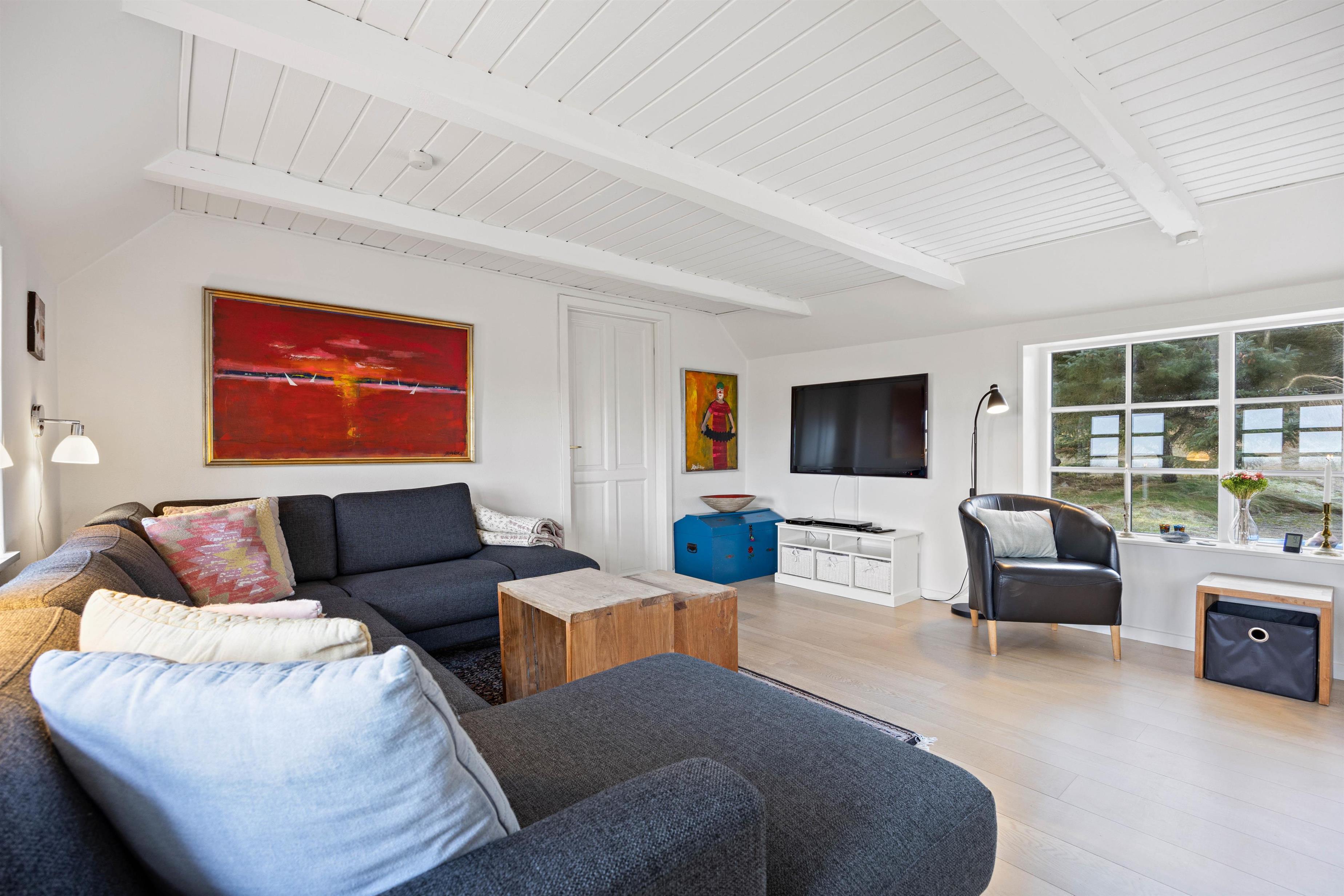 Her er der nemlig flot kunst på væggene, bløde og farverige tekstiler, behagelige møbler og fritlagte bjælker. Alt sammen små detaljer, der er med til at danne det samlede billede af en hyggelig atmosfære. Men selvom huset er fra 1820, skal I på ingen måde frygte at gå ned på komfort. Huset har gennemgået en komplet renovering og fremstår yderst moderne og indbydende.