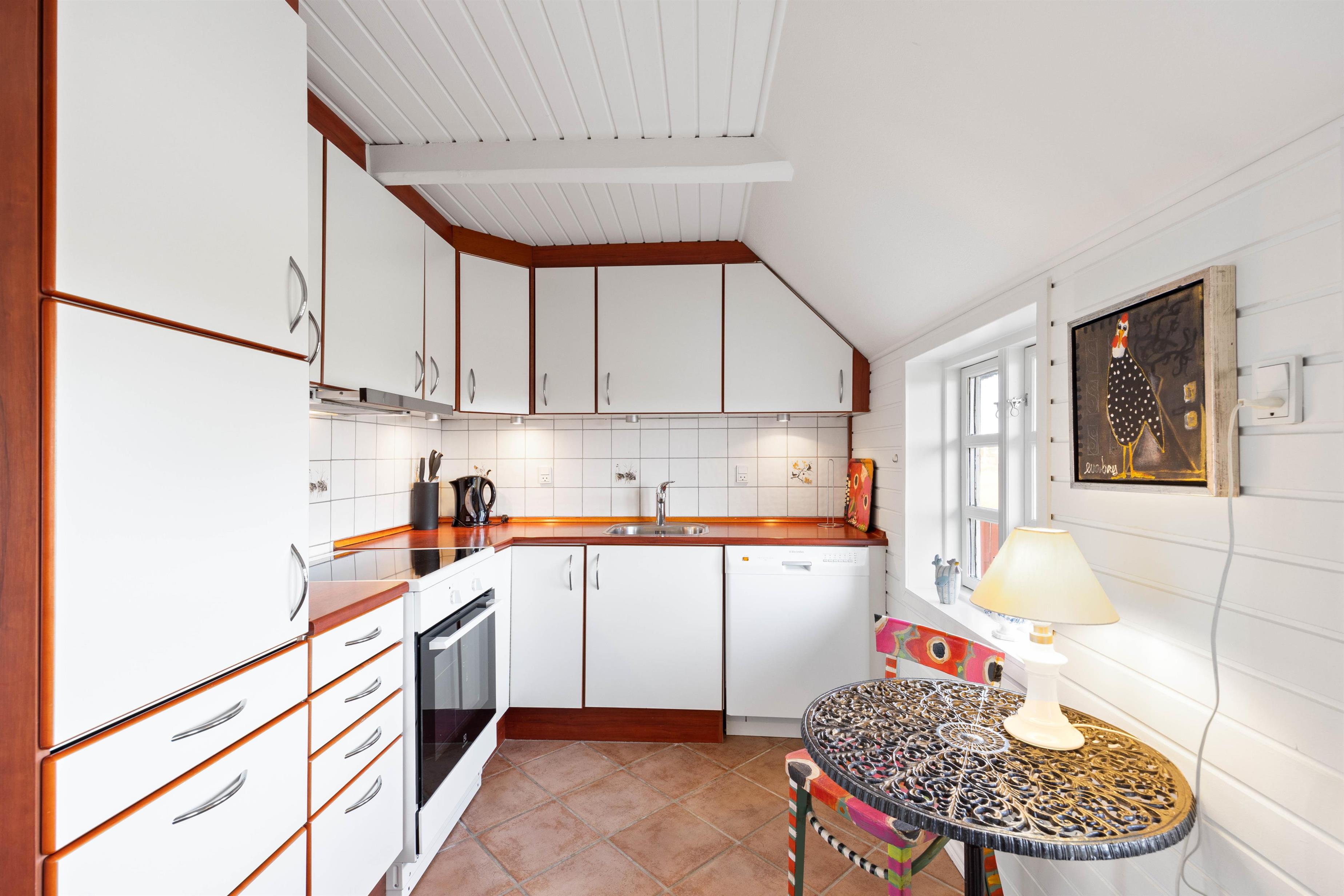 Klitgårdens hjerte er uden tvivl det store opholdsrum, der forbinder køkkenet med spise- og dagligstuen. Det er et fantastisk rum, der indbyder til timevis af familiehygge, madlavning, sjove spil eller blot fordybelse i en god bog. Og gerne med lyden af den knitrende brændeovn i baggrunden.