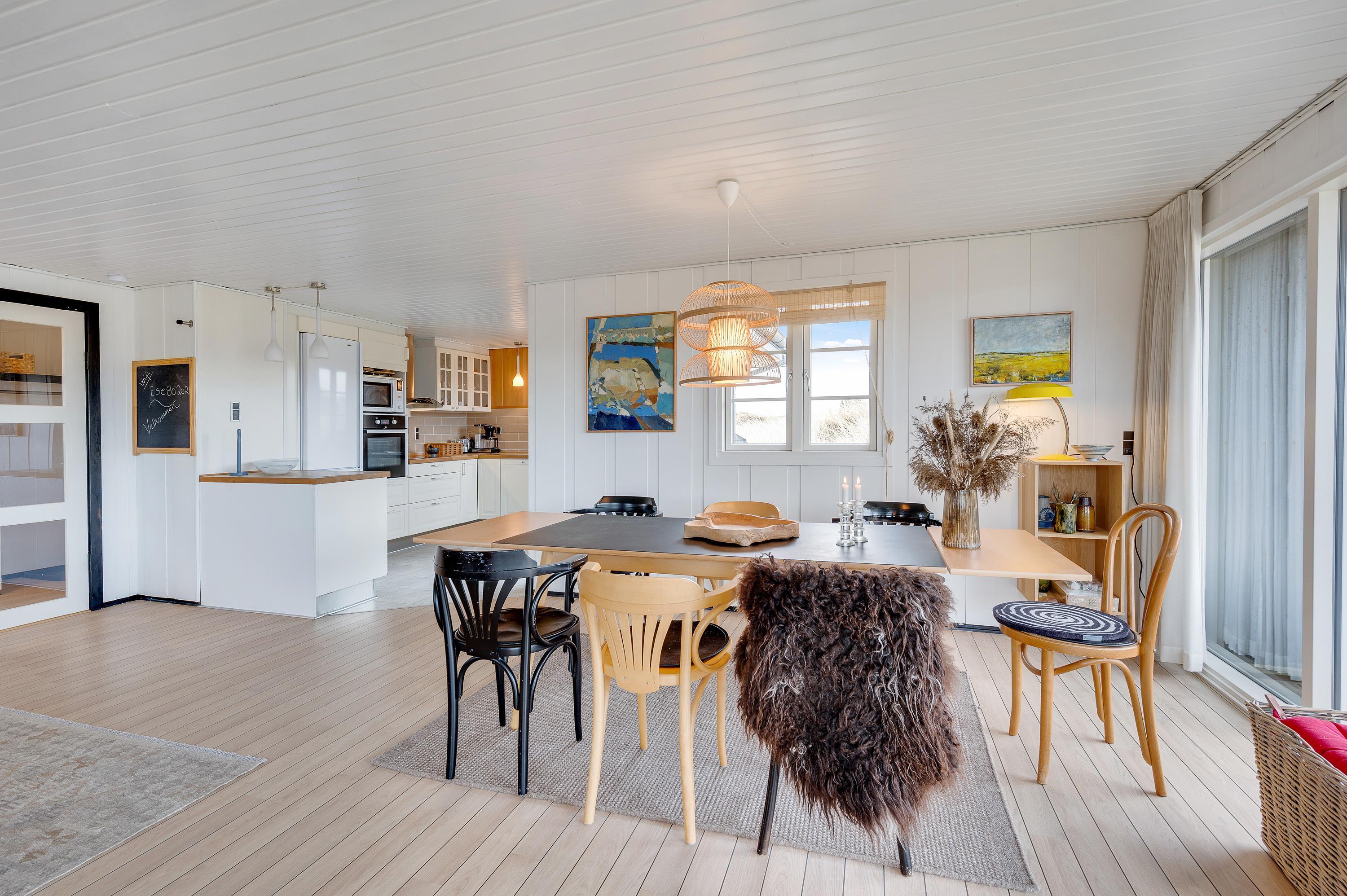 Alrummet er det store samlingspunkt i feriehuset, hvor køkken, stue og spiseplads er samlet i ét rum. Selv når nogle laver mad i køkkenet, og andre ser film via Chromecasten i stuen, kan I nyde hinandens selskab. Tænder I op i brændeovnen i stuen, sørger den for at fuldende feriestemningen med sine knitrende flammer og varme.