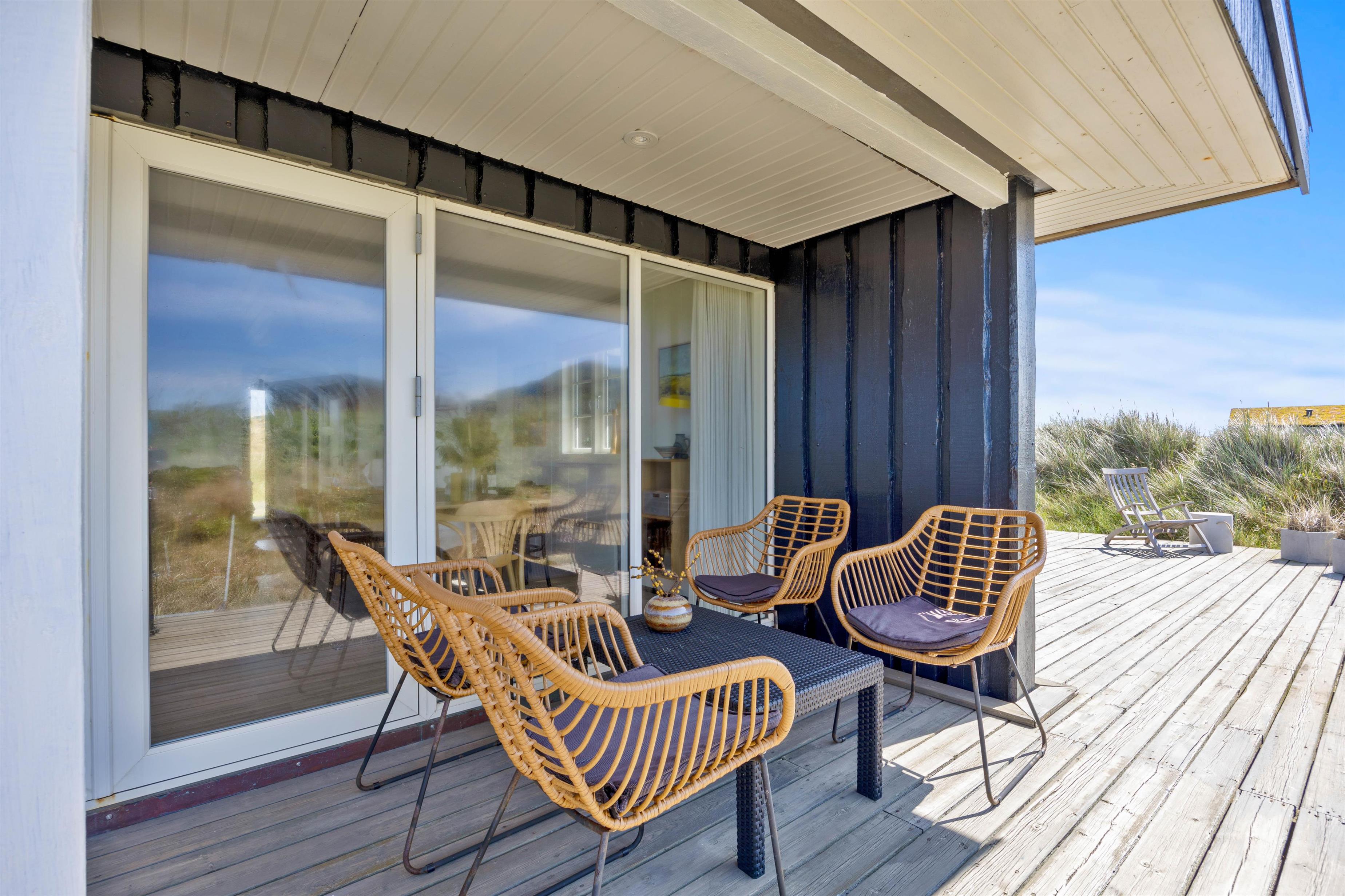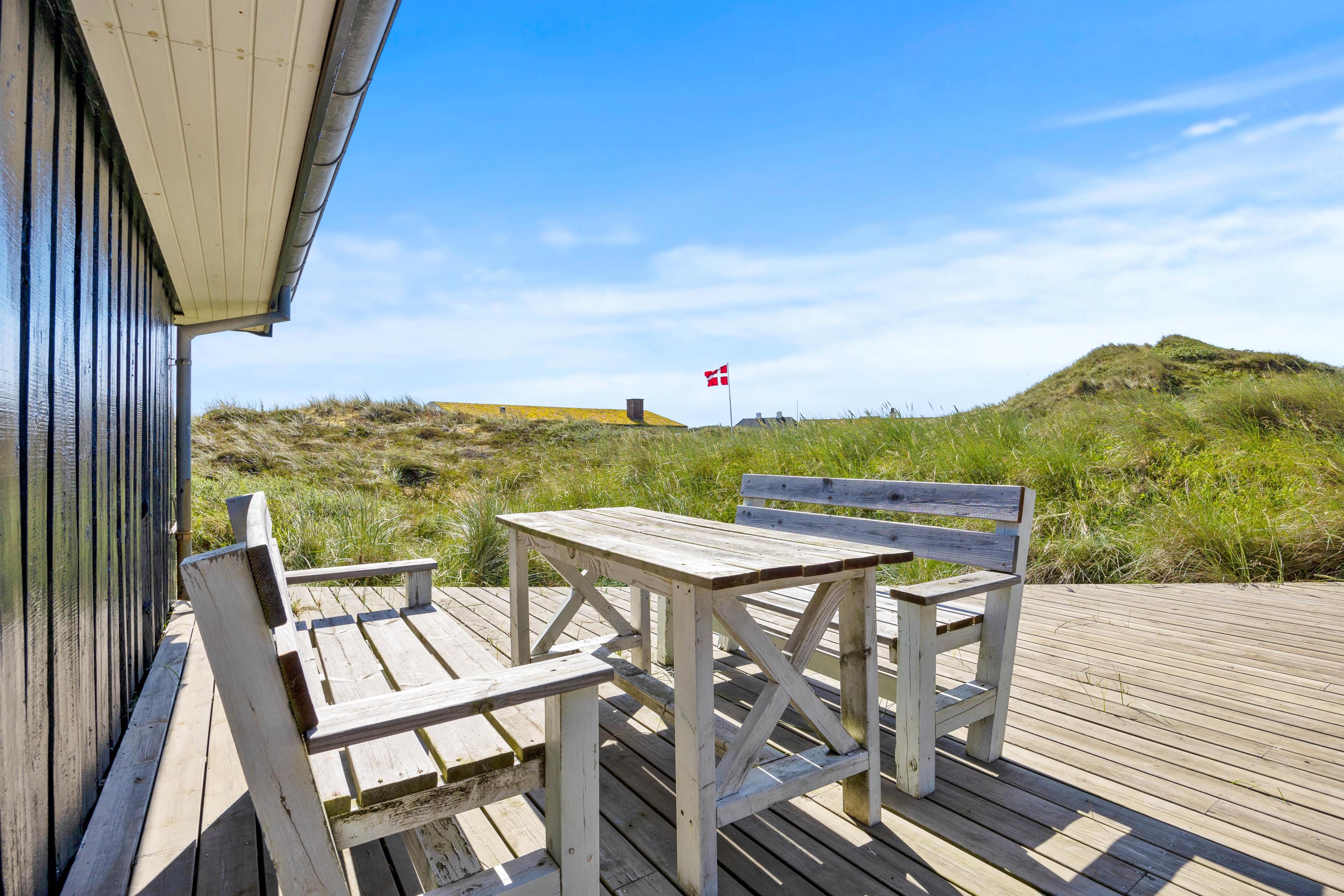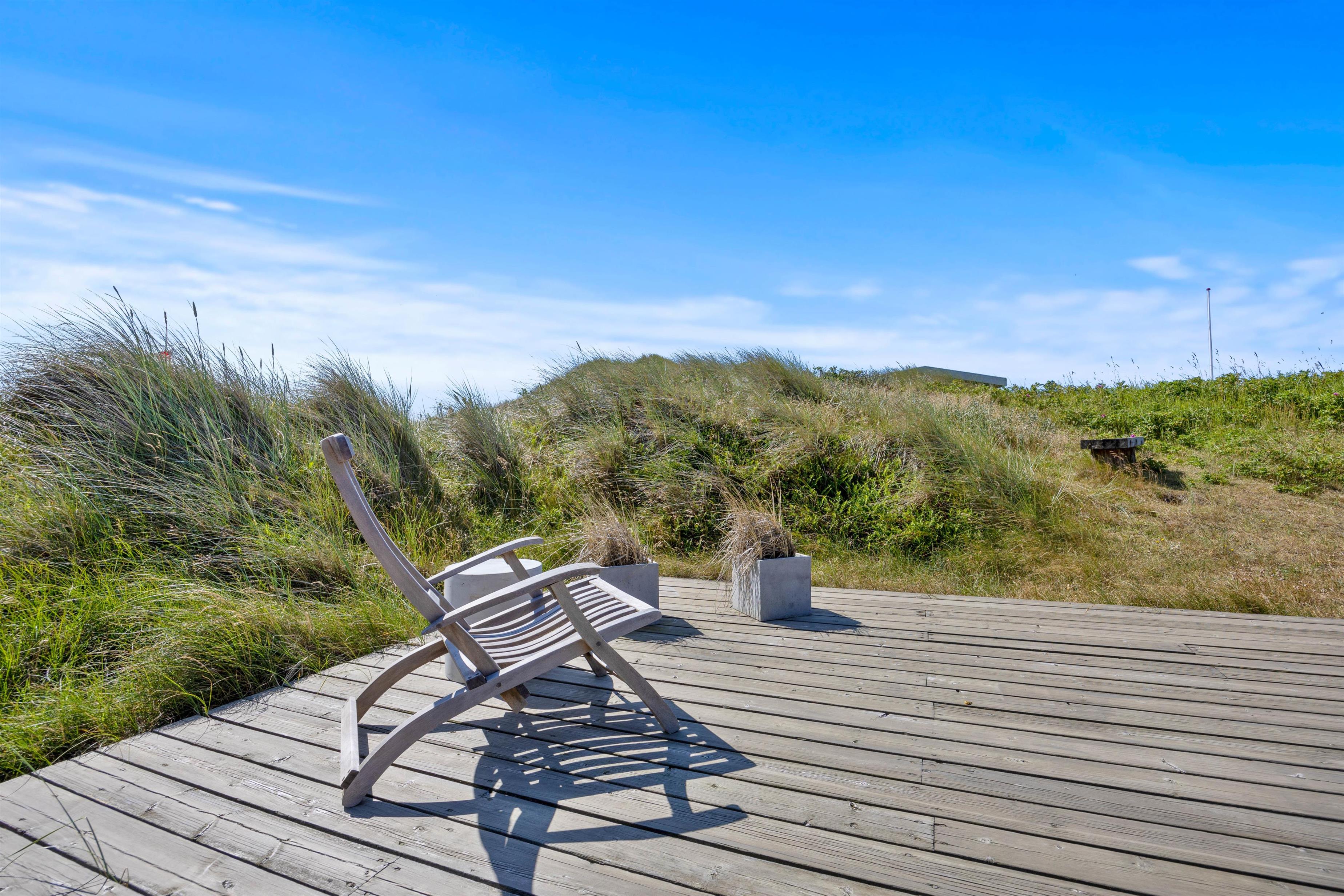 Til sommerhuset har I gode terrasser, hvor I altid vil kunne finde jer en god plads i solen, I kan sætte jer godt til rette i. Der er både havemøbler og liggestole til rådighed for jer, som I kan læne jer tilbage i og bare nyde solen og den friske luft. Desuden vil I også kunne høre bølgernes brusen i baggrunden.