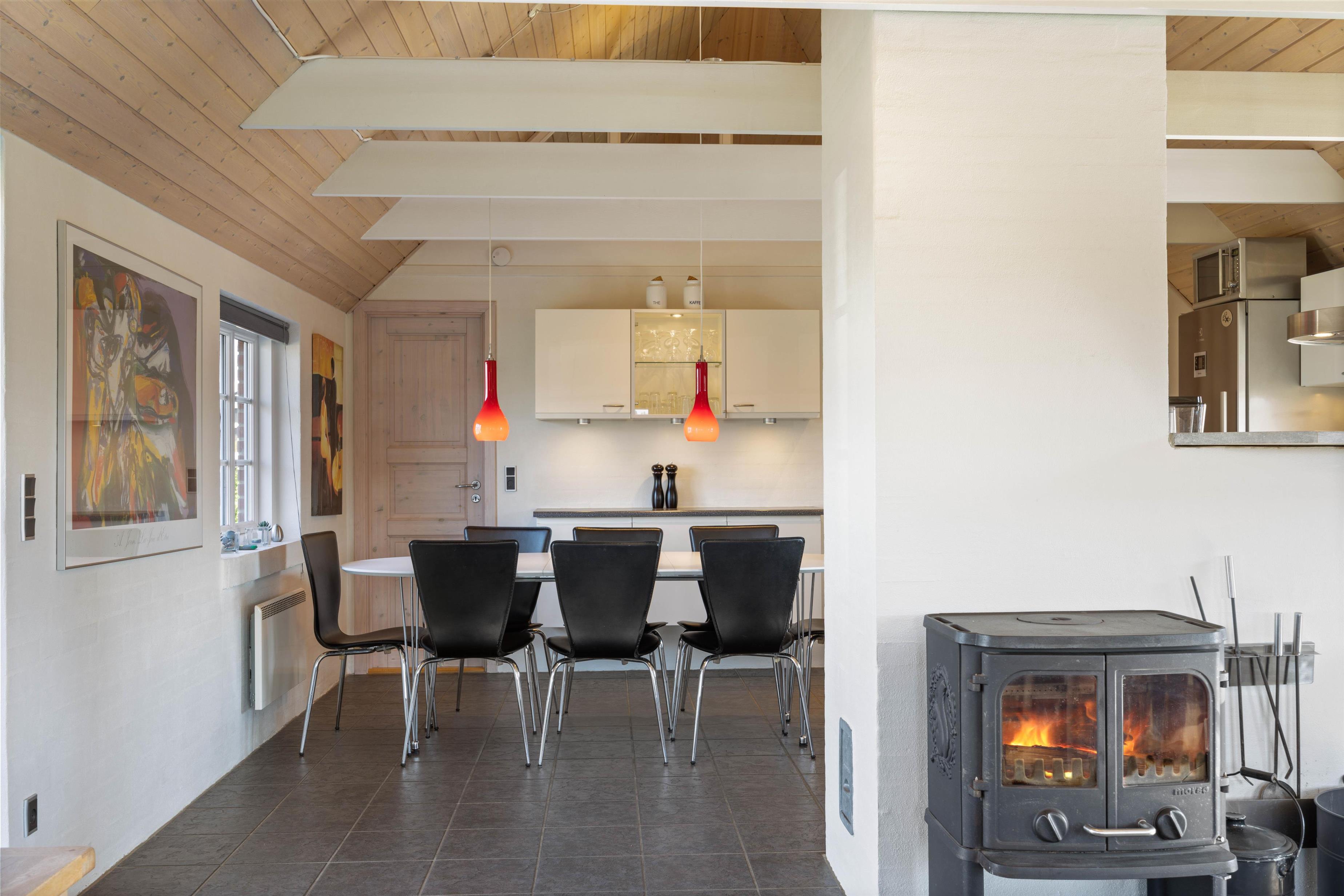 Lys indretning med loft til kip og brændeovn på Mågedalen 47