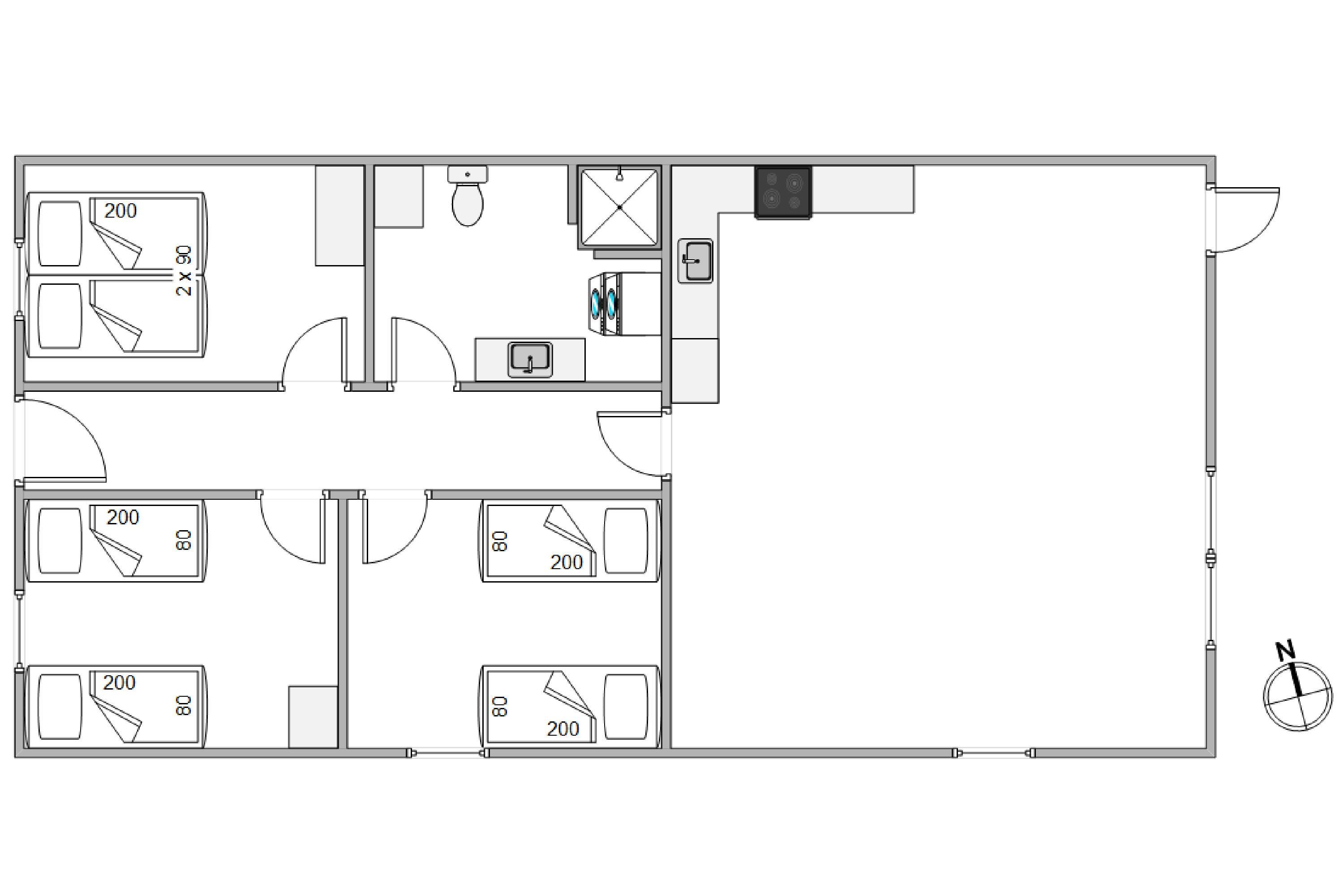 1. soverum/sengestørrelser2 x 80 x 200