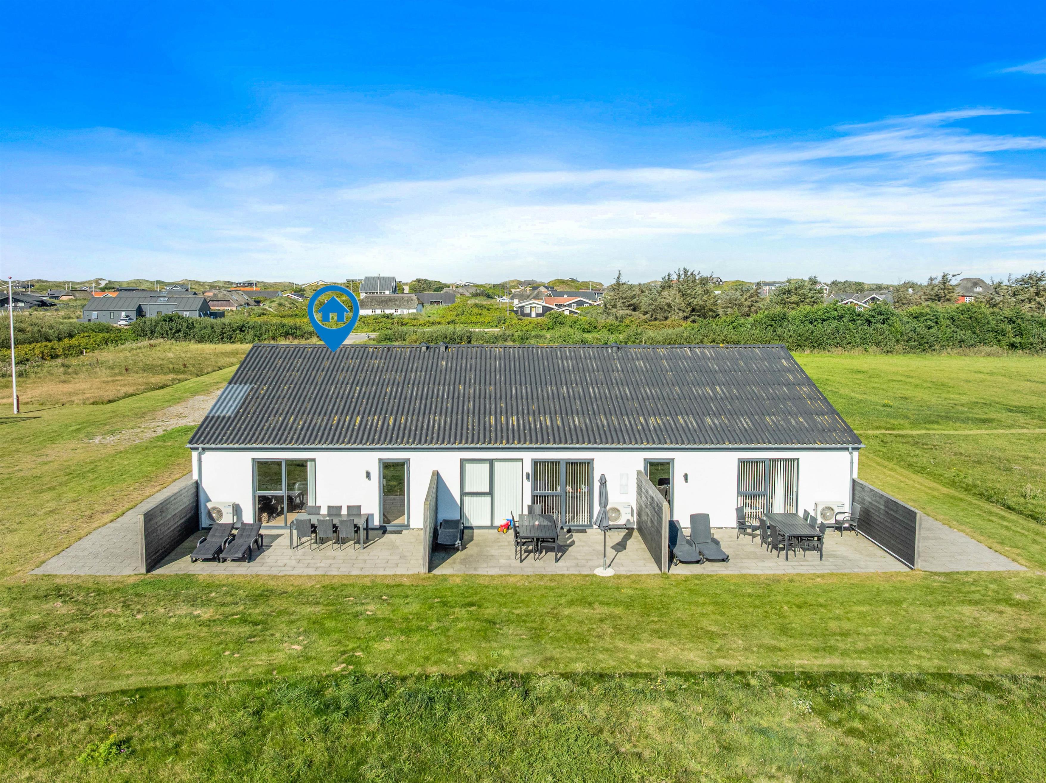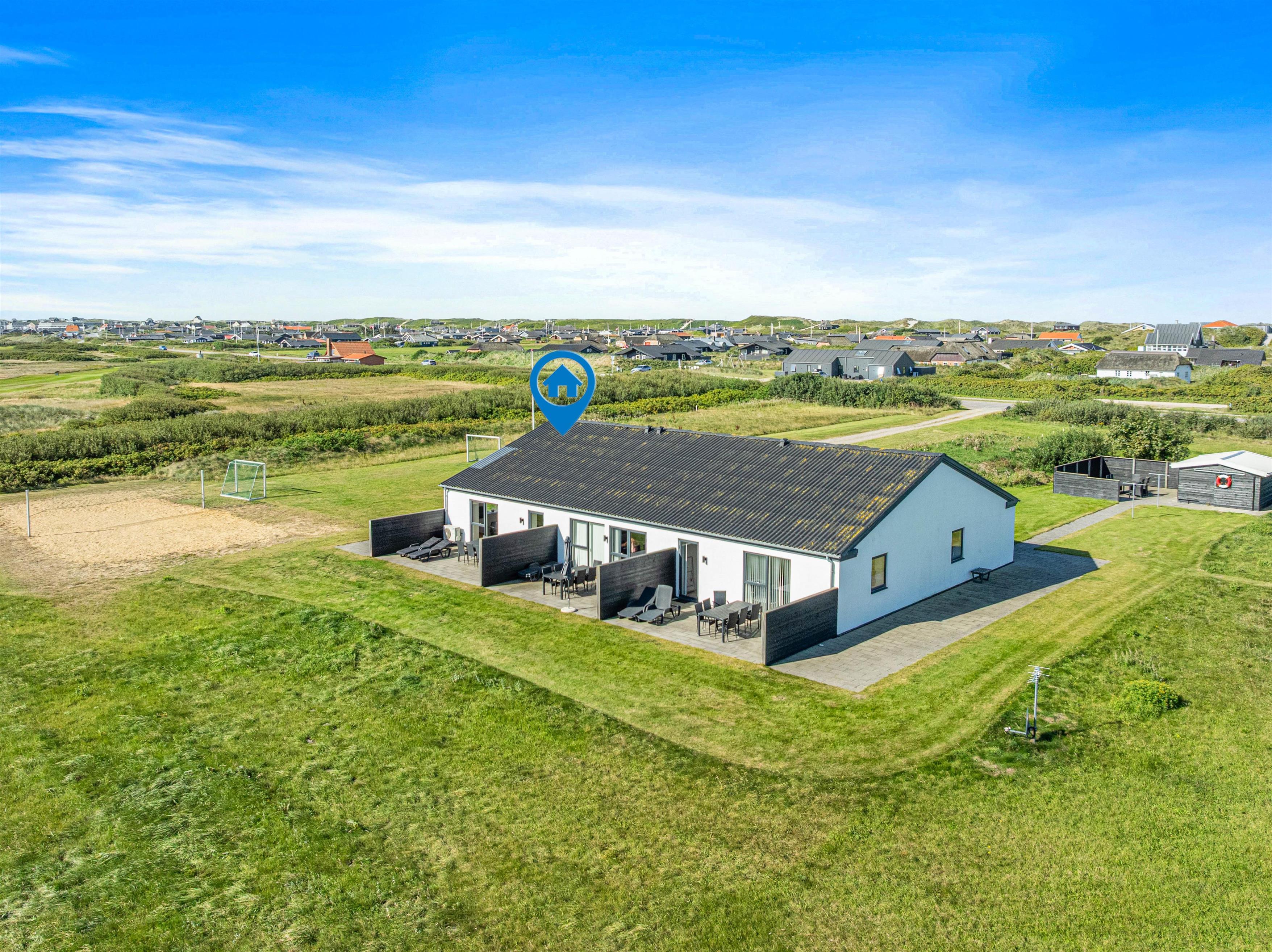 Få minutters kørsel fra Søndervigs bymidte og det brusende Vesterhav ligger denne ferielejlighed med plads til 6 personer. Den moderne og kvalitetsbevidste indretning indeholder gode praktiske faciliteter som opvaskemaskine og vaskemaskine, og udearealet byder både på en afskærmet terrasse og et stort fællesareal med fodboldbane og volleyballbane, som deles med de to lejligheder ved siden af.