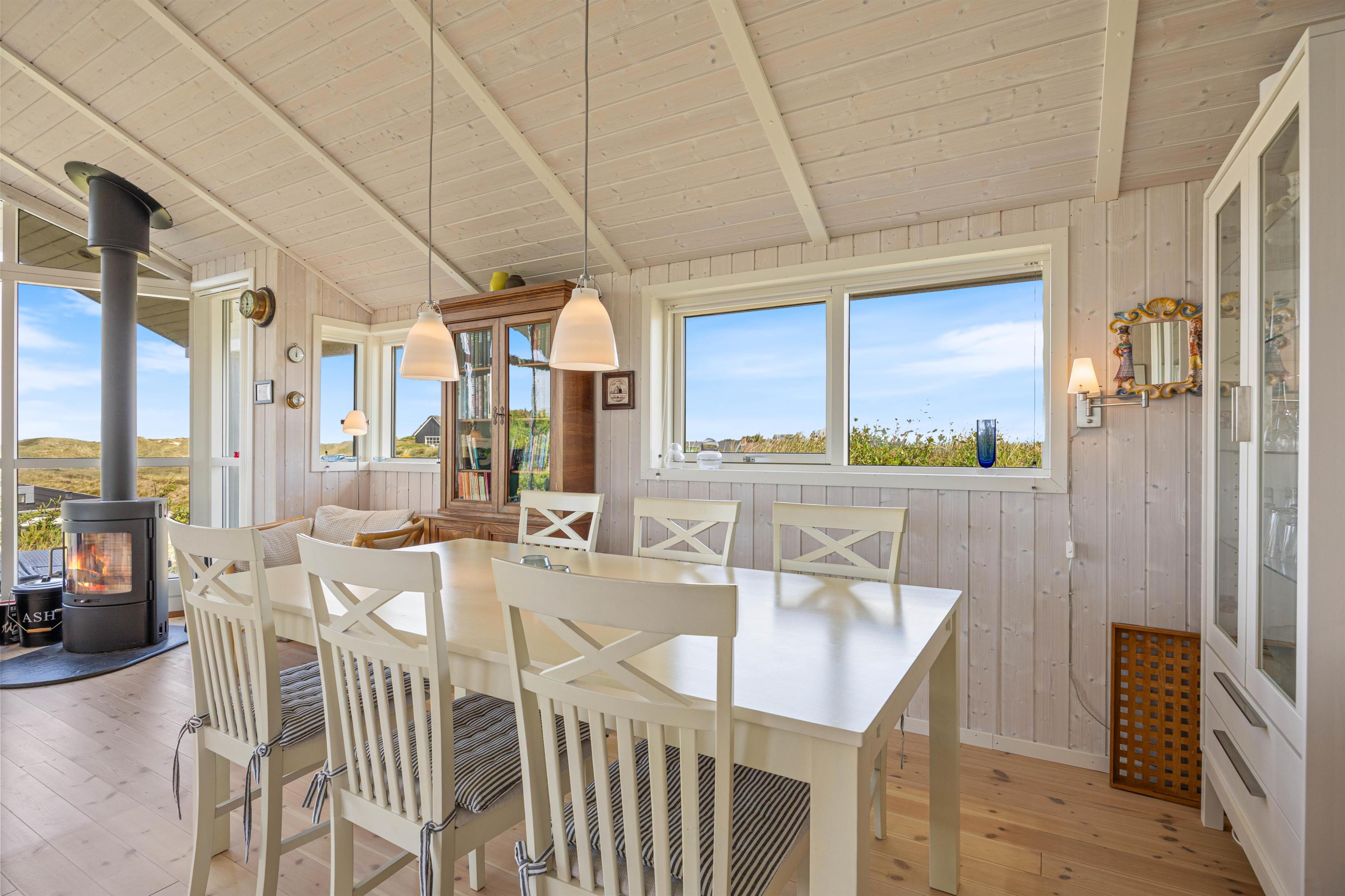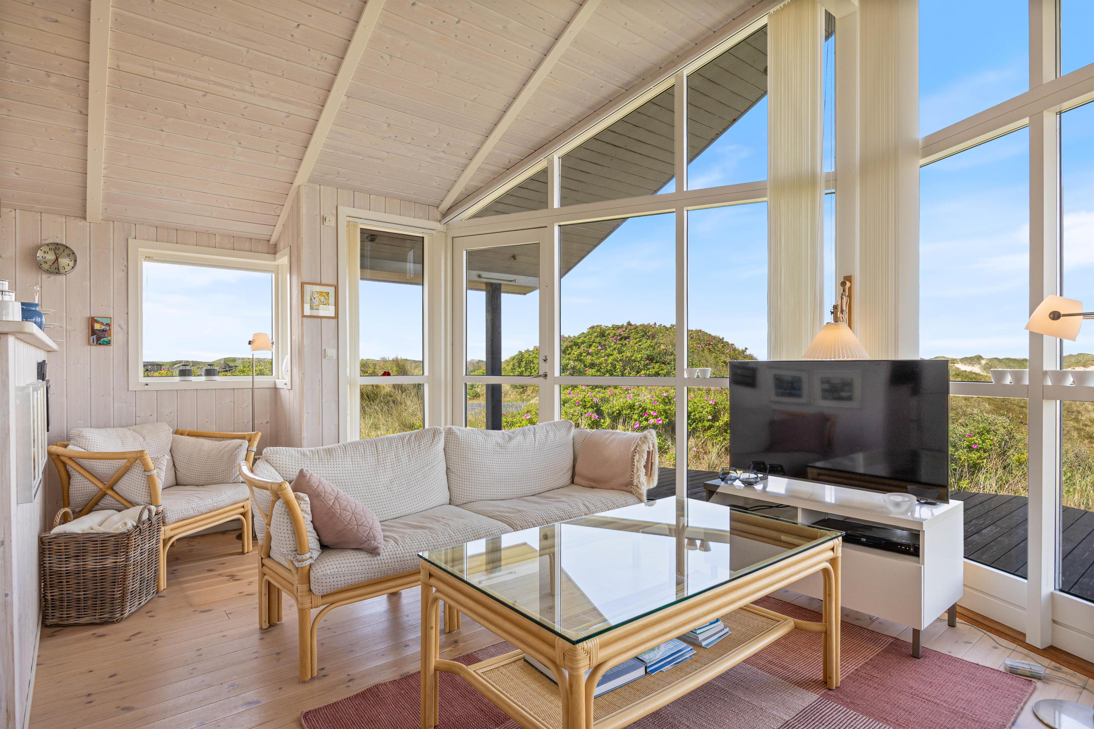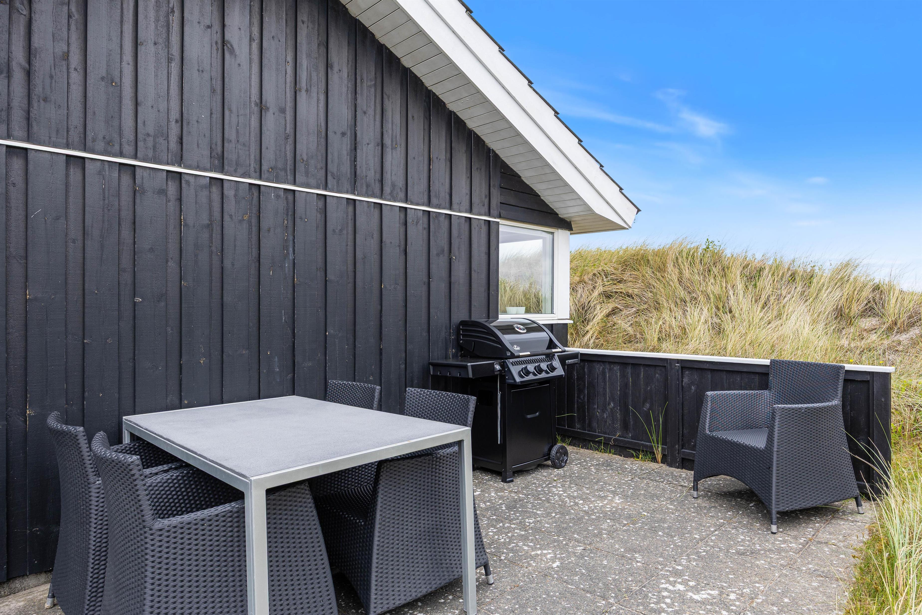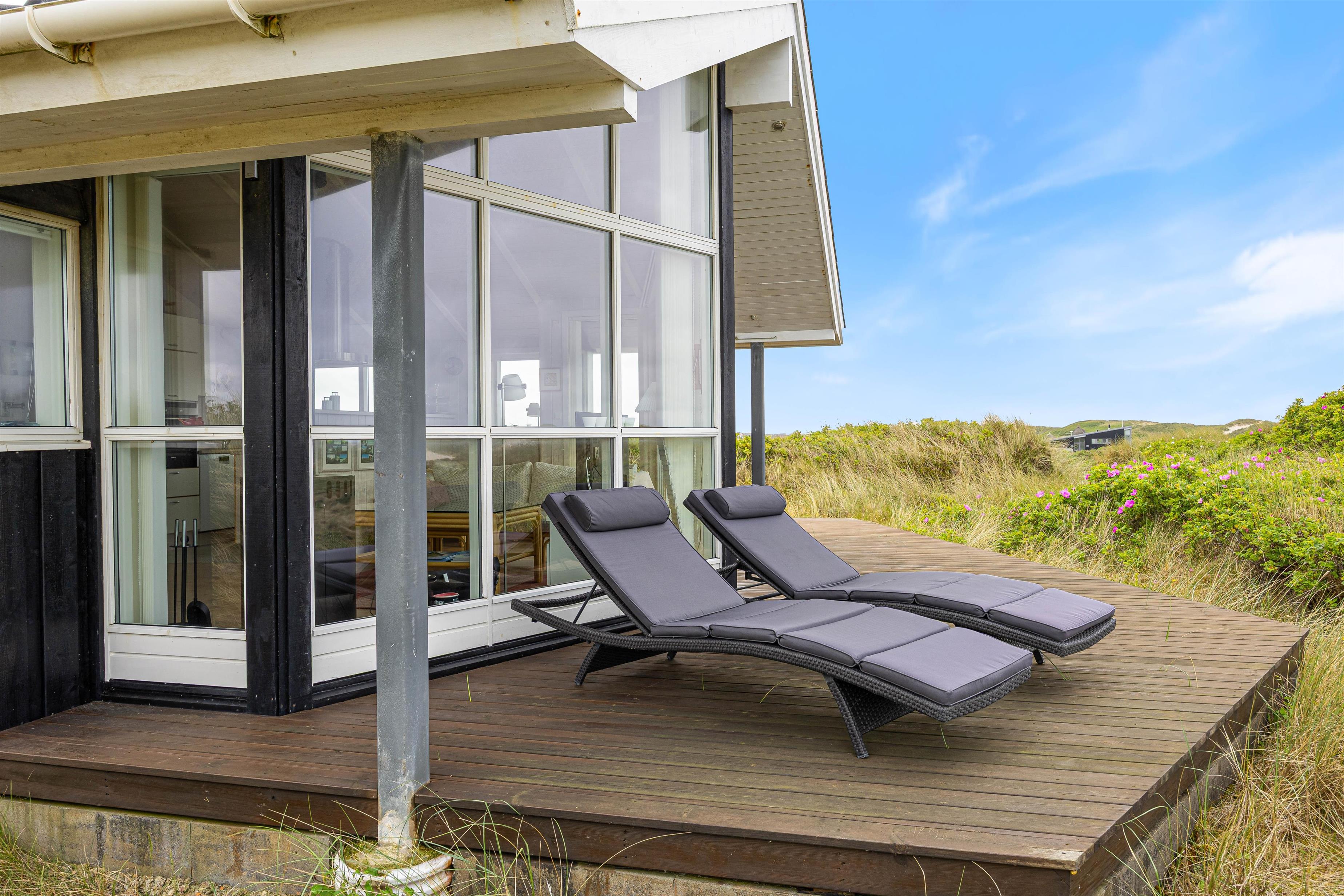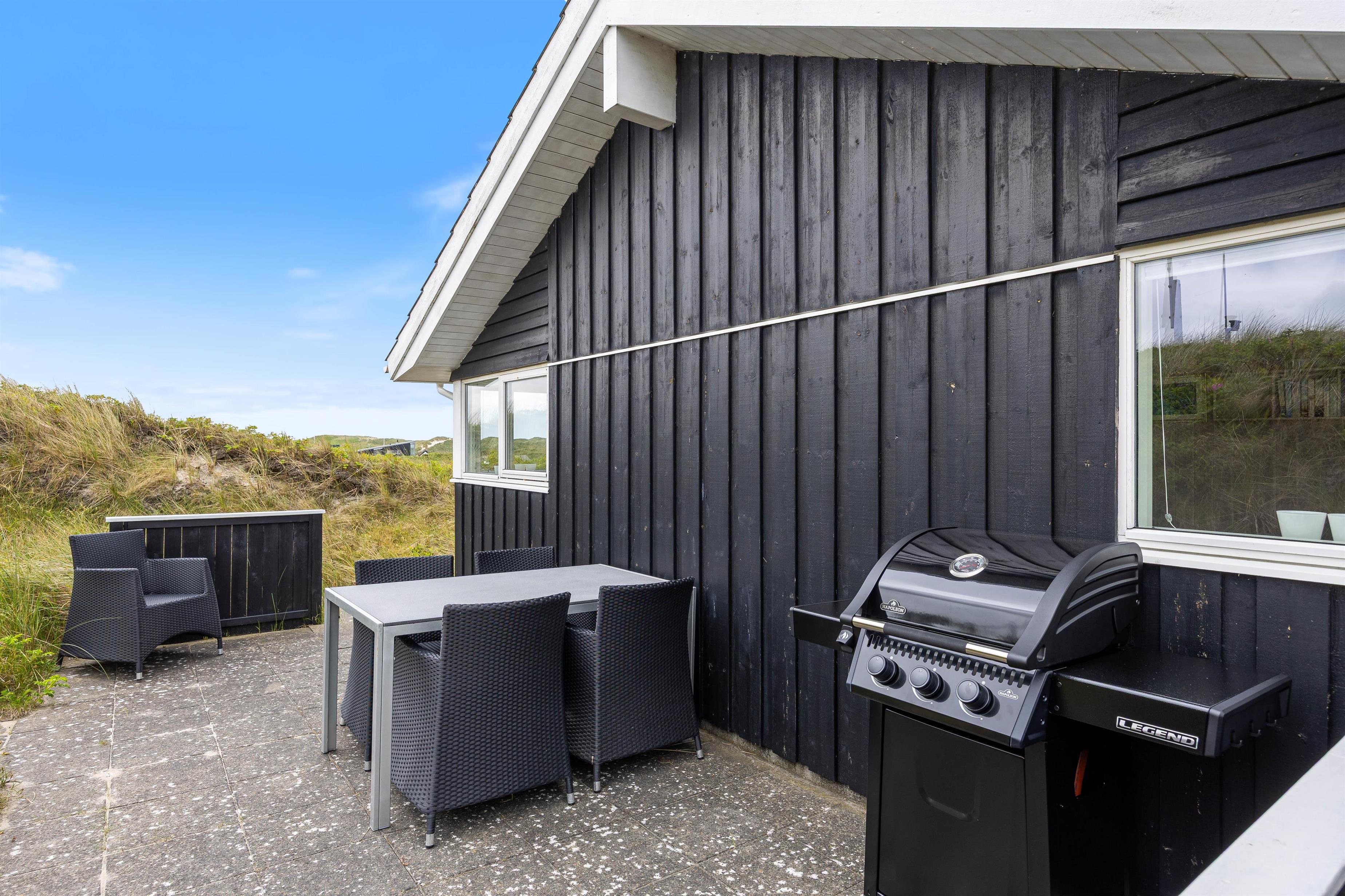 Sommerhusets uderum er også ideelle til afslapning, hvor I kan nyde en grillmiddag og spise ude på de lune aftener. Med havemøbler til rådighed kan hele familien samles omkring måltiderne udenfor. Sommerhuset er omgivet af en betagende klitgrund, som giver en følelse af privatliv og tilknytning til naturen. Takket være sommerhusets korte afstand til havet vil I også kunne nyde Vesterhavets brusen som baggrundslyd.
