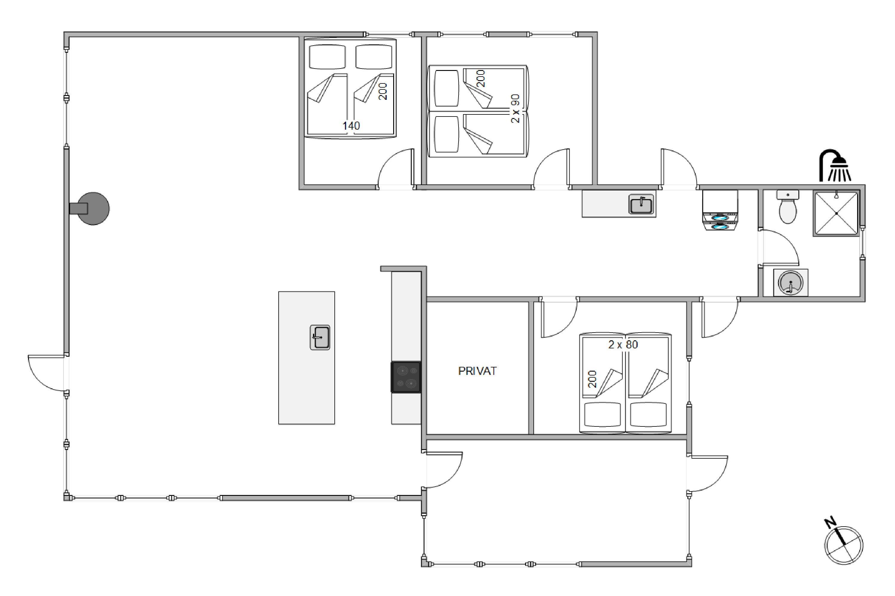 Med kun 250 meter til vandet er der rig mulighed for en dukkert i det dejlige Vesterhav, og efter en dejlig dag med sol og havvand på stranden kan du skylle dig under husets udebruser, inden aftenen fortsætter med grill og hygge på terrassen.