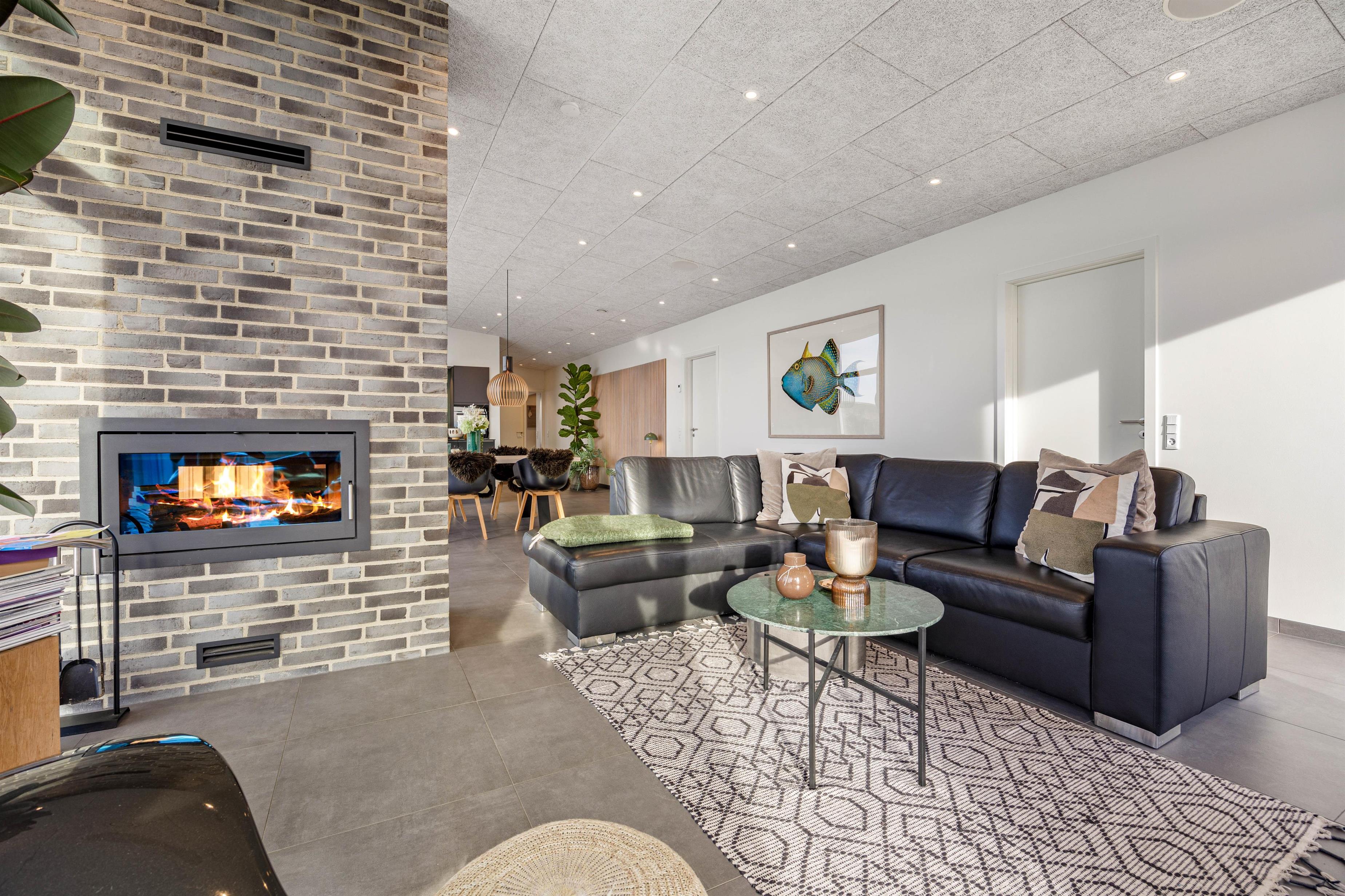 I køkken-alrummet kan I samles om madlavningen, nyde hyggelige måltider eller slappe af i sofaen foran den stemningsfulde brændeovn, som spreder varme og hygge på kølige aftener. Som et energieffektivt alternativ er huset desuden udstyret med en luft-til-luft varmepumpe, der sikrer en behagelig og stabil temperatur året rundt.
