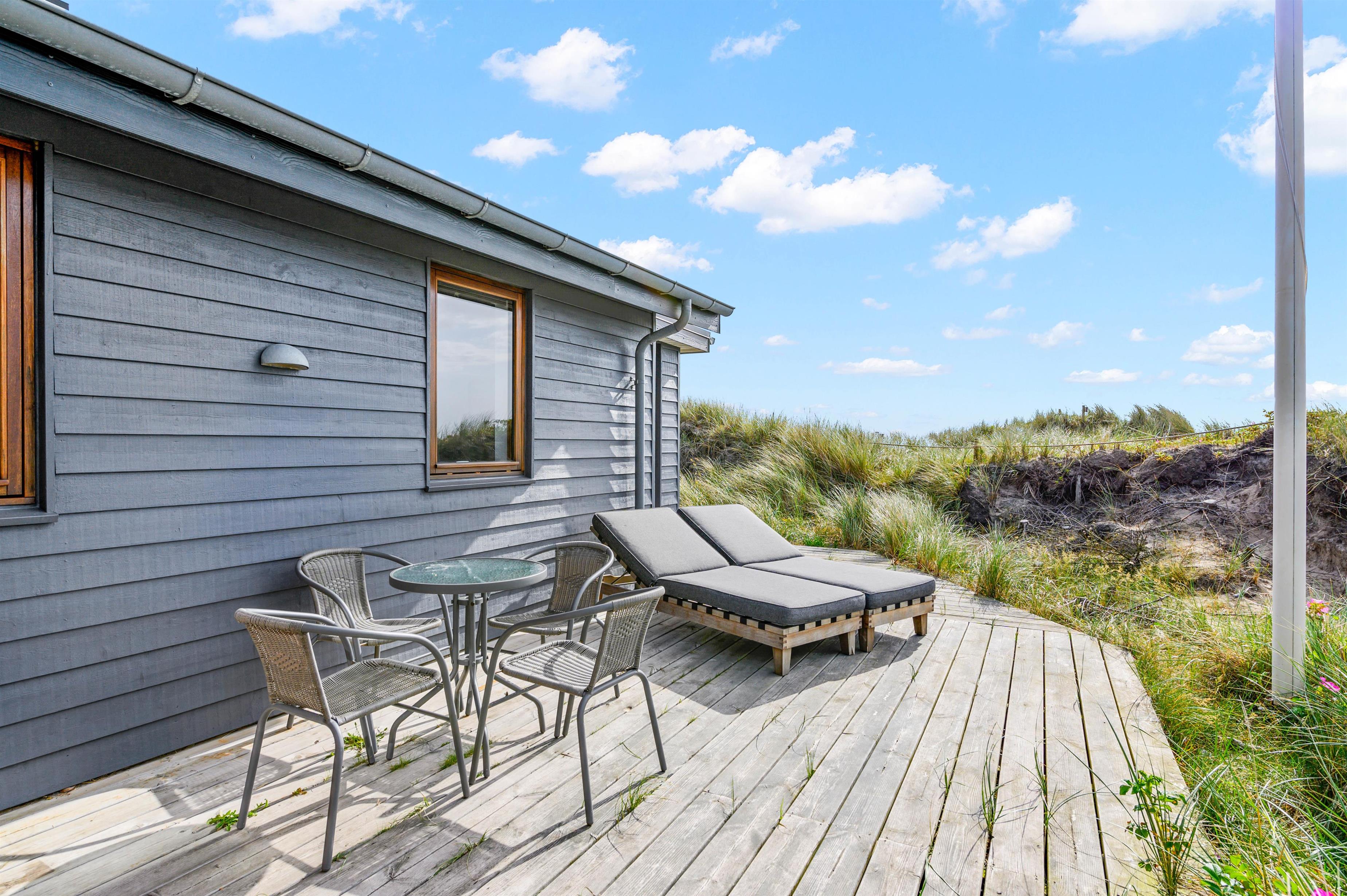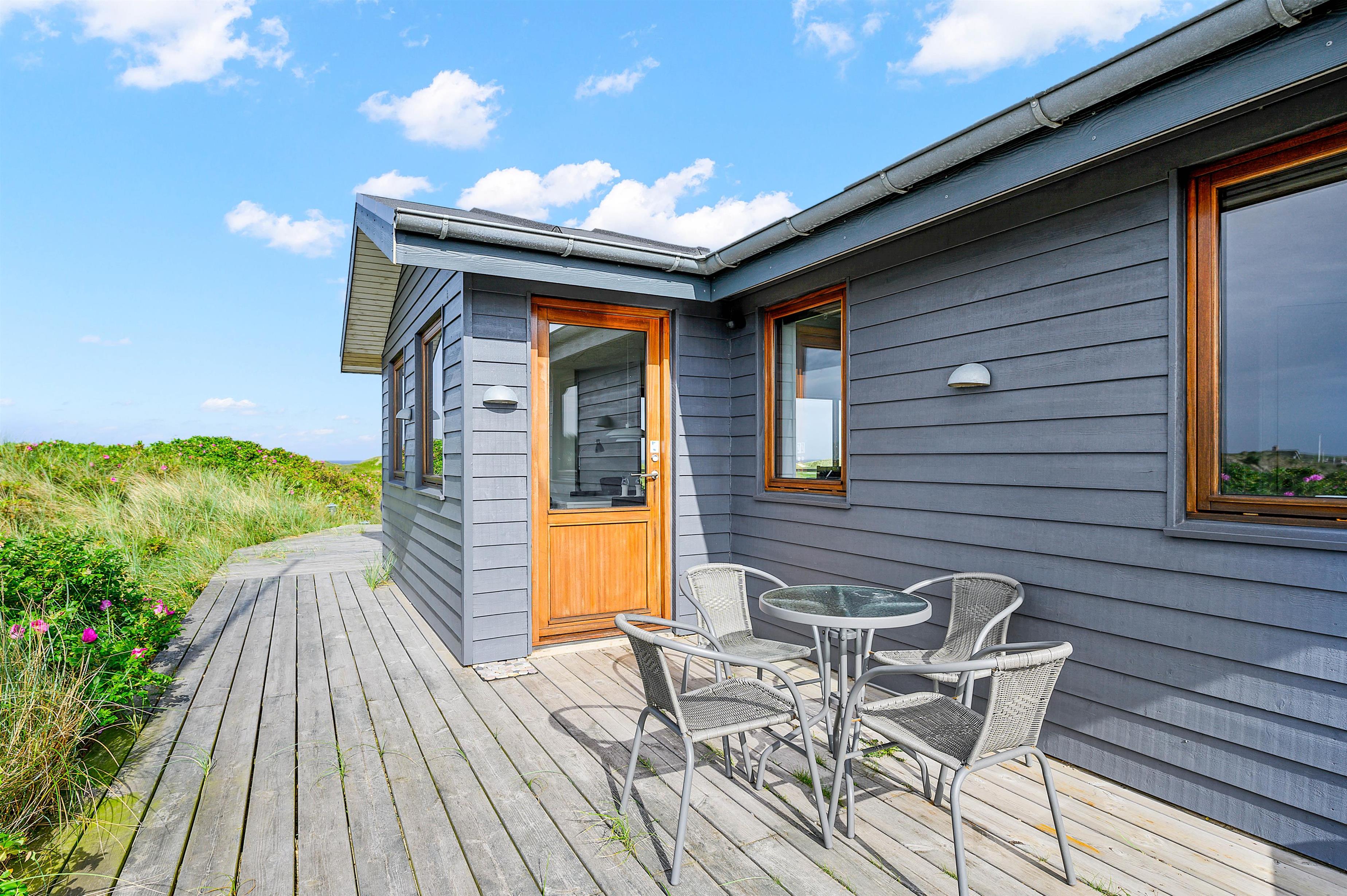 Hvad end I sidder i sofaen, står og laver mad i det funktionelle køkken, eller sidder og nyder maden ved spisebordet, har I hele tiden en betagende udsigt over Vesterhavet gennem stuens store panoramavinduer. Herfra er der udgang til husets store træterrasse hvor udsigten er intet mindre end fænomenal. Fordi at huset ligger så højt, kan I her i huset også nyde masser af privatliv, og ikke føle jer overvåget af nogen som helst.