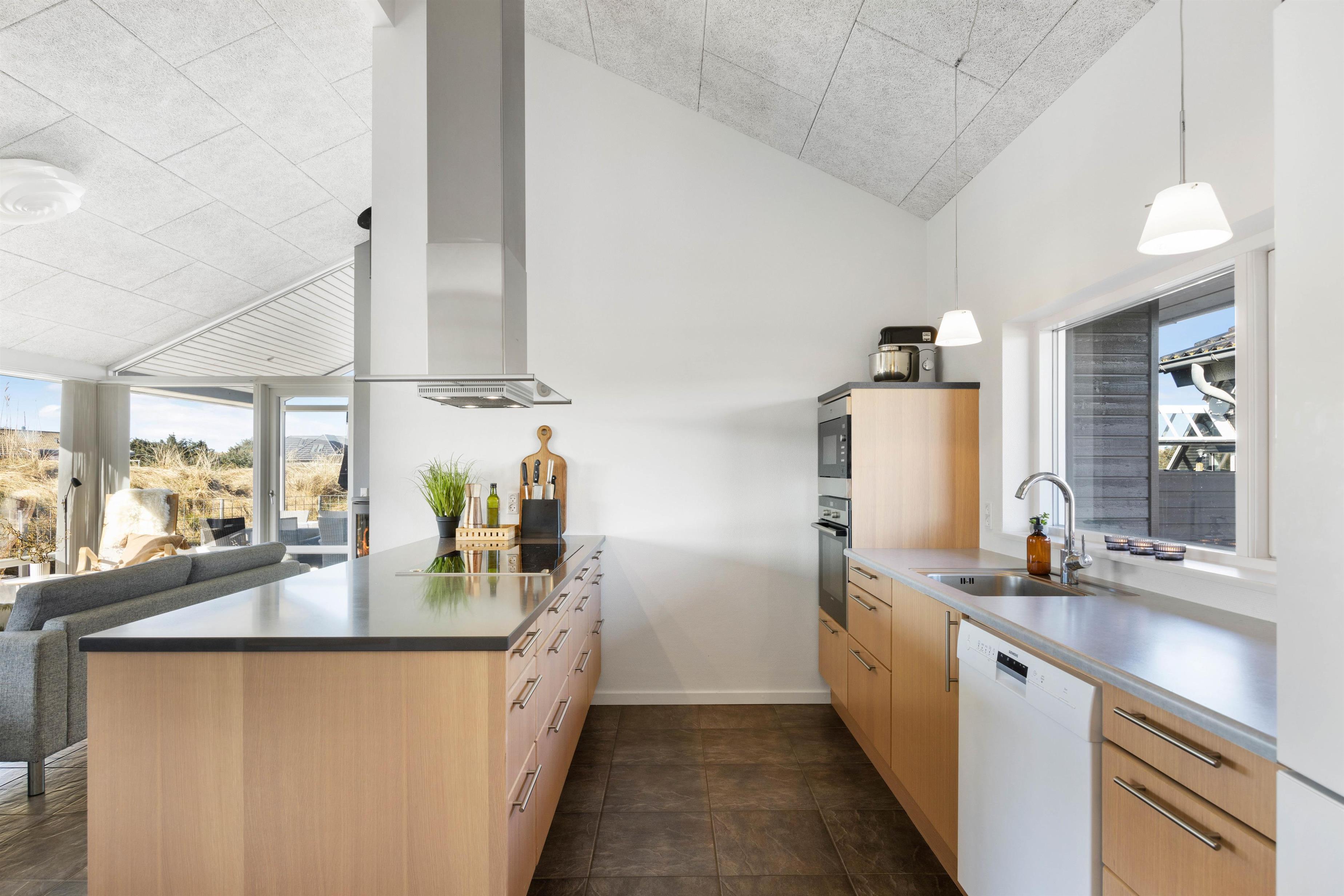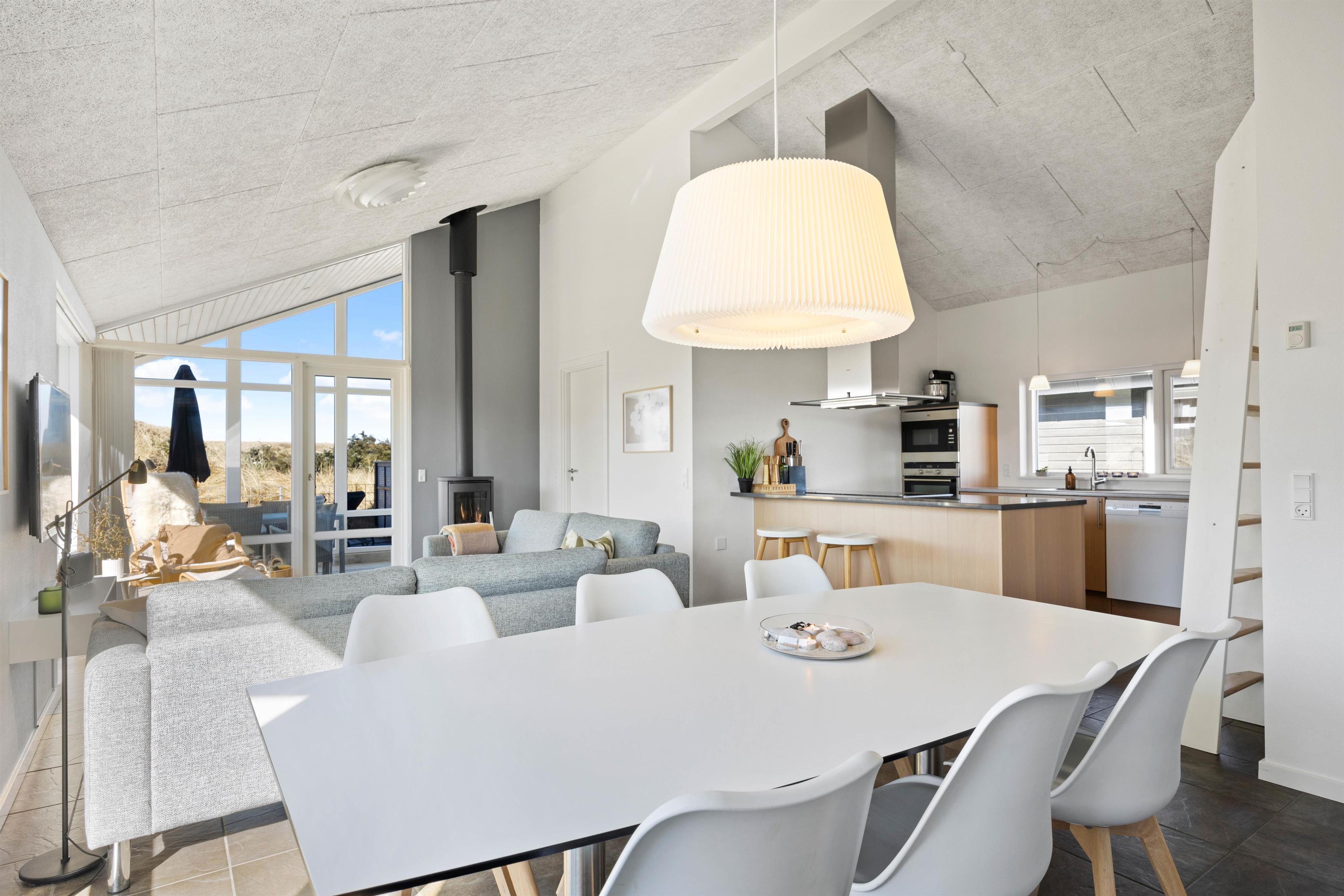Mågedalen 49A er udstyret med alle moderne faciliteter, såsom chromecast, brændeovn og fladskærms-tv, der giver mulighed for underholdning og afslapning efter en lang dag med aktiviteter. Køkkenalrummet er centralt placeret i sommerhuset og har en stilfuld køkkenø, der giver mulighed for at lave mad og samtidig være en del af samtalen med familien eller vennerne.