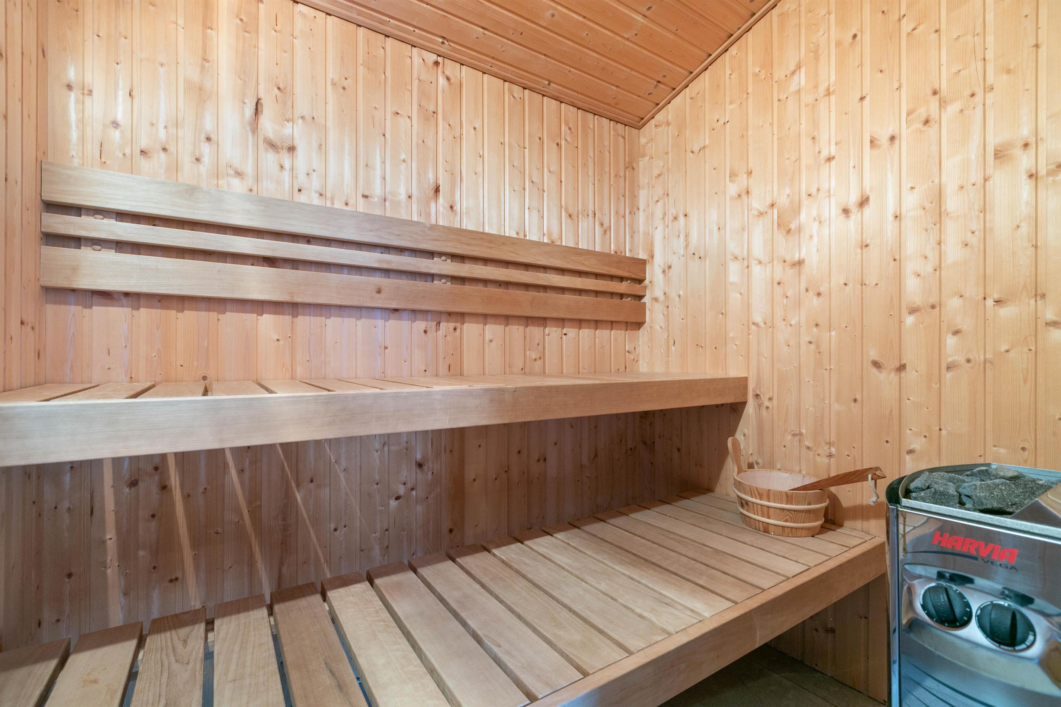 Et af de indendørs højdepunkter i sommerhuset er det store badeværelse. Her er der både gulvvarme, dobbeltbruser og adgang til en skøn sauna, hvor I kan nyde afslappende stunder i den dejlige varme. En tur i sauna er også perfekt efter en frisk gåtur langs stranden eller en dukkert i havet, så I kan få varmen igen.
