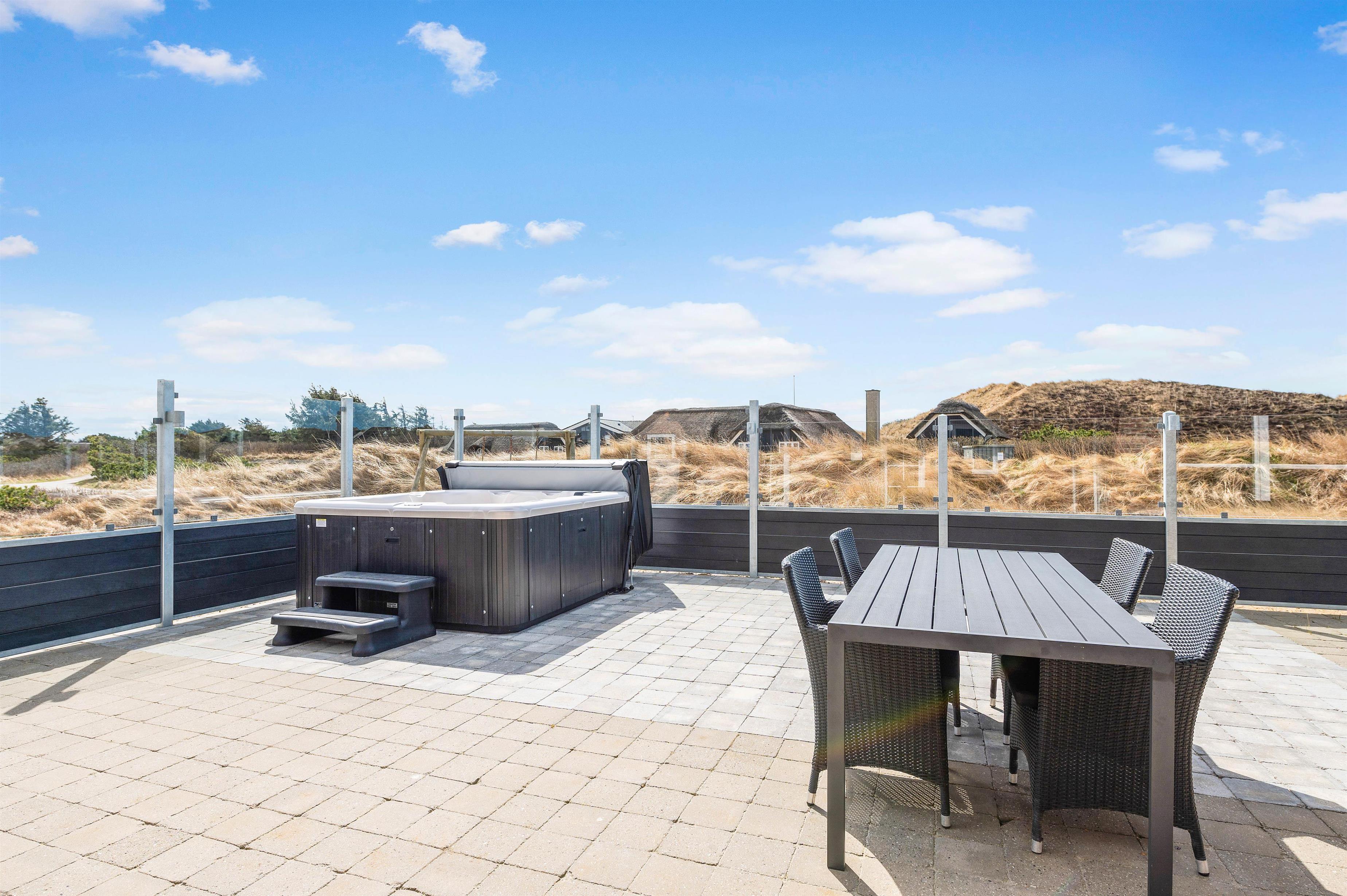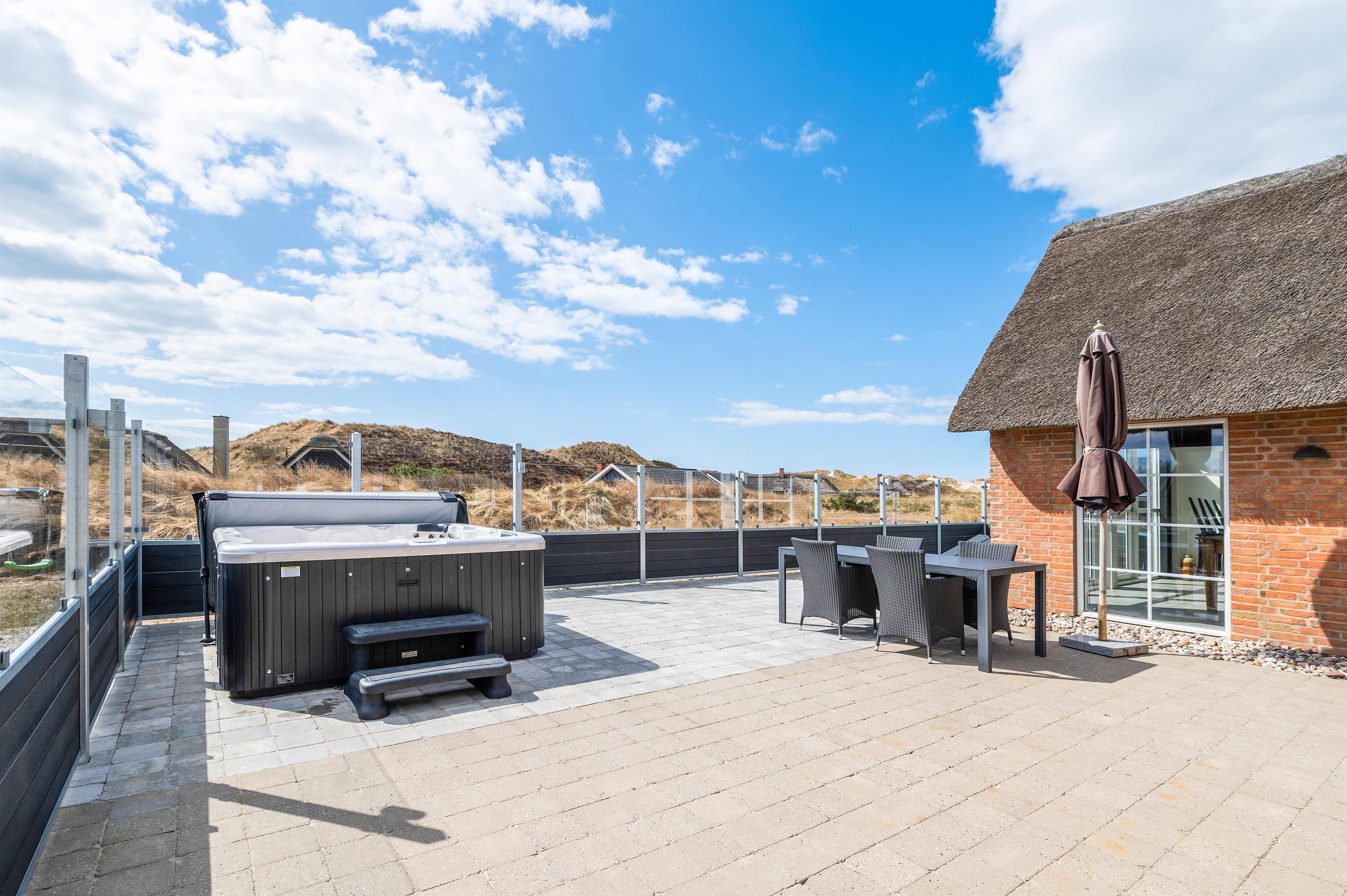 Sommerhuset har en skøn, stor terrasse, hvor I kan finde jer godt til rette i havemøbler og liggestole på de solrige feriedage. På terrassen står der også en lækker udespa, som I kan læne jer godt tilbage i og slappe af under åben himmel med lyden af brændingen i baggrunden. Fra terrassen har I også en skøn udsigt over klitlandskabet.