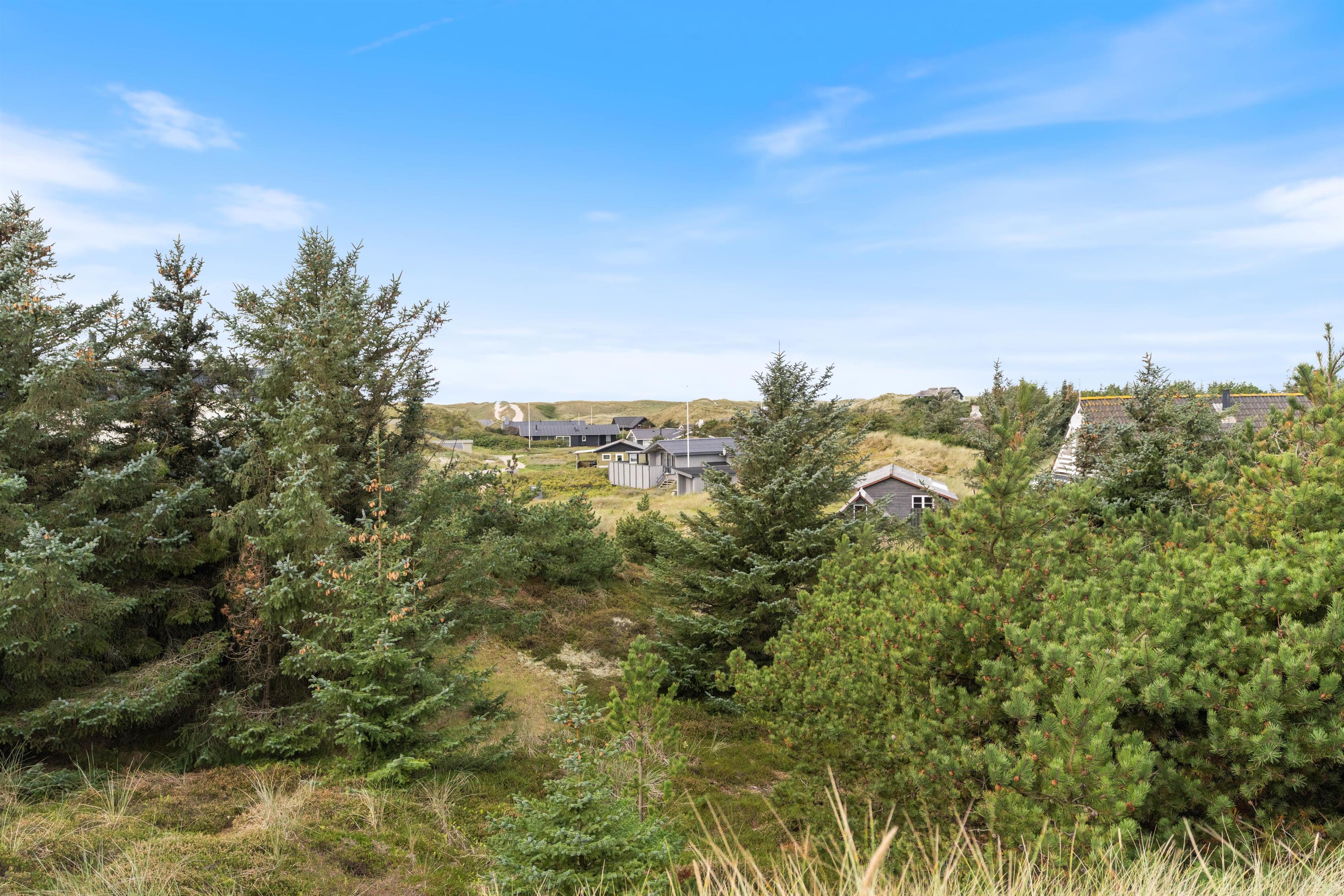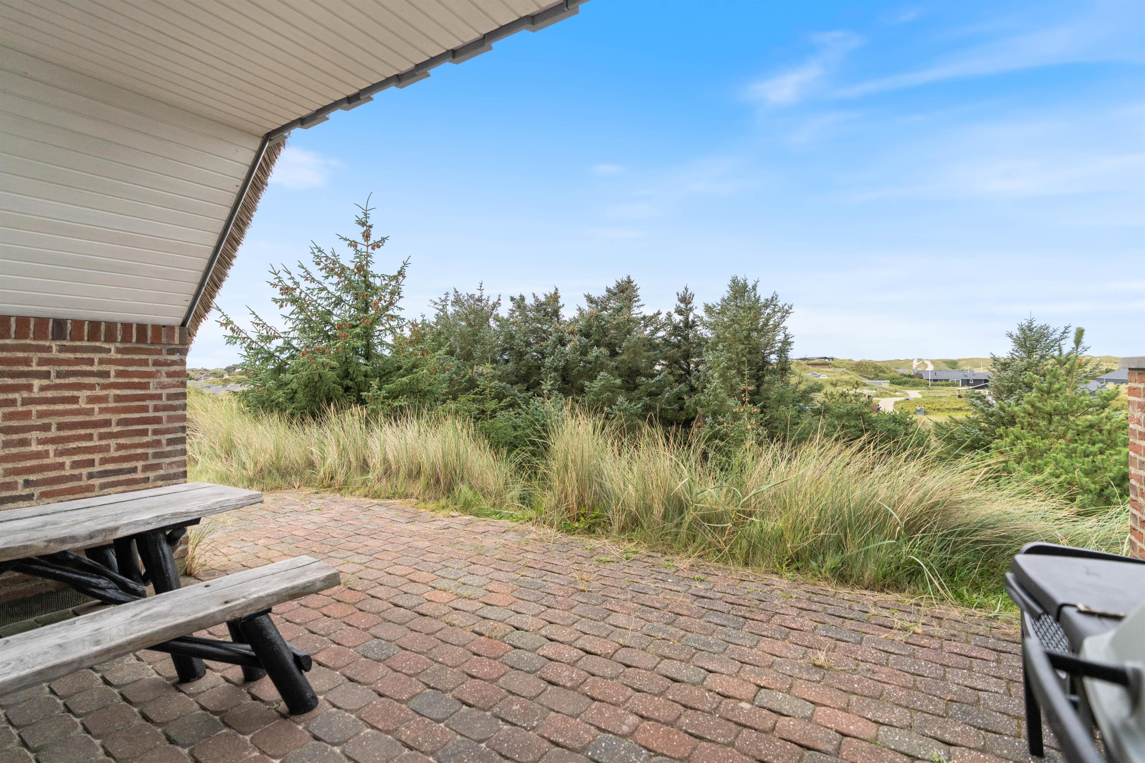 Sommerhuset er beliggende i rolige omgivelser på en lille stikvej. Herfra kan I nyde den flotte udsigt til det omkringliggende hede- og klitlandskab, der er som ren balsam for sjælen. I kan udforske det kuperede terræn på gåben eller cykel ad de gode stisystemer, der er kendetegnede for området omkring Houvig.