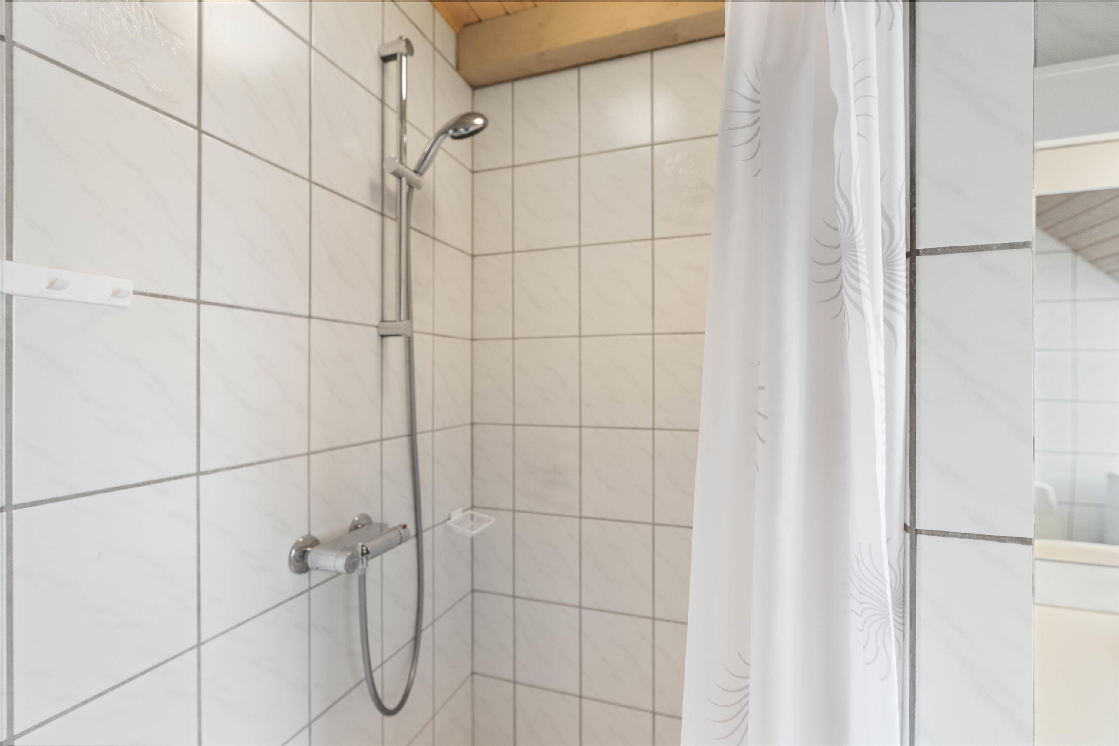 I huset finder I et lyst og lækkert badeværelse med dobbelt håndvask, vaskemaskine, bruseniche og gulvvarme. Det er også her husets sauna gemmer sig, og den er især velgørende på de kolde dage ved vandet. Der er i alt 3 gode værelser i sommerhuset i Houvig. Det ene værelse har dobbeltseng, mens de 2 andre værelser begge er udstyret med 2 enkeltsenge hver.