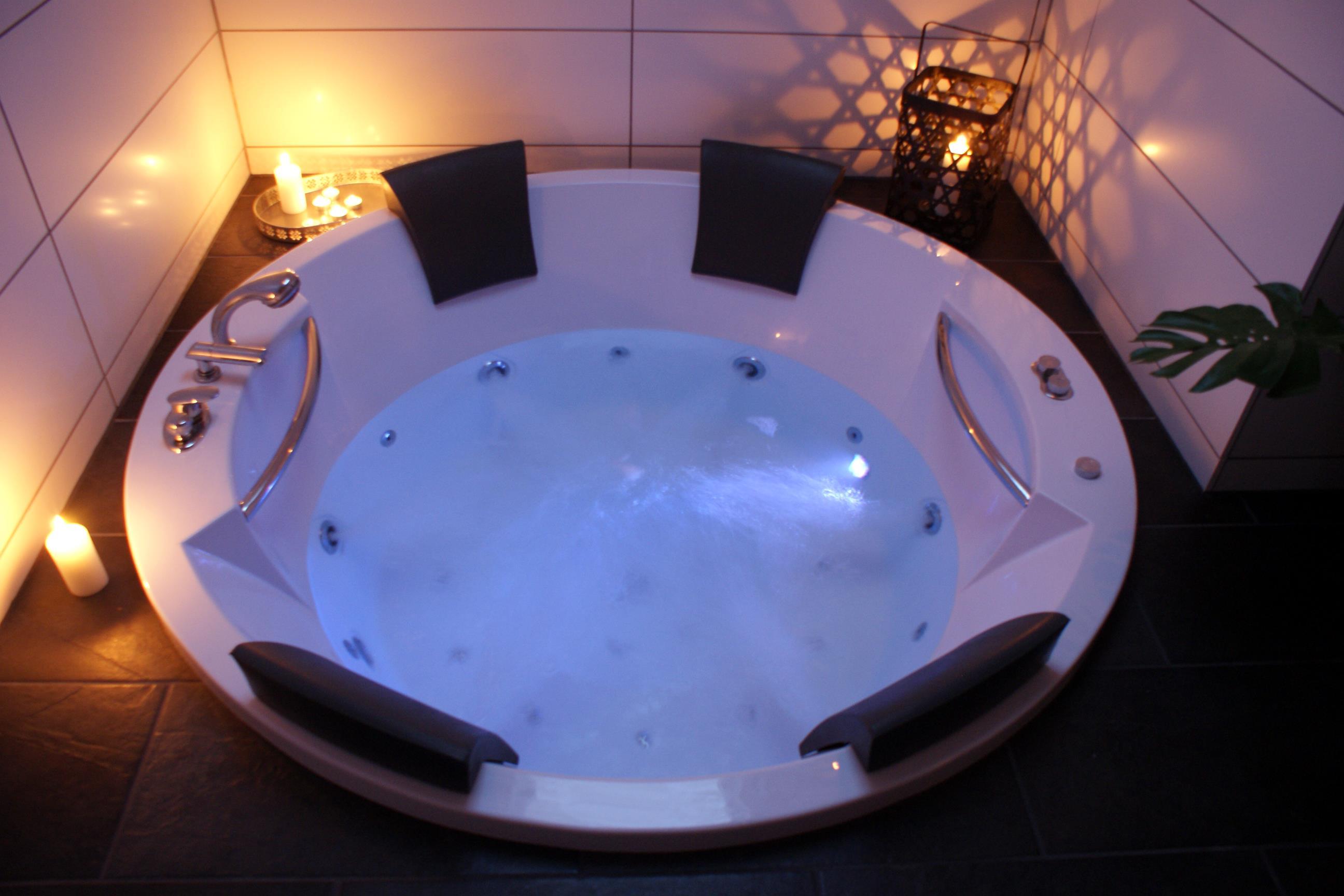 Wellness-område med nedsænket spa, sauna og musikanlæg