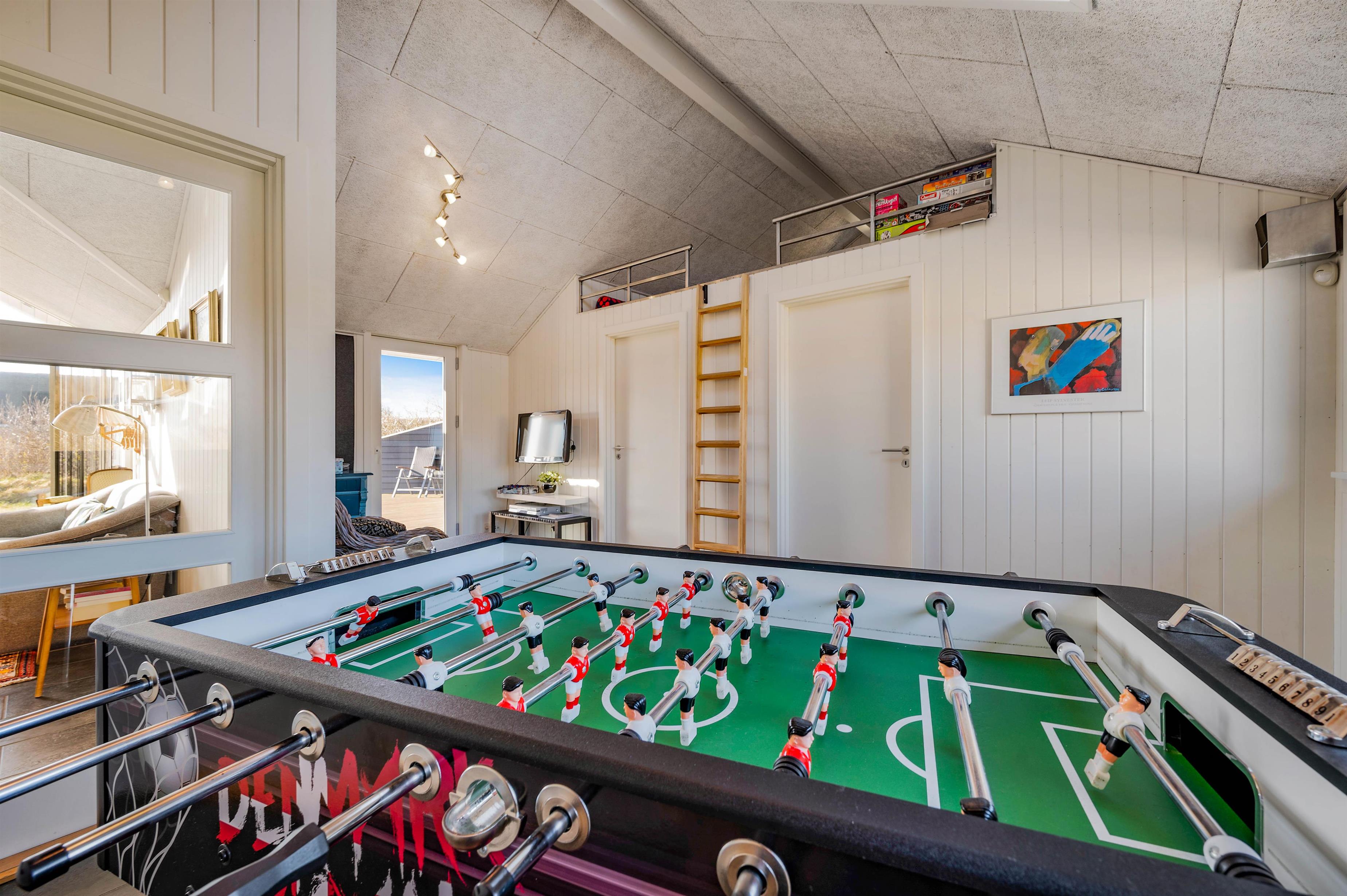 Huset råder over et skønt aktivitetsrum, der uden tvivl vil vække begejstring hos børn i alle aldre. Dette rum er virkelig garant for, at I aldrig kommer til at kede jer på ferien. Her er der blandt andet bordfodbold og dart at forlyste sig med. Rummet er indrettet med et lille gamingområde med fladskærms-tv og sækkestole, hvor I kan give jer i kast med at spille spil.