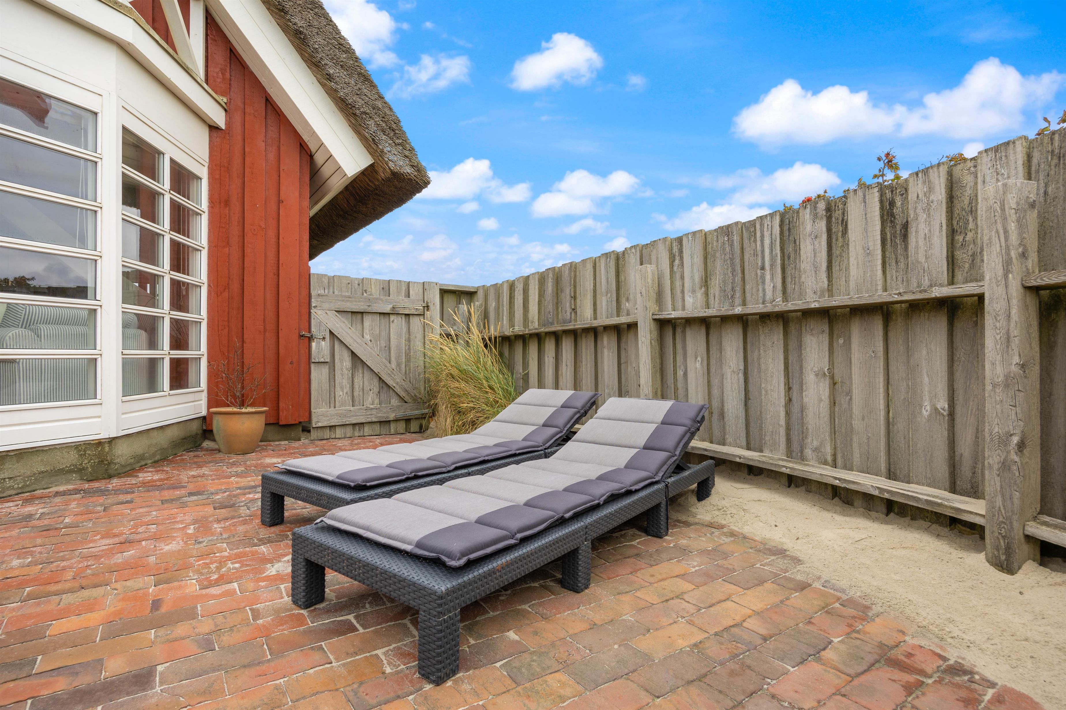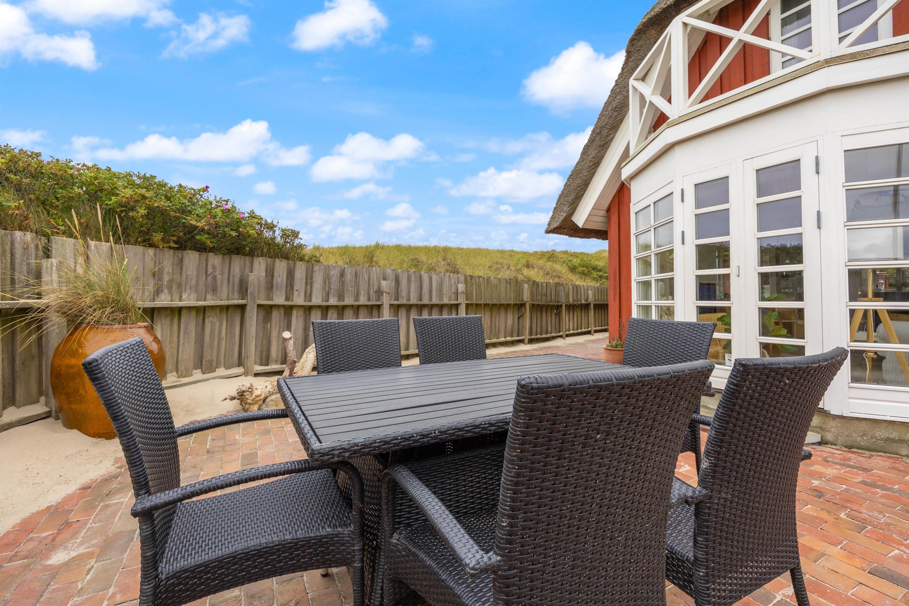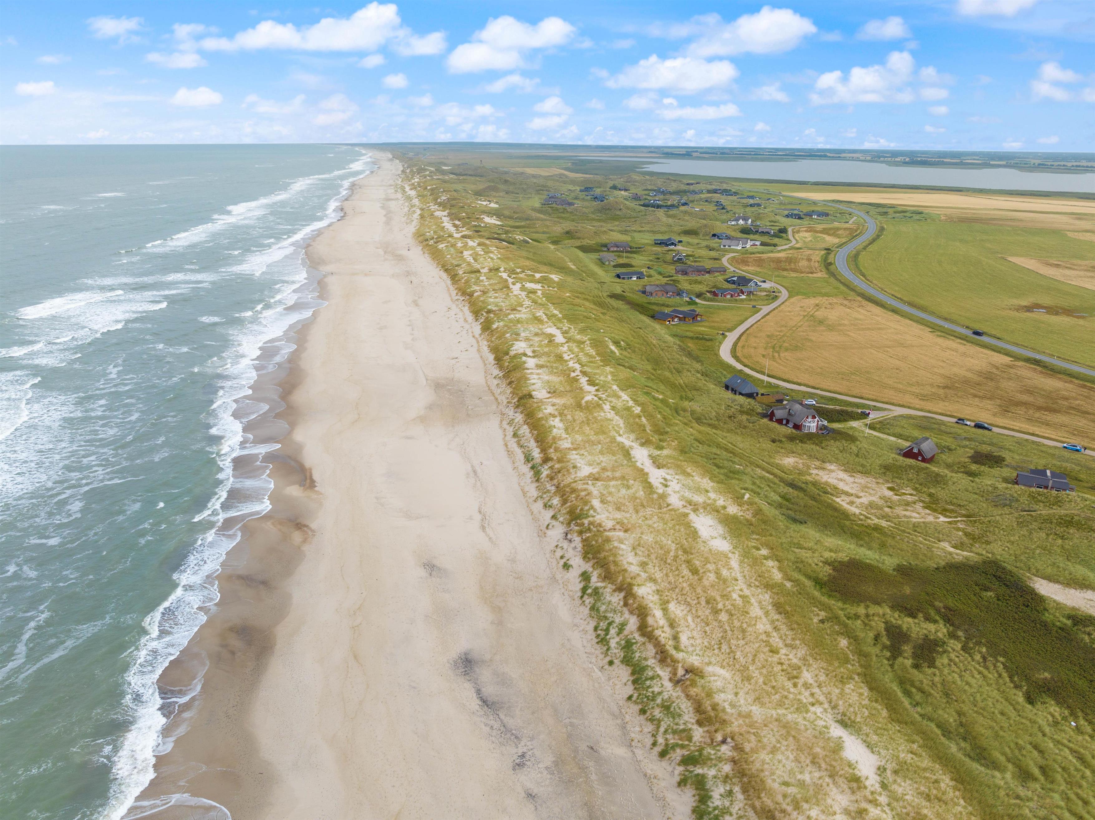 På den lukkede terrasse kan du nyde solen med en spændende bog eller det smukke klitlandskab, der omgiver sommerhuset på Krogen 21. Lyt til havets brusen og smag den salte luft, for denne 4847 m2 store ejendom ligger direkte på stranden i Houvig. Lad dig opsluge og afstresse med al den tilsyneladende endeløse hvide sandstrand på de lange gåture eller mens du solbader.