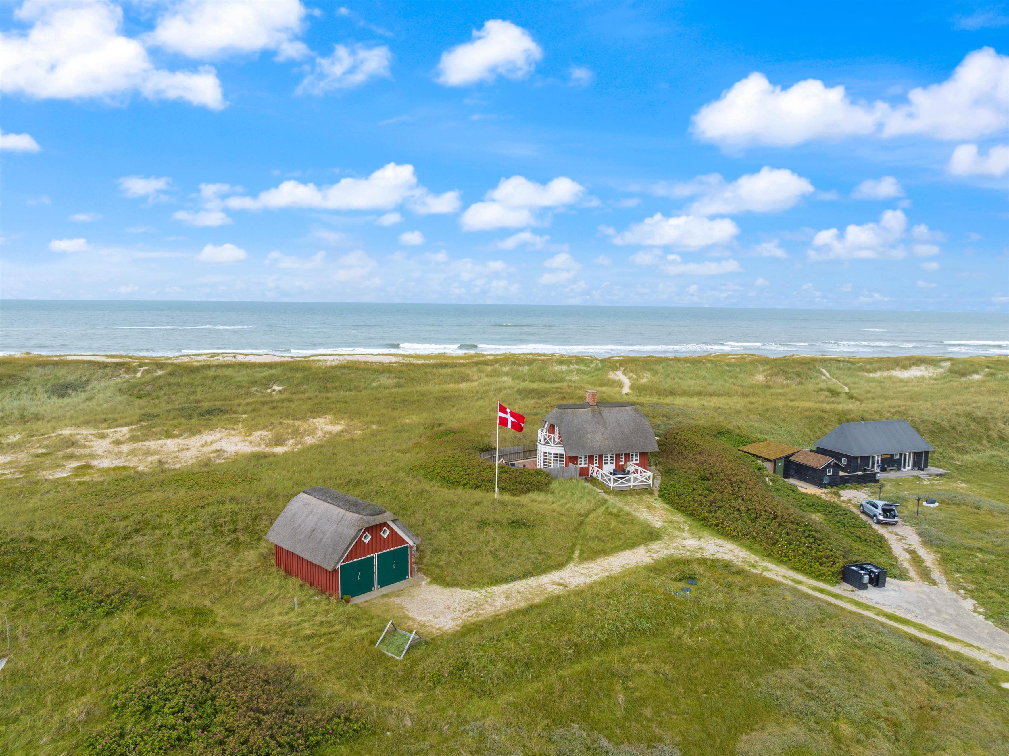 Du kan slappe af ved den lækre grill og afslutte aftenen med en lækker kold drink i de skønne havemøbler der er til rådighed. Du har en vidunderlig udsigt over klitlandskabet og naturen i Houvig. Feriehuset har en lukket træterrasse, samt en stenterrasse med mange små indbydende siddepladser.