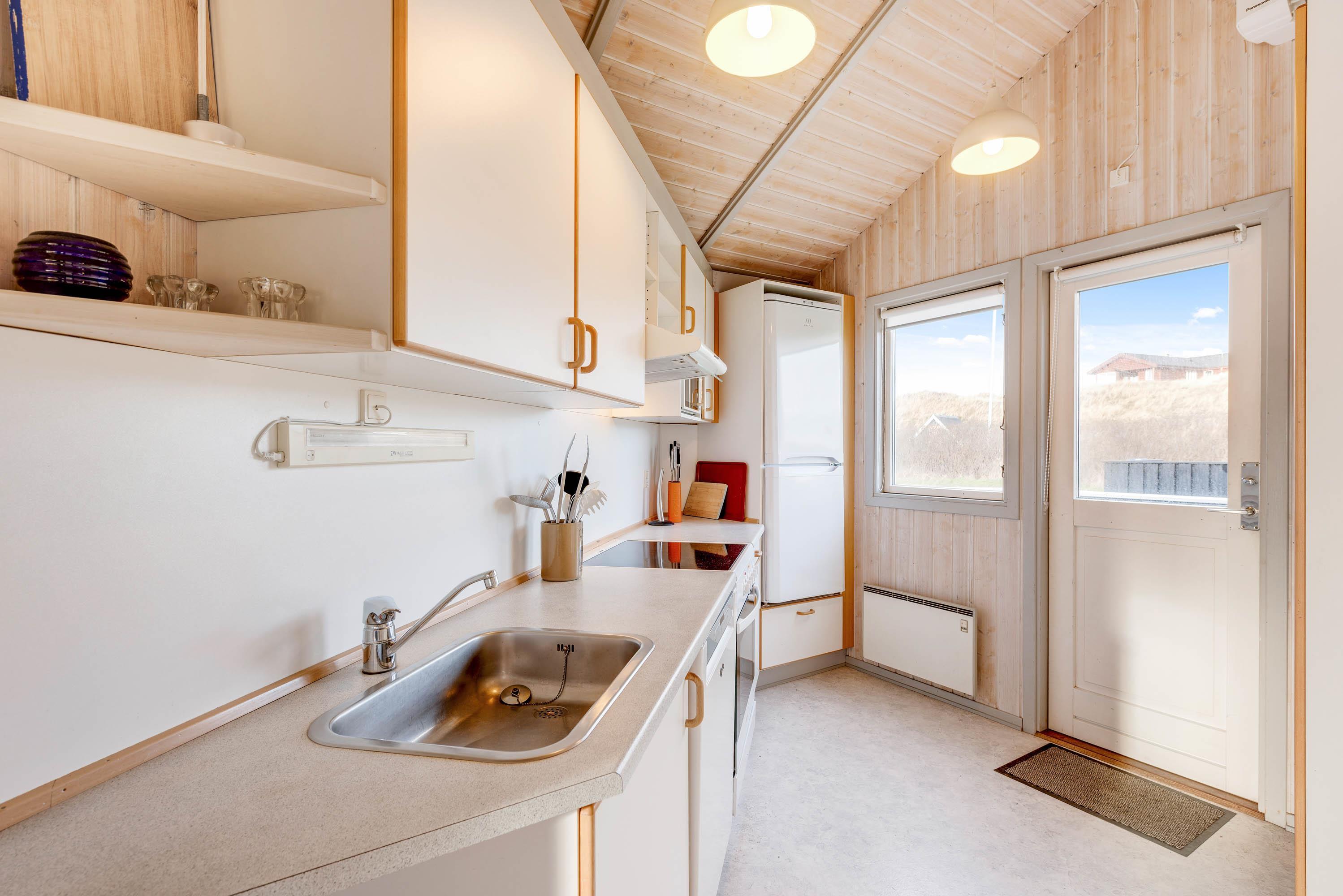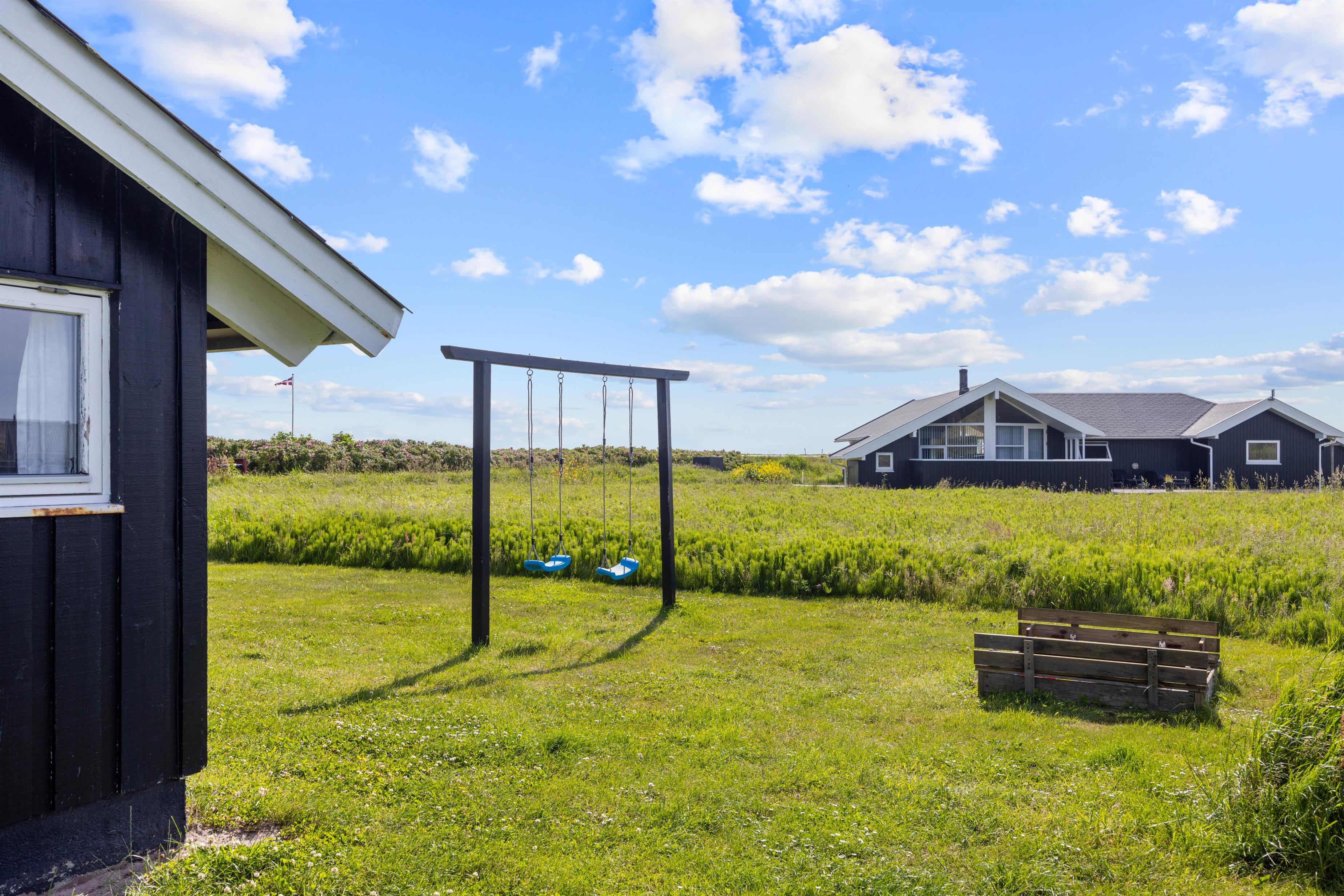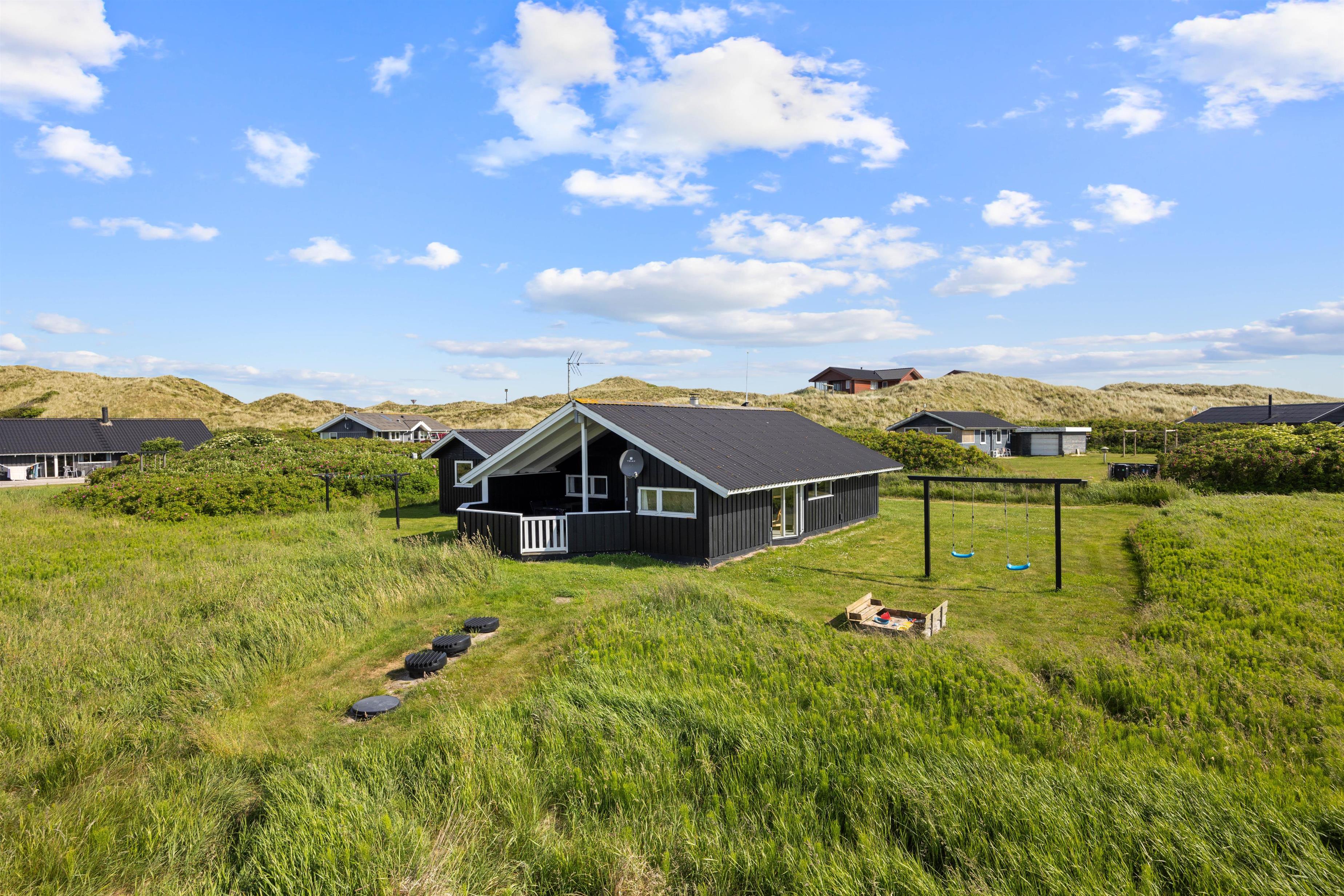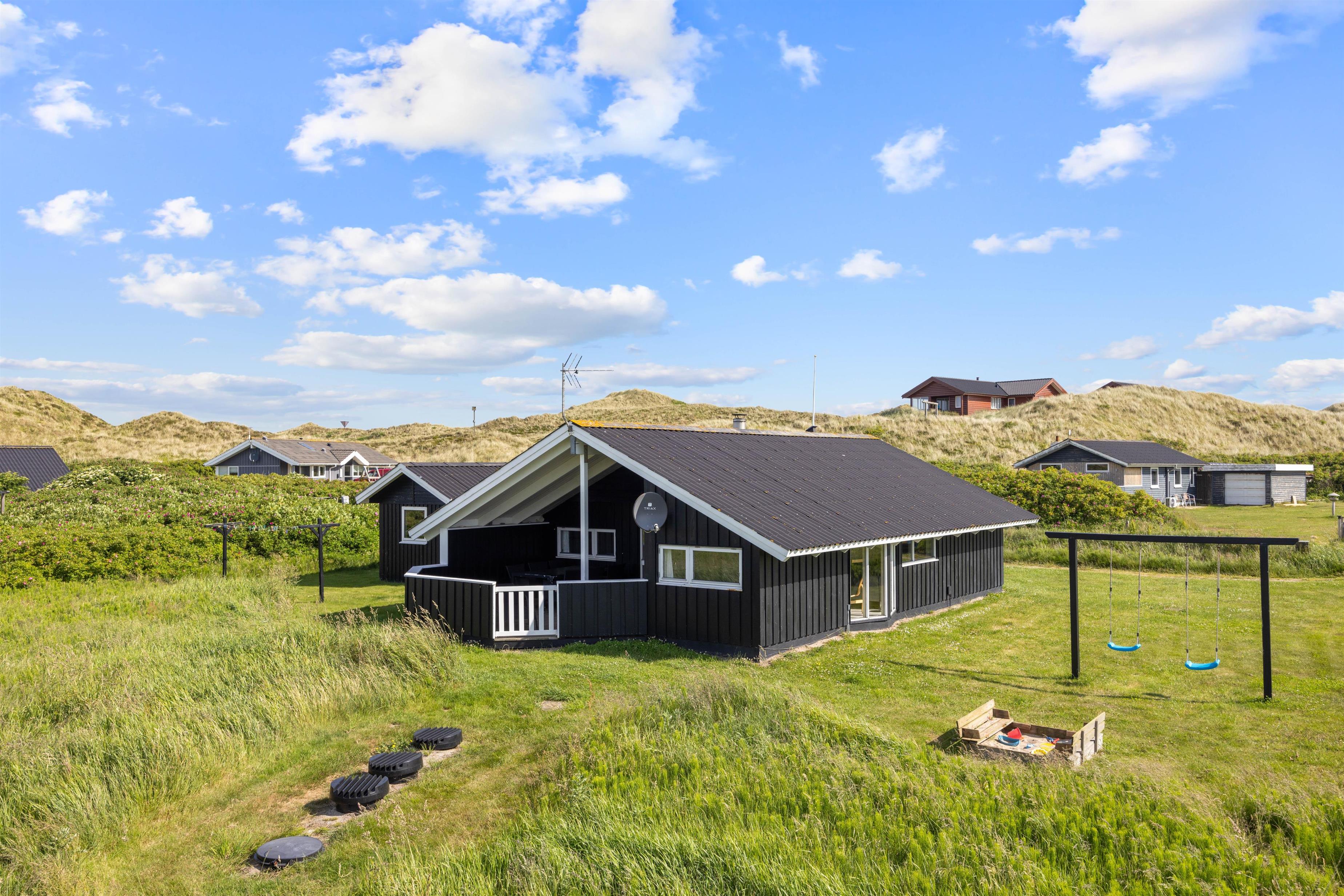 I dette fine feriehus har du en super skøn lukket terrasse – lad din hund nyde at gå frit ind og ud af huset, uden du behøver at bekymre dig om at den løber væk. Læn dig tilbage og nyd den friske luft fra Vesterhavet i huset havemøbler eller smid stegen på grillen alt imens du læser en god bog eller leger med hunden eller børnende på den skønne græsplæne. Fordi terrassen vender mod vest, er den helt perfekt til de lange sommeraftenener, hvor I fra terrassen kan betragte solen der stiller går ned bag klitterne.