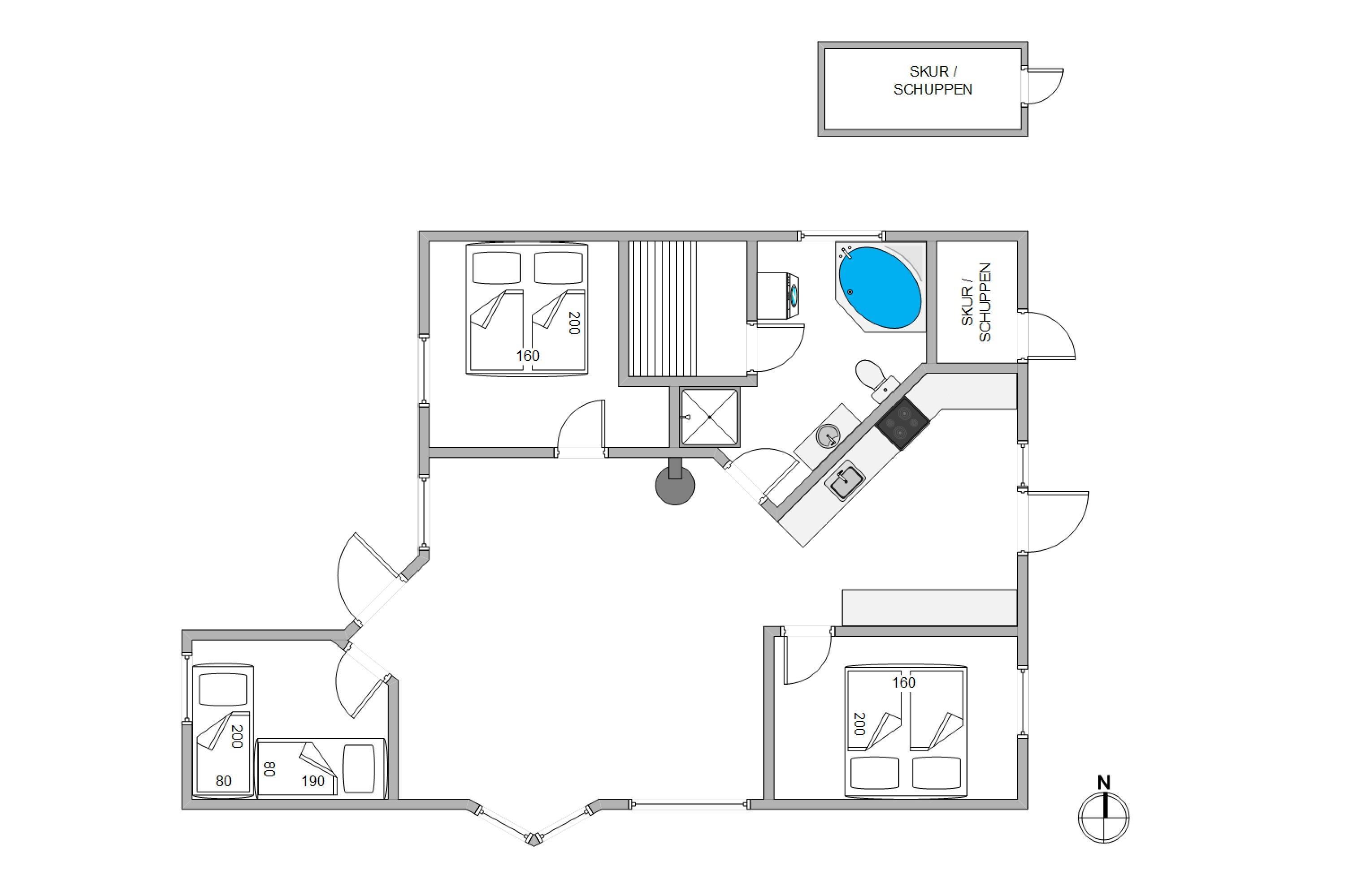 2. soverum/sengestørrelser1 x 80 x 200; 1 x 80 x 190