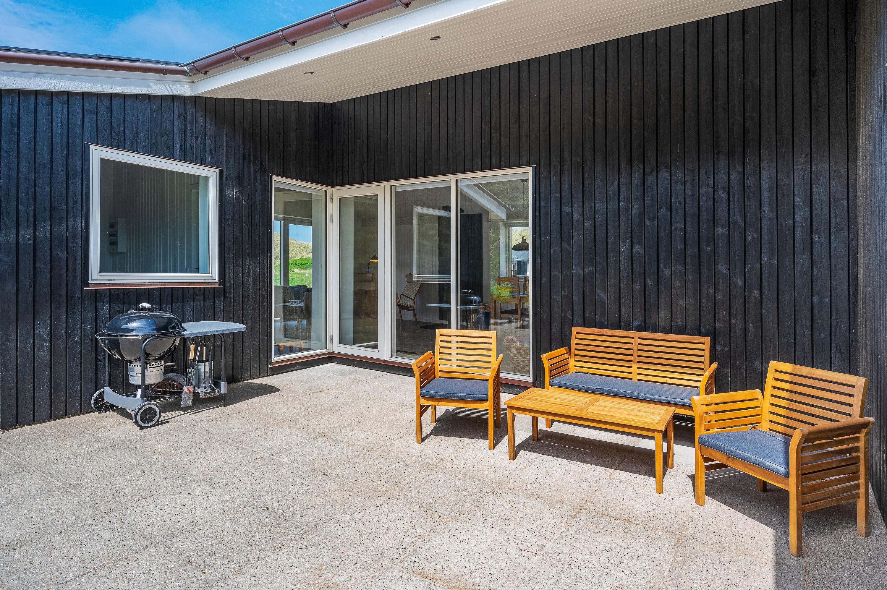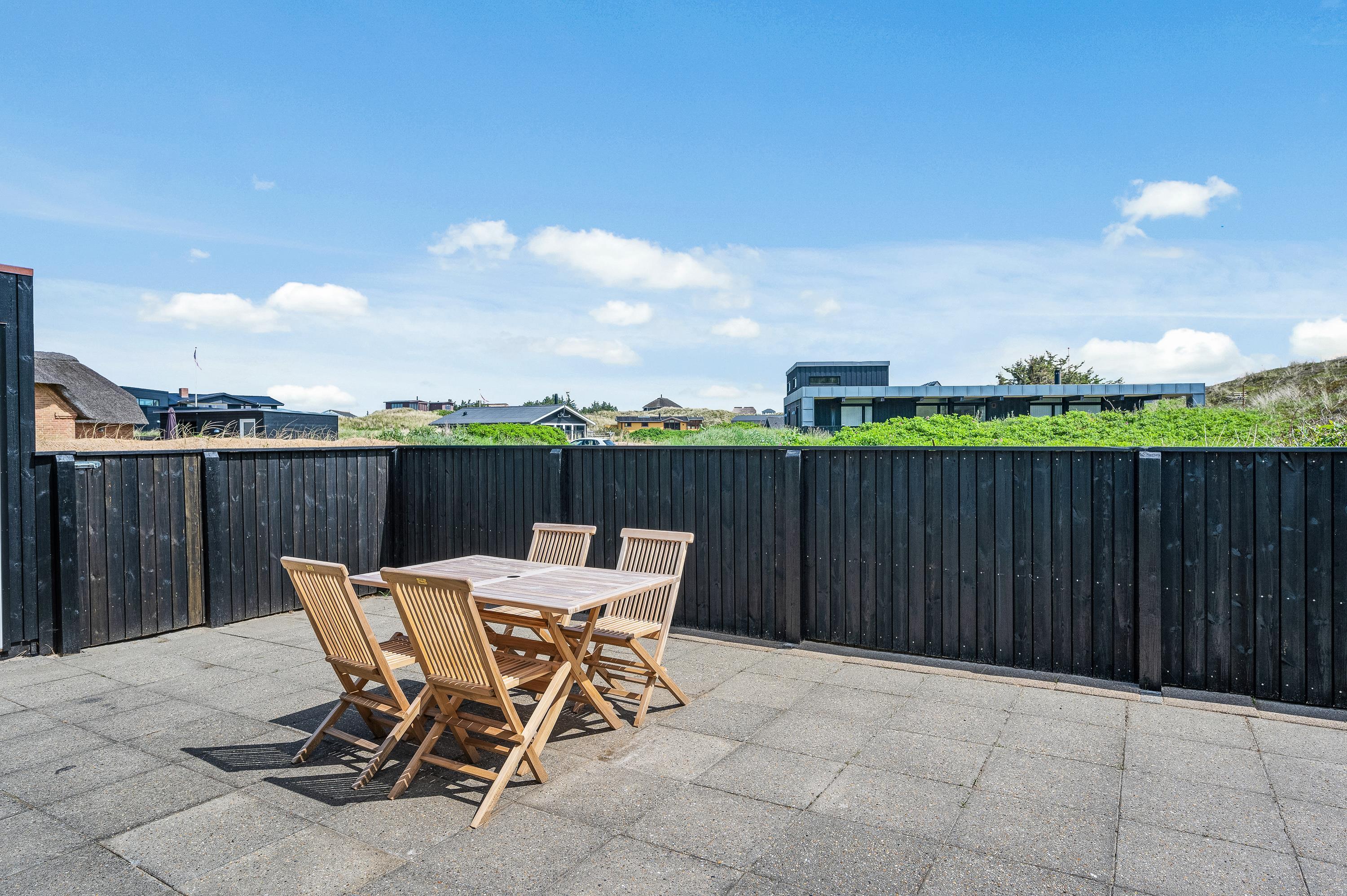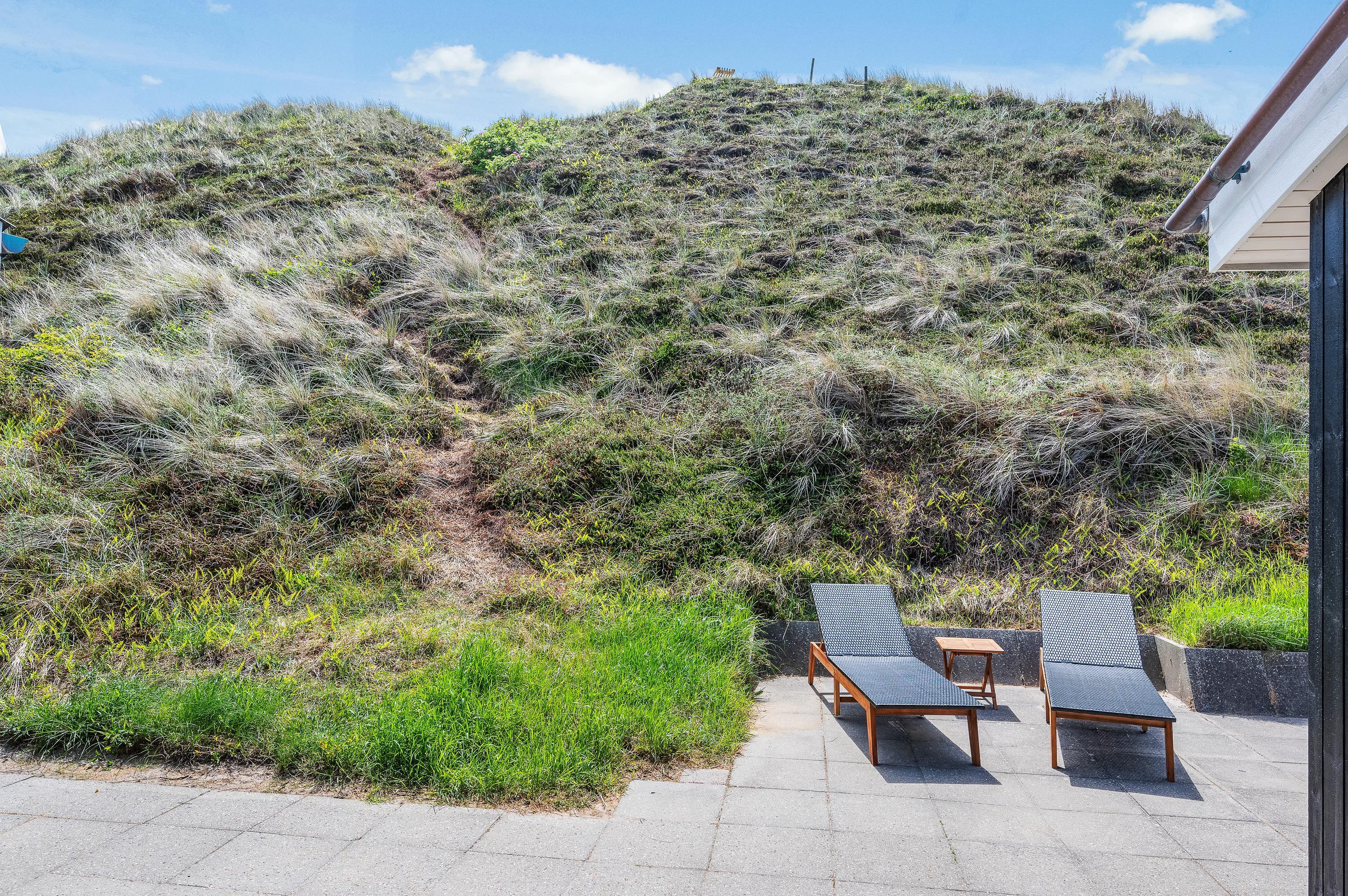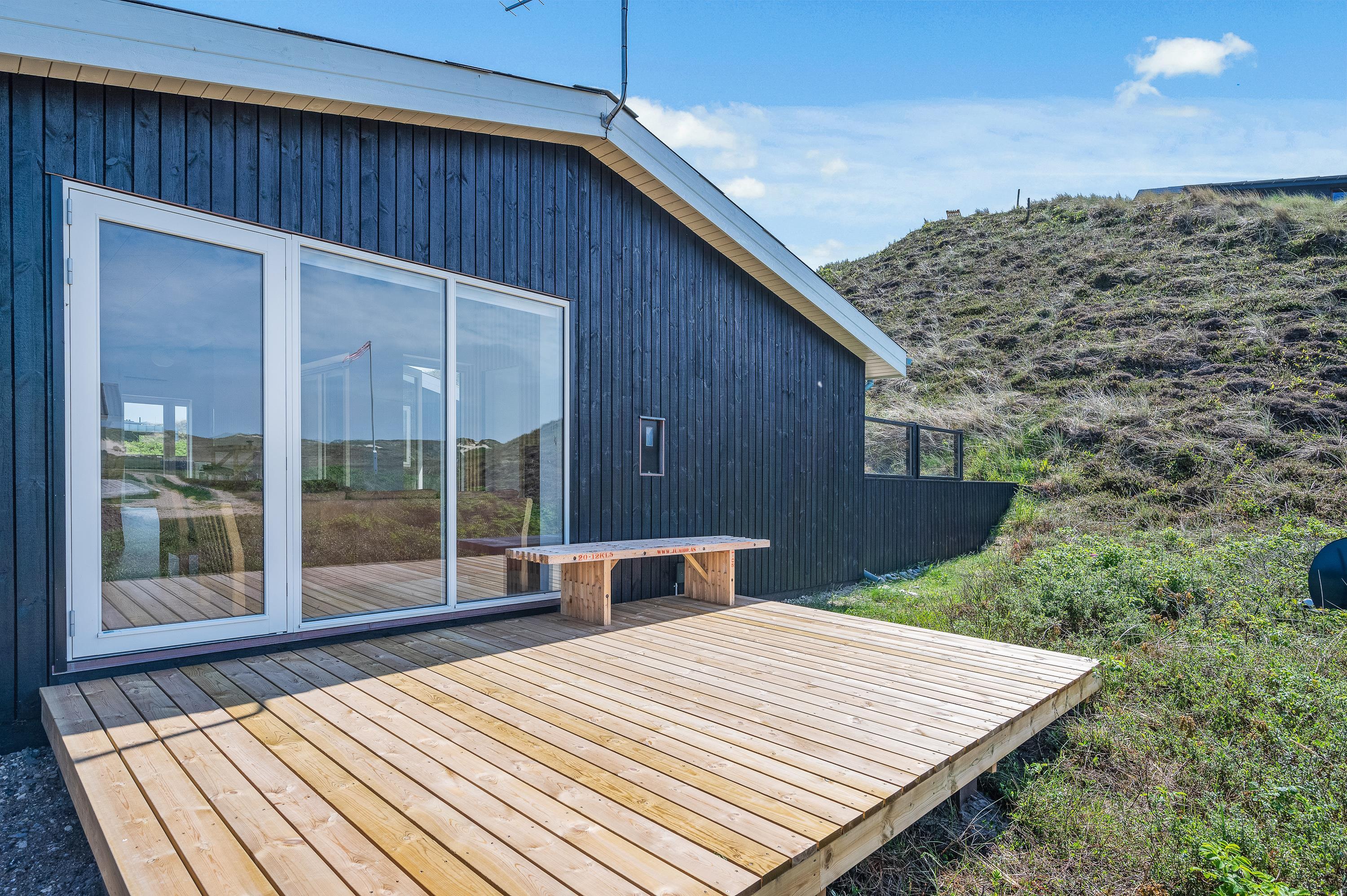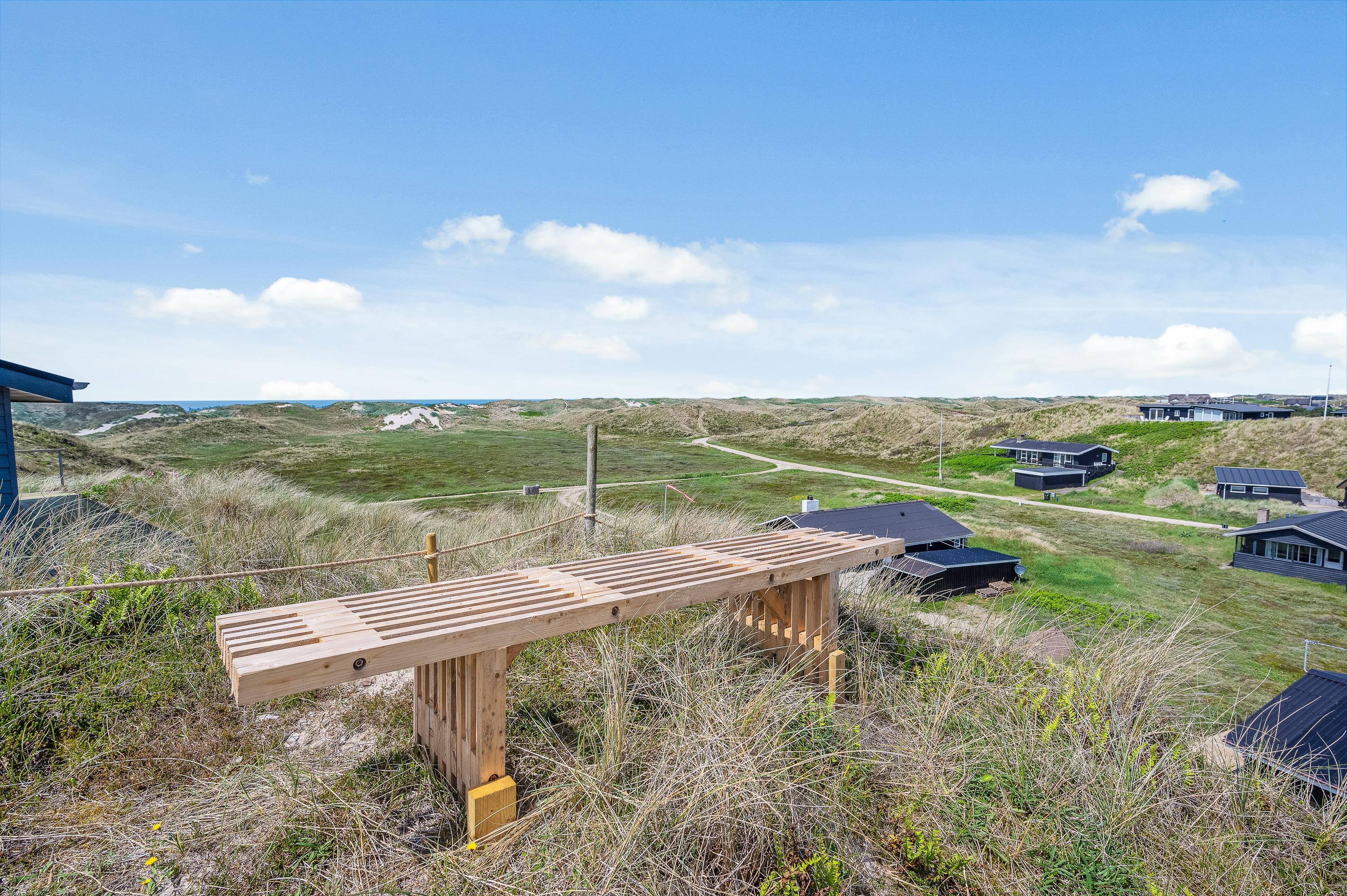 Den lille træterrasse mod vest er helt genial til de dejlige sommeraftener, hvor I kan nyde et kold glas nydelse og hinanden selskab. Sommerhuset råder også over en bænk på toppen af den klit, som giver huset læ. Her på denne klittop, kan I nyde en fantastisk solnedgang.