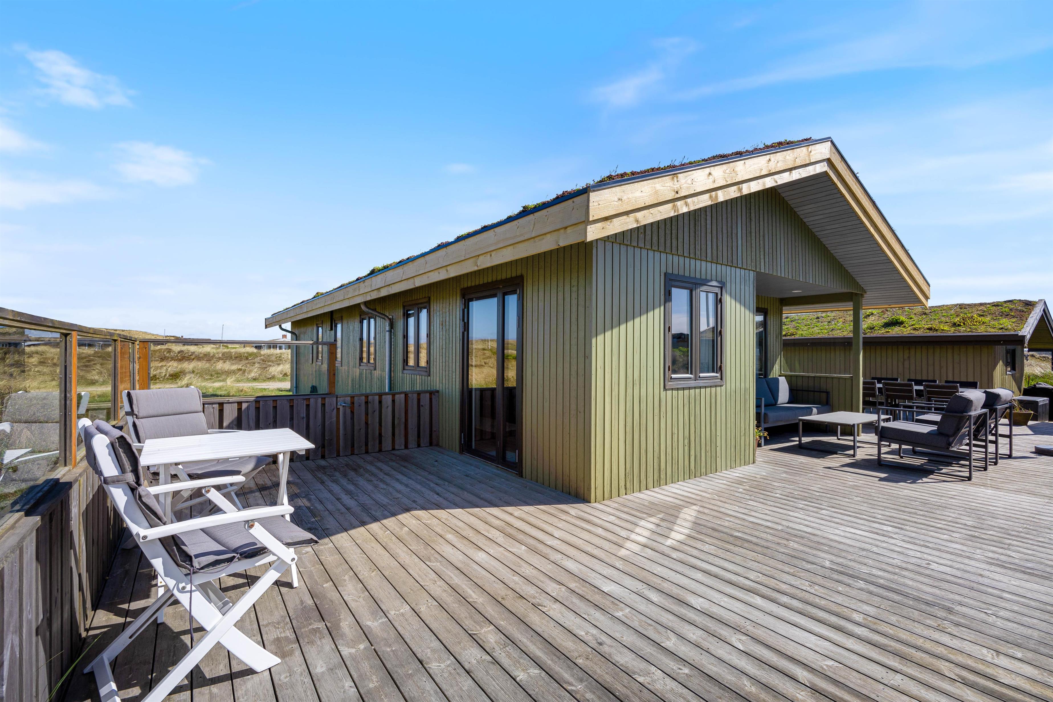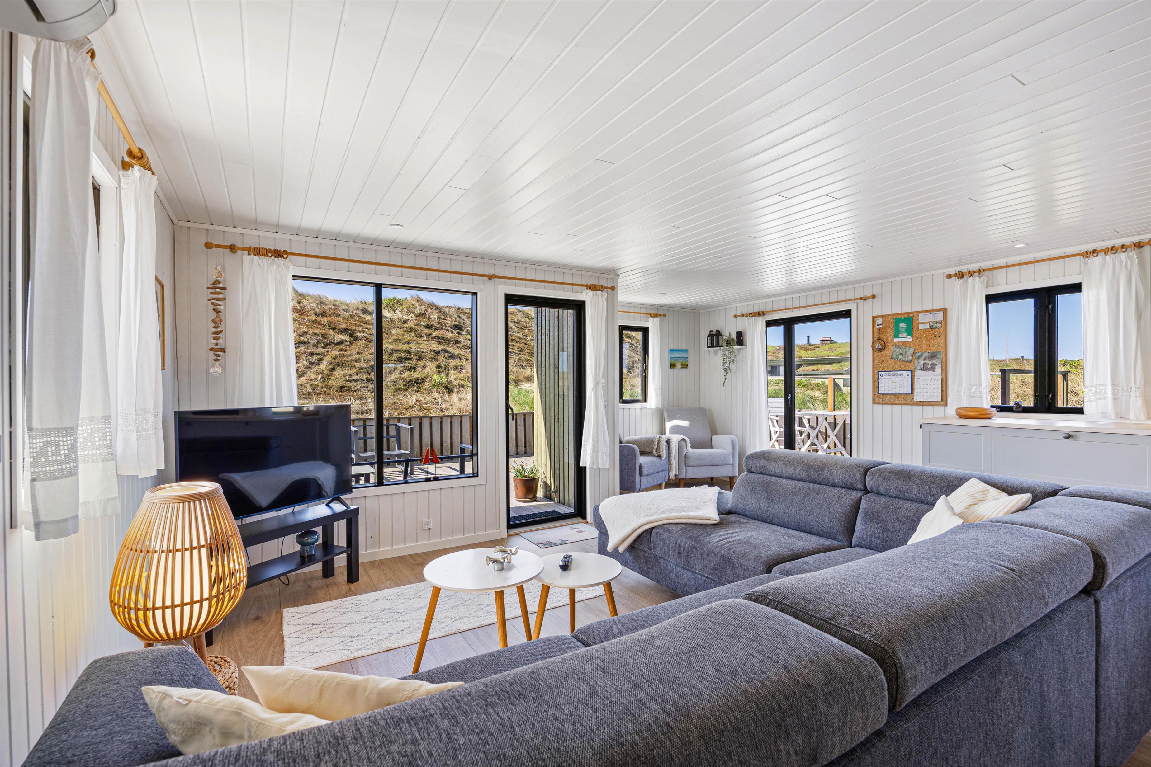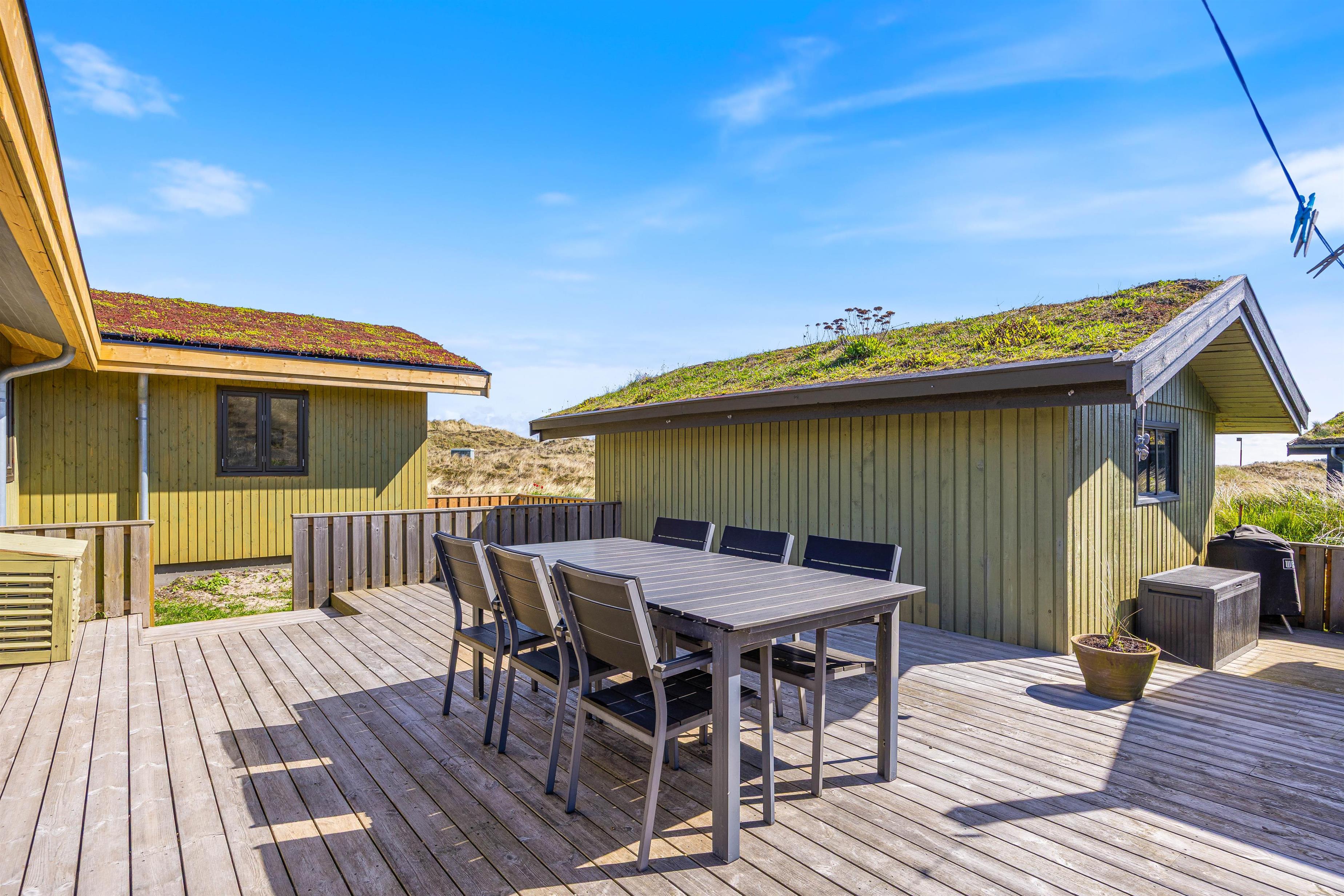 Om aftenen kan I tænde op i grillen, som også står til rådighed for jer på terrassen. Efter en lækker grillmiddag på terrassen med et godt glas vin til, kan I gå en tur til stranden, hvor I kan opleve en smuk og uforglemmelig solnedgang. Sommerhuset ligger kun 250 meter fra Vesterhavet, og I kan hurtigt nå til de smukke sandstrande og friske bølger. Med den korte afstand til stranden og Vesterhavet kan I også høre lyden af havets brusen, mens I er på terrassen.