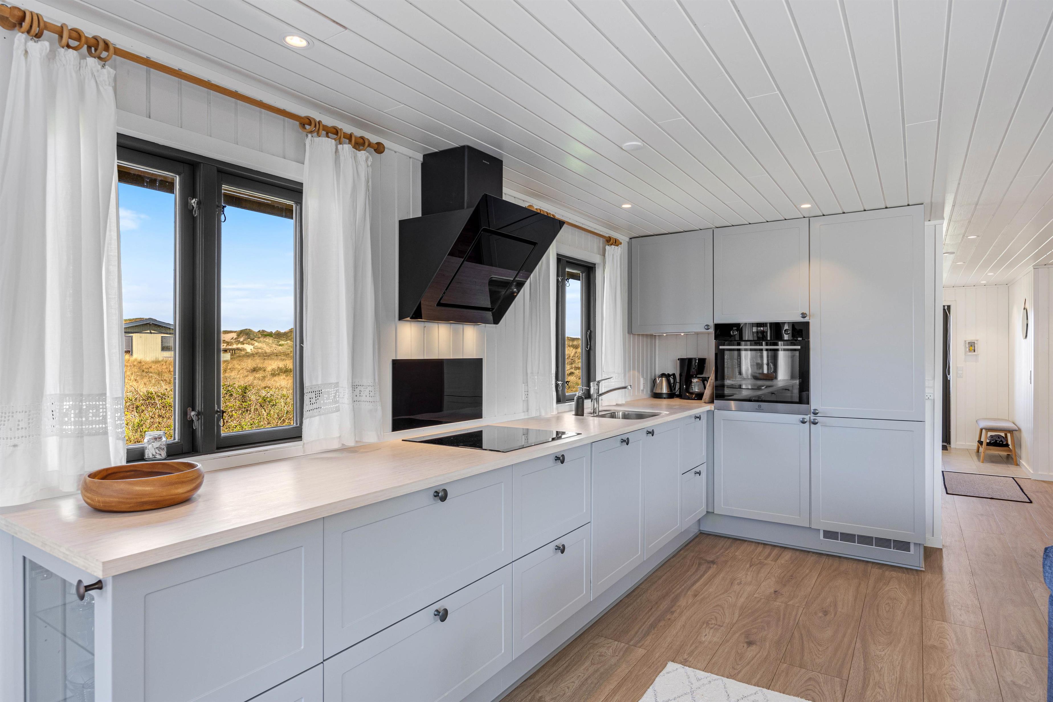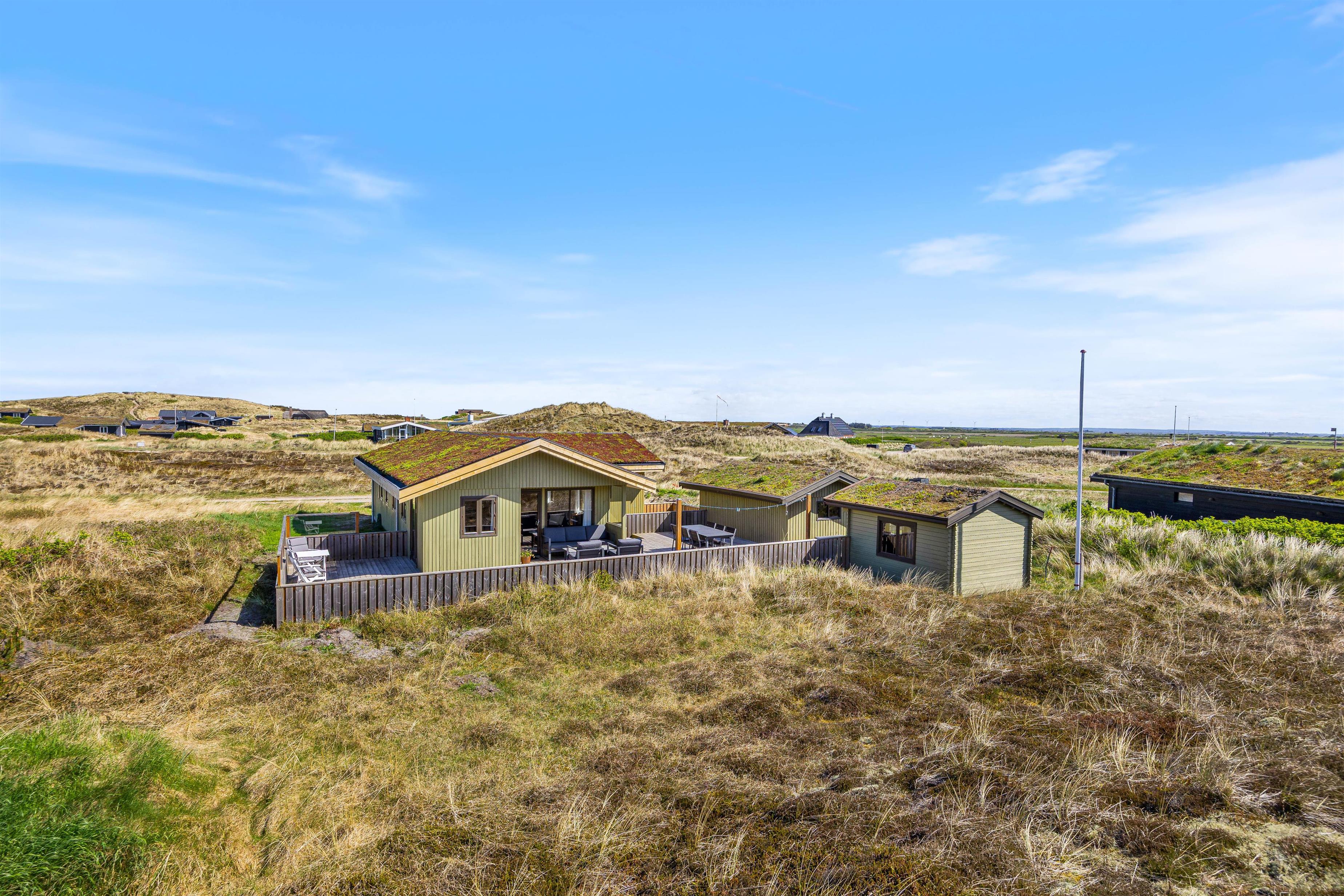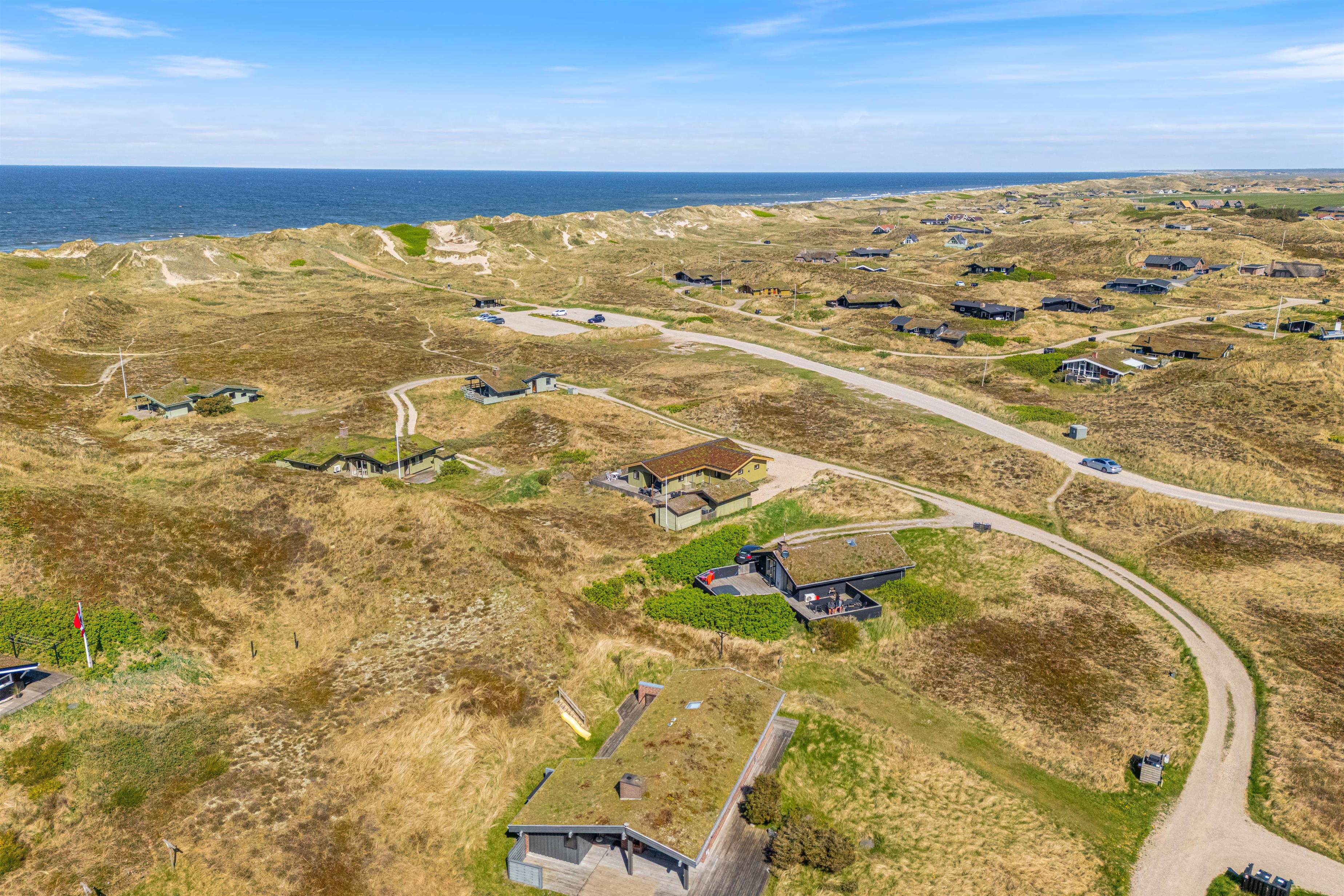 Om aftenen kan I tænde op i grillen, som også står til rådighed for jer på terrassen. Efter en lækker grillmiddag på terrassen med et godt glas vin til, kan I gå en tur til stranden, hvor I kan opleve en smuk og uforglemmelig solnedgang. Sommerhuset ligger kun 250 meter fra Vesterhavet, og I kan hurtigt nå til de smukke sandstrande og friske bølger. Med den korte afstand til stranden og Vesterhavet kan I også høre lyden af havets brusen, mens I er på terrassen.